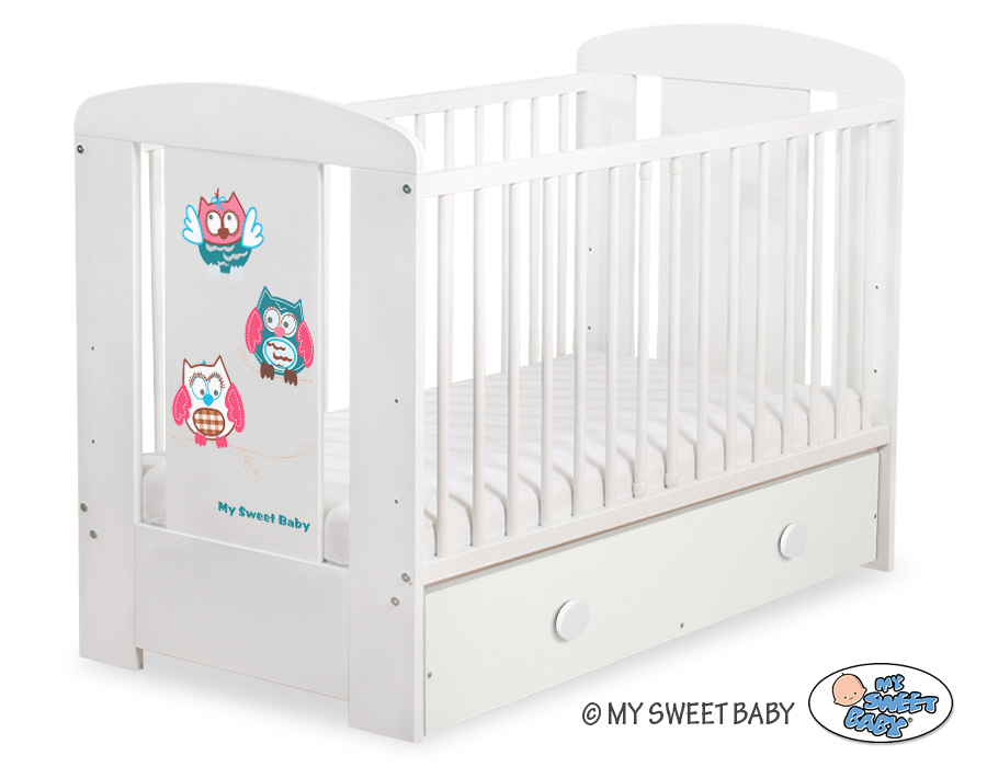 Babybett mit Schublade MAXI 120x60cm Eulen