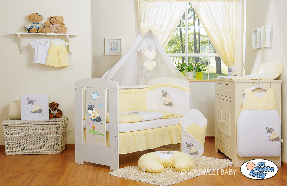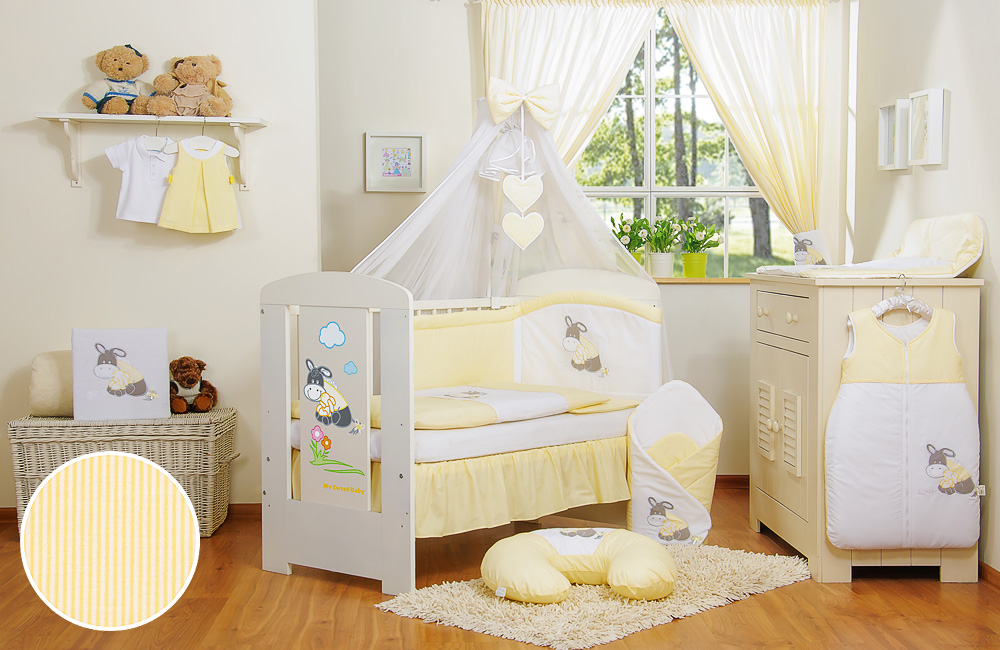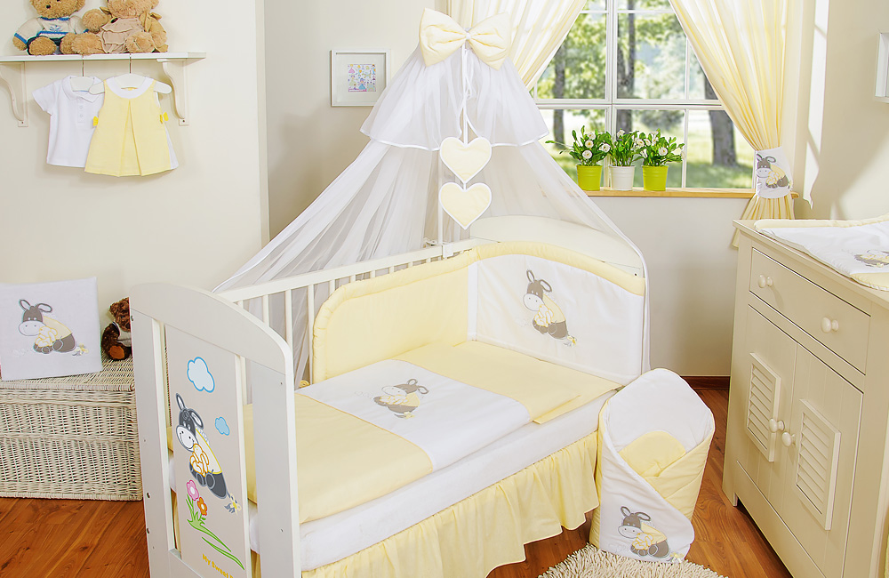 Stubenwagen » Bettwäsche für Babys » Bettwäsche für Babybett ESEL LUCA » Moskitonetz » Babybett Moskitonetz aus Chiffon - Esel Luca gelb