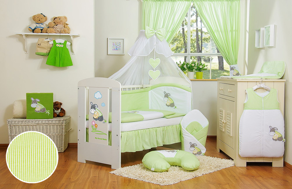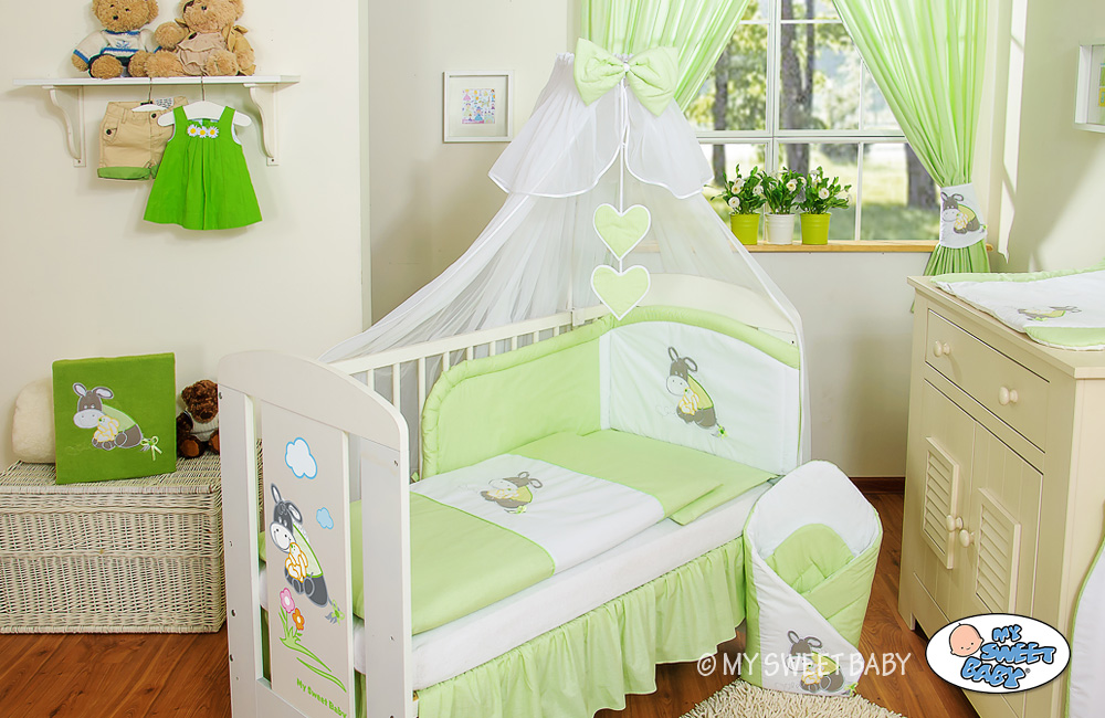 Babybett Moskitonetz aus Chiffon - Esel Luca grün