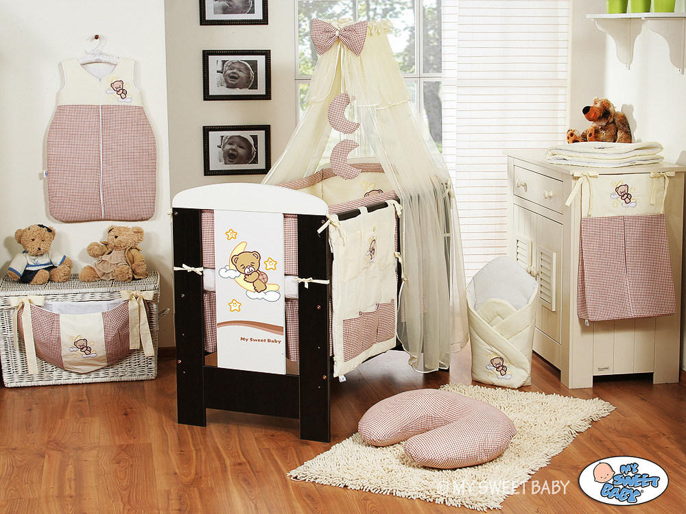 Stubenwagen » Bettwäsche für Babys » Bettwäsche für Babybett GUTE NACHT » Moskitonetz » Babybett Moskitonetz aus Chiffon - Gute Nacht braun
