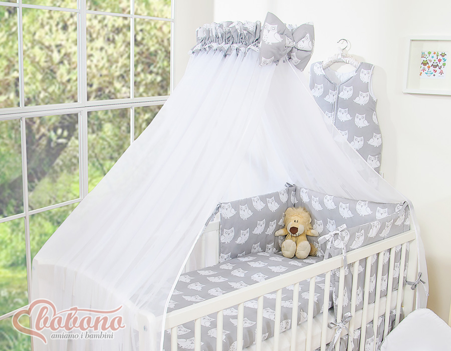 Stubenwagen » Bettwäsche für Babys » Bettwäsche für Babybett SIMPLE » Moskitonetz » Babybett Moskitonetz aus Chiffon - Simple Eulen grau
