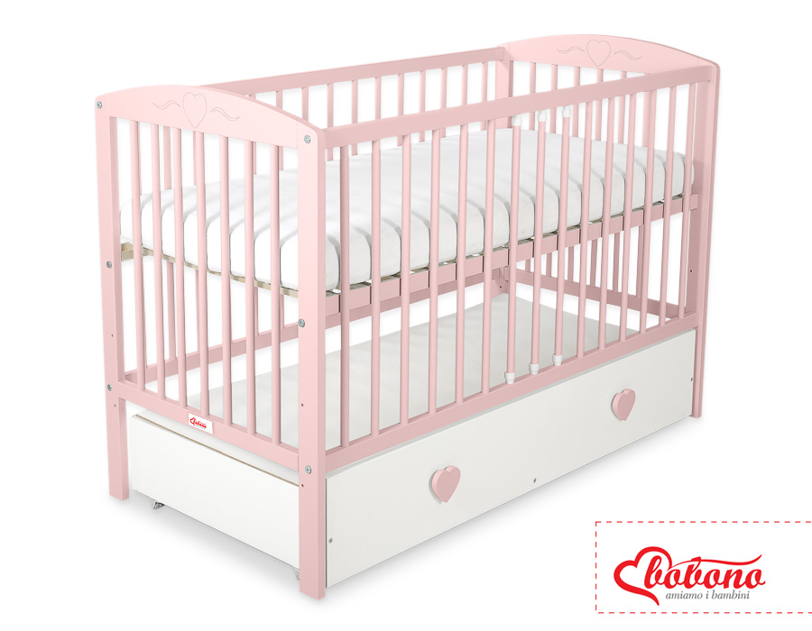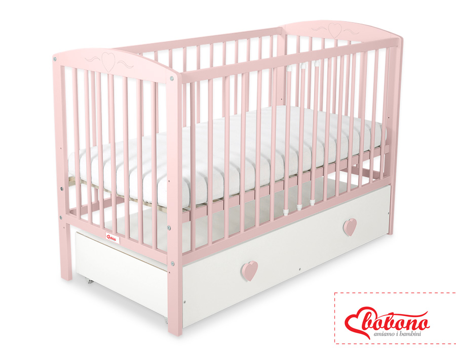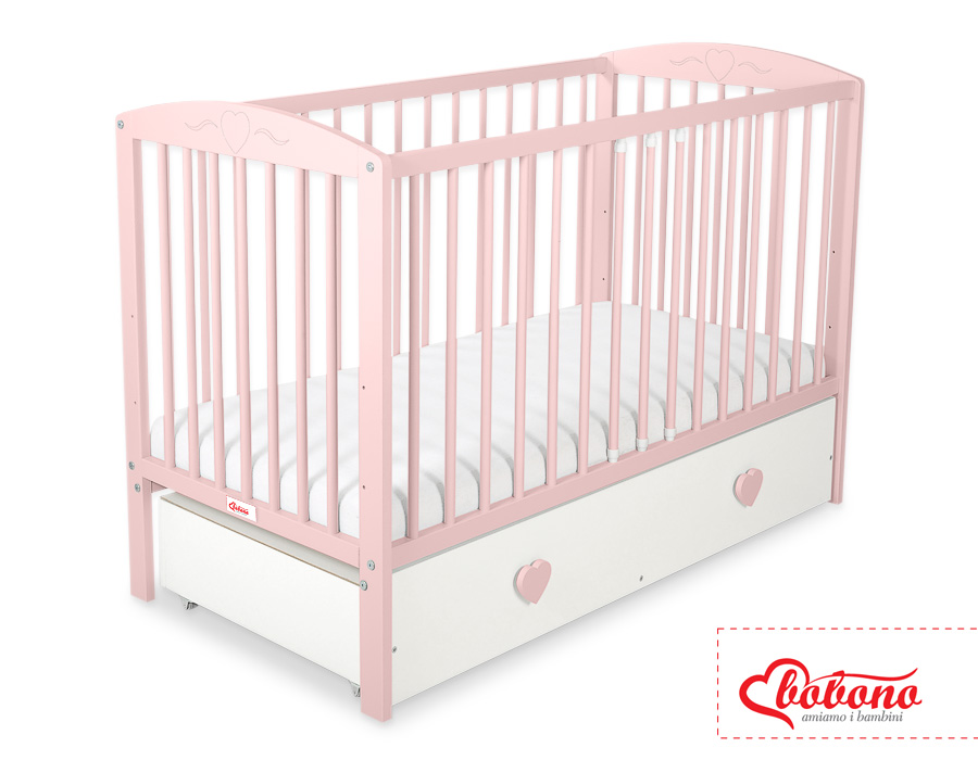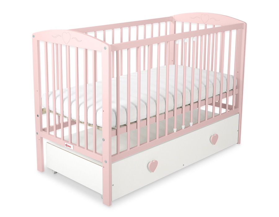 Babybett Rosa für Mädchen 120x60cm mit Herzen mit Schublade MAXI