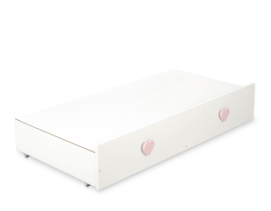 Holzbettchen 120x60cm mit Herzchen an den Fronten mit MAXI BETTSCHUBLADE