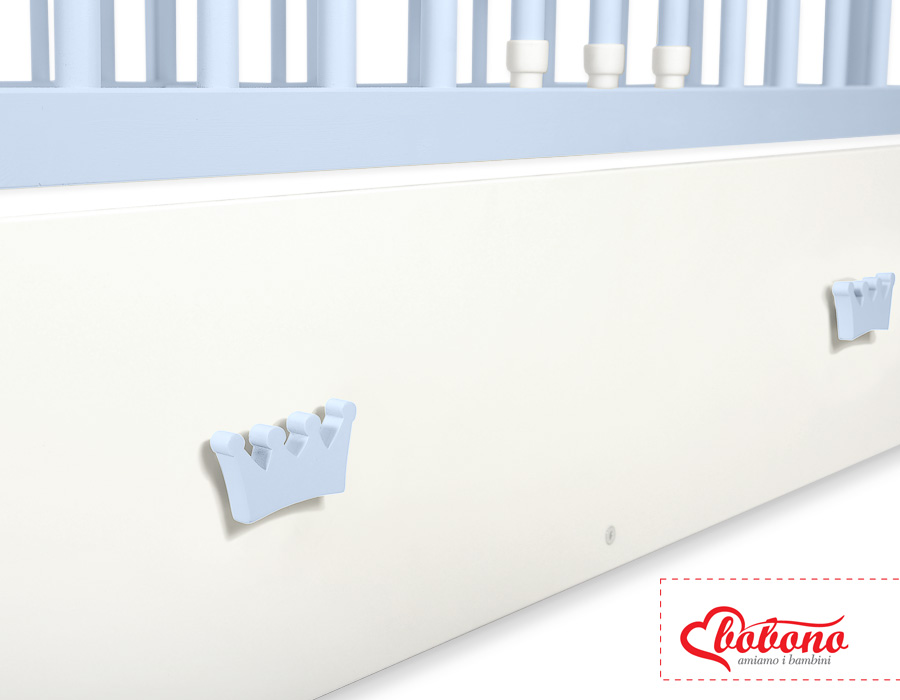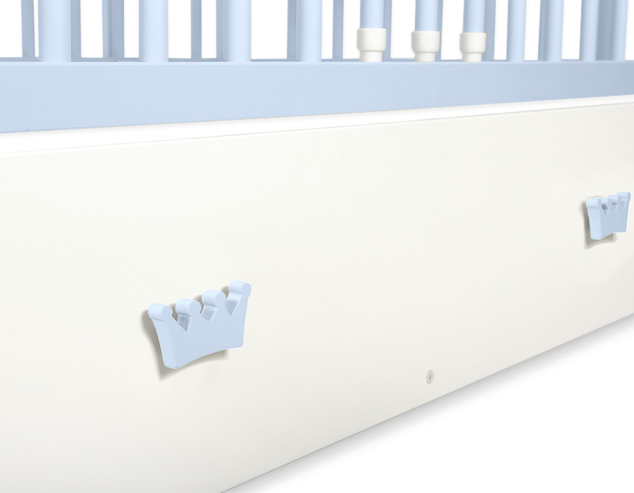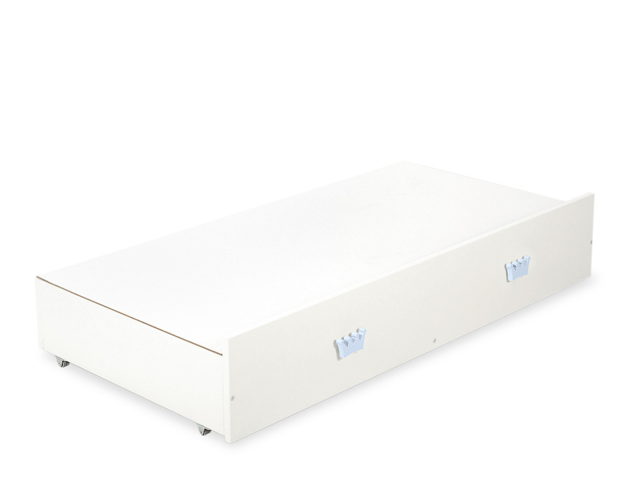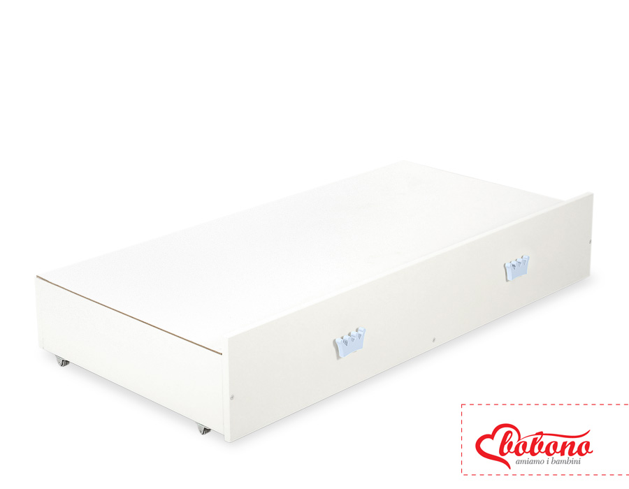 Eine geräumige, stabile und solide Schublade für Kinderbett 120x60cm mit dekorativen Griffen. Mehr Platz für Bettwäsche.
