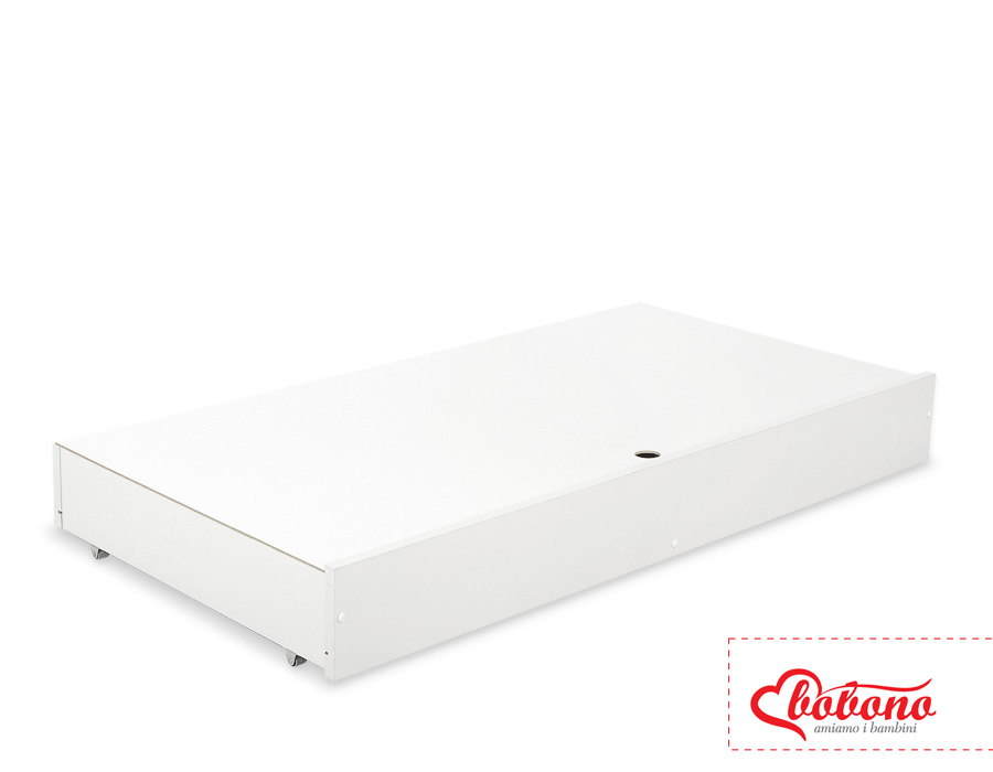 Eine geräumige, stabile und solide Schublade für Kinderbett 120x60cm mit dekorativen Griffen. Mehr Platz für Bettwäsche.