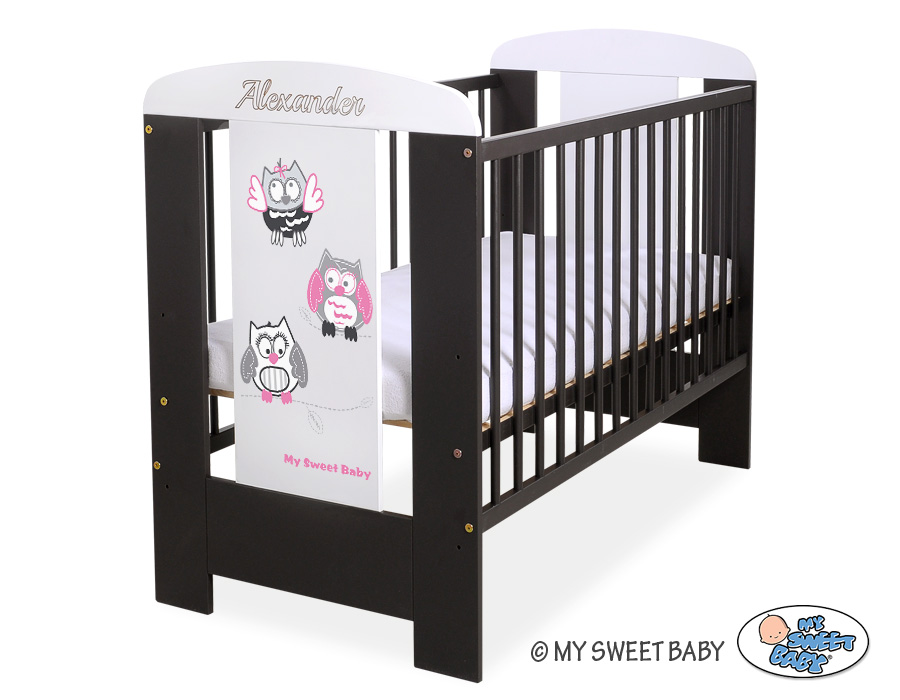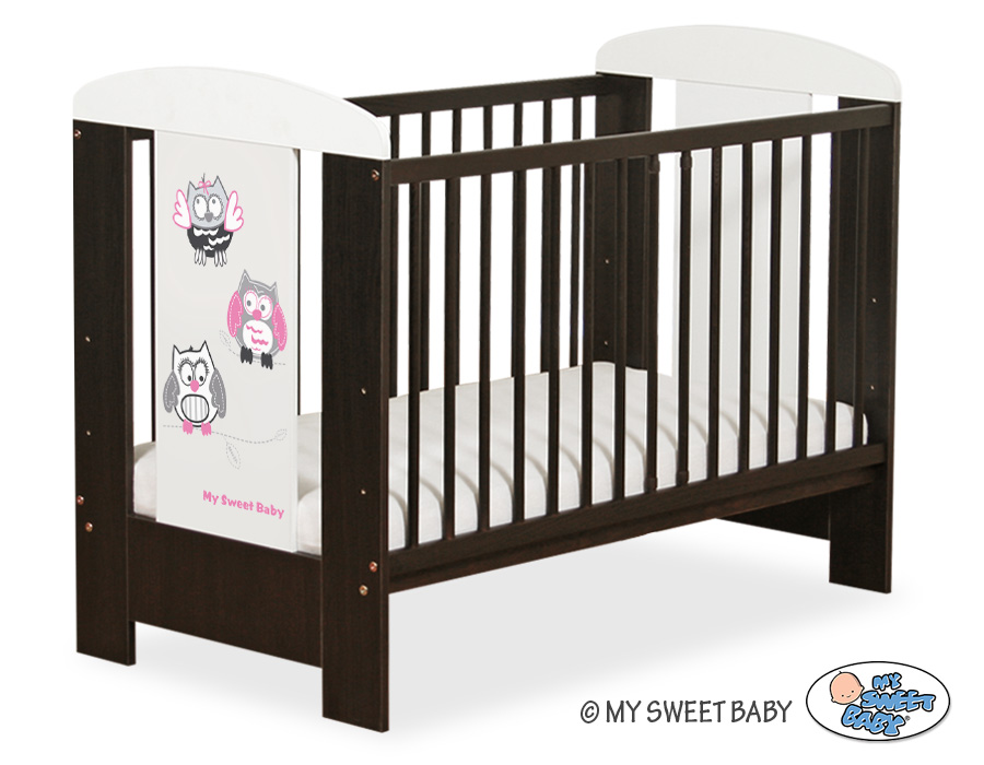 Stubenwagen » Babybett 60x120 cm » Babybett 60x120 Eulen » Babybett Weiß Braun 120x60cm Eulen 5017-04-429