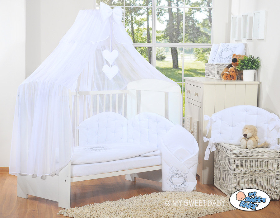 Babybettwäsche 90x120 100x135 Set 5-tlg mit Moskitonetz - Chic weiß
