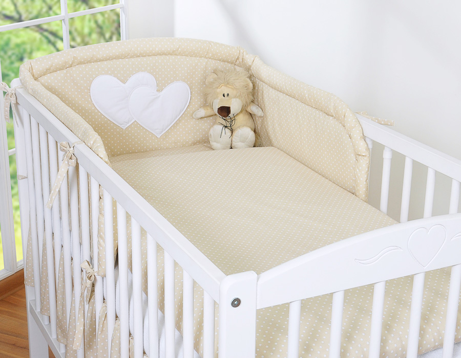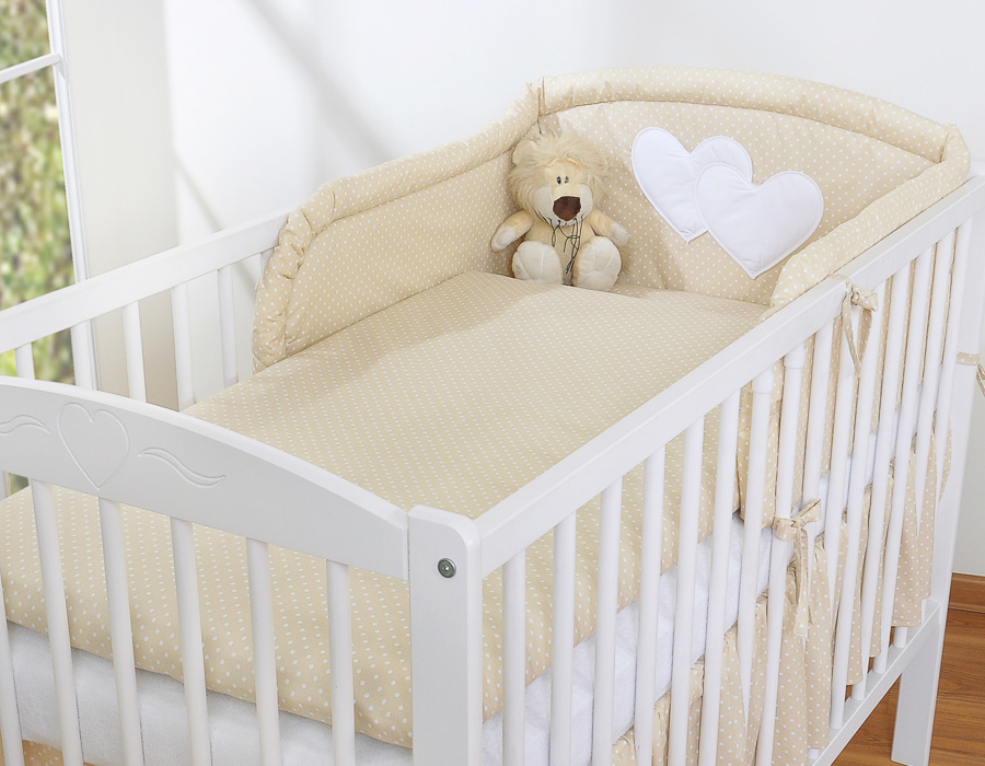 Babybettwäsche Set 2-tlg - Hängende Herzen Beige-Punktemuster In der liebevoll gestalteten Bettwäsche lässt es sich herrlich schlummern. Die hautverträgliche Qualität lädt zum Träumen ein.