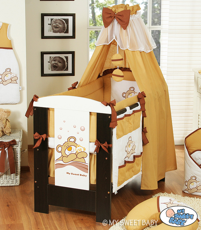 Stubenwagen » Bettwäsche für Babys » Bettwäsche für Babybett TEDDY BÄR BARNABA » Bettwäsche Sets für Babybett 120cm » Bedding Set 5-pcs mit Himmel (L) » Babybettwäsche Set 5-tlg mit Himmel (L60) - Teddy Bär Barnaba braun