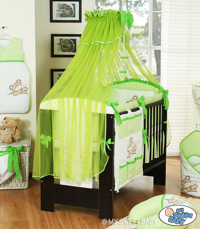 Stubenwagen » Bettwäsche für Babys » Bettwäsche für Babybett TEDDY BÄR BARNABA » Bettwäsche Sets für Babybett 140cm » Bettwäsche Set 7-tlg mit Moskitonetz (L) » Babybettwäsche Set 5-tlg mit Himmel (L70) - Teddy Bär Barnaba grün