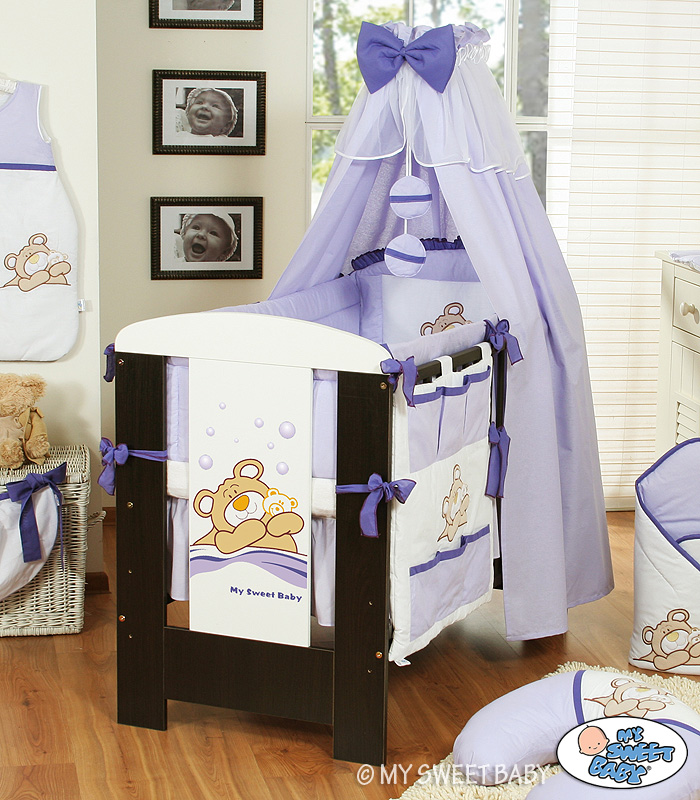 Stubenwagen » Bettwäsche für Babys » Bettwäsche für Babybett TEDDY BÄR BARNABA » Bettwäsche Sets für Babybett 140cm » Bettwäsche Set 5-tlg mit Moskitonetz (L) » Babybettwäsche Set 5-tlg mit Himmel (L70) - Teddy Bär Barnaba lila