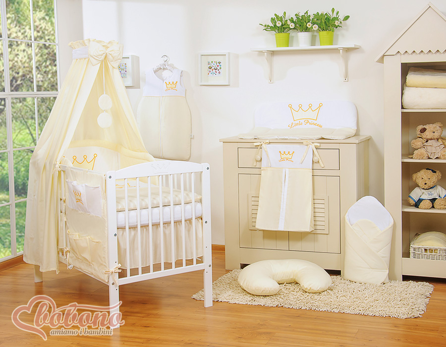 Stubenwagen » Bettwäsche für Babys » Bettwäsche für Babybett Kollektion LITTLE PRINCE / PRINCESS » Bettwäsche Sets für Babybett 140cm » Bettwäsche Set 5-tlg mit Himmel » Babybettwäsche Set 5-tlg mit Himmel - Little Prince/Princess creme