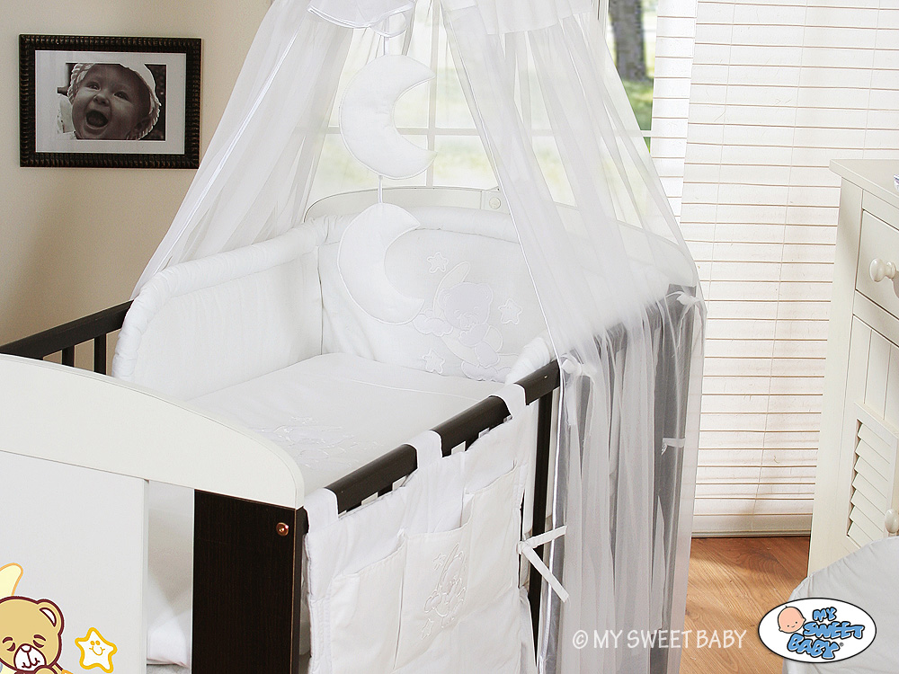 Stubenwagen » Bettwäsche für Babys » Bettwäsche für Babybett GUTE NACHT » Bettwäsche Sets für Babybett 120cm » Bettwäsche Set 5-tlg mi Himmel (S) » Babybettwäsche Set 5-tlg mit Himmel (S60) - Gute Nacht weiß