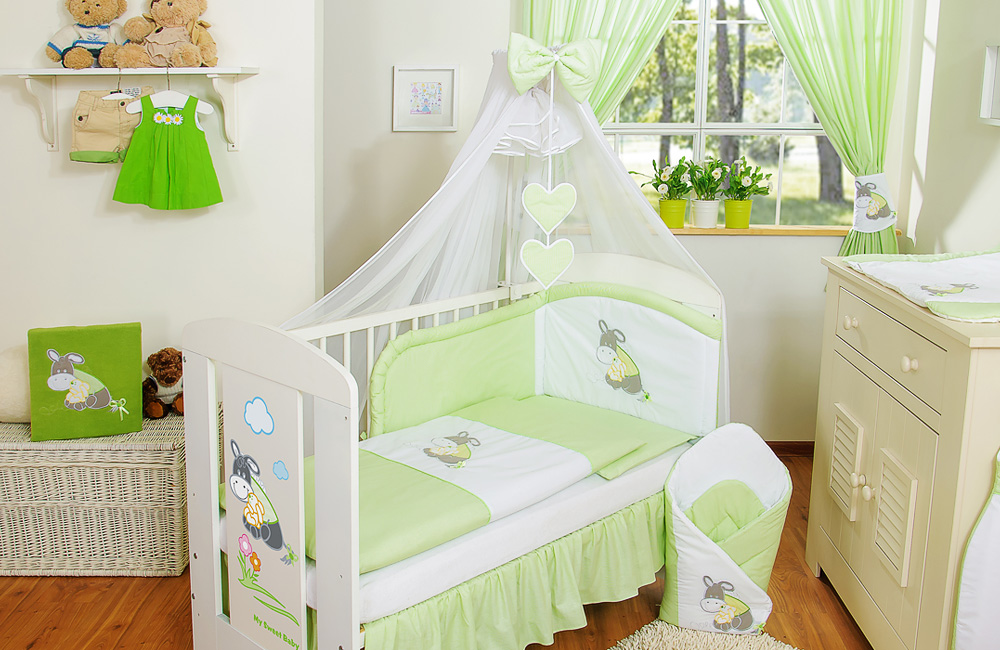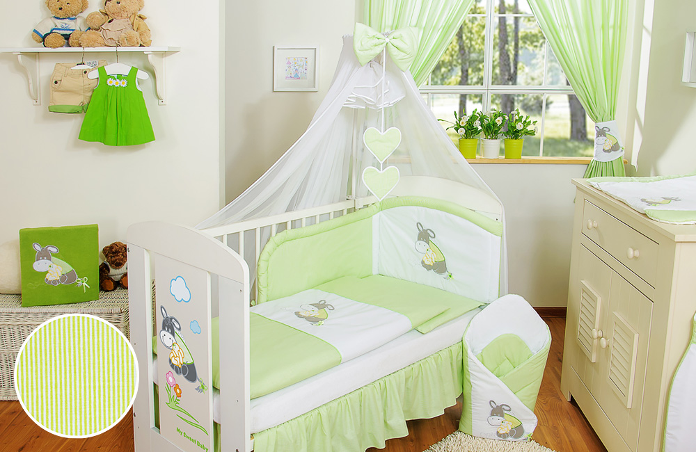 Stubenwagen » Bettwäsche für Babys » Bettwäsche für Babybett ESEL LUCA » Bettwäsche Sets für Babybett 120cm » Bedding Set 5-pcs mit Moskitonetz » Babybettwäsche Set 5-tlg mit Mositonetz - Esel Luca grün