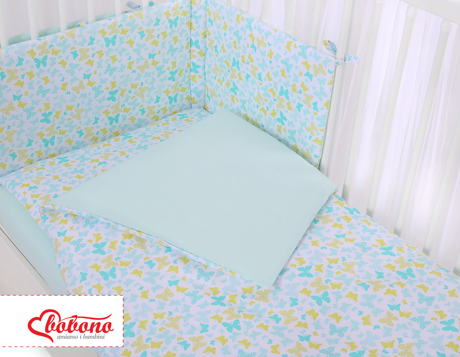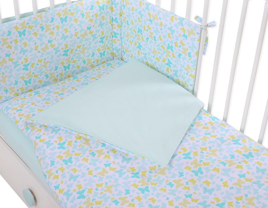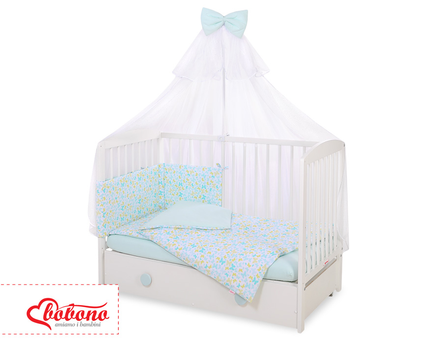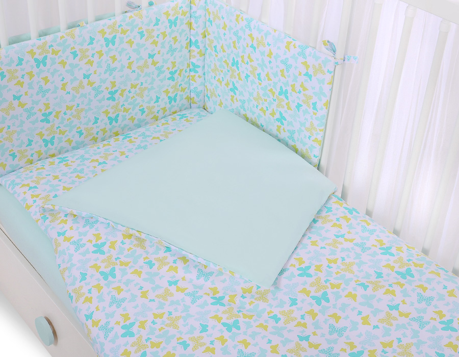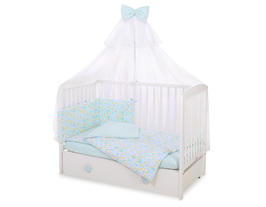 Stubenwagen » Bettwäsche für Babys » Bettwäsche für Babybett FUN & JOY » Bettwäsche Sets für Babybett 120cm » Bettwäsche Set 5-tlg mit Moskitonetz » Babybettwäsche Set 5-tlg mit Moskitonetz - blau Schmetterlinge