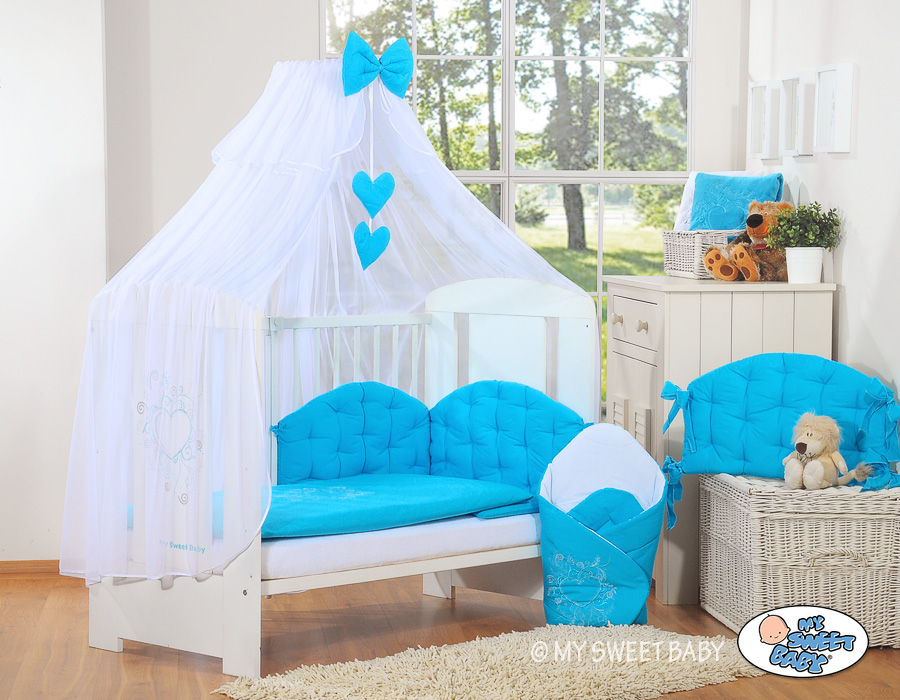 Stubenwagen » Bettwäsche für Babys » Bettwäsche für Babybett CHIC » Bettwäsche Sets für Babybett 120cm » Bettwäsche Set 5-tlg mit Moskitonetz » Babybettwäsche Set 5-tlg mit Moskitonetz - Chic türkis
