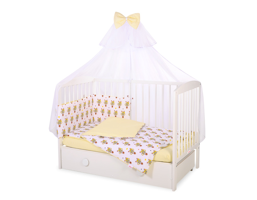 Stubenwagen » Bettwäsche für Babys » Bettwäsche für Babybett FUN & JOY » Bettwäsche Sets für Babybett 120cm » Bettwäsche Set 5-tlg mit Moskitonetz » Babybettwäsche Set 5-tlg mit Moskitonetz - gelbe Zebras