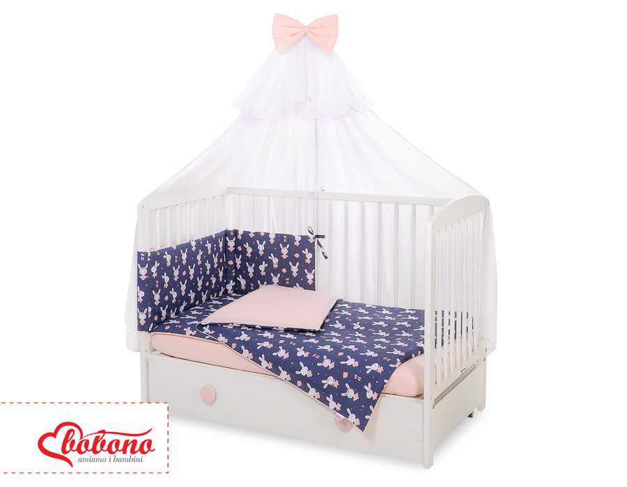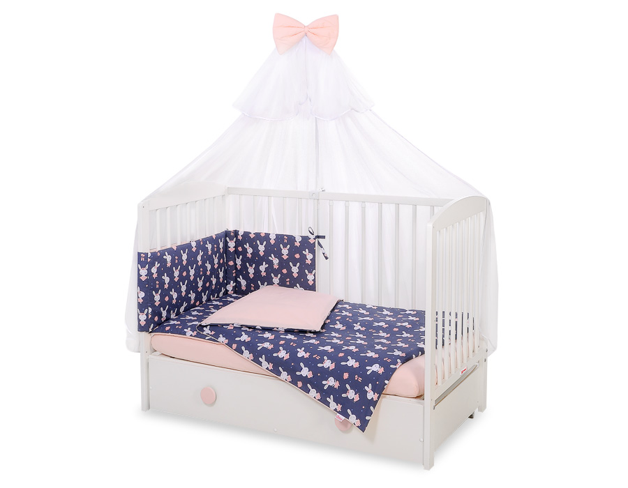 Babybettwäsche Set 5-tlg mit Moskitonetz - Hasen dunkelblau