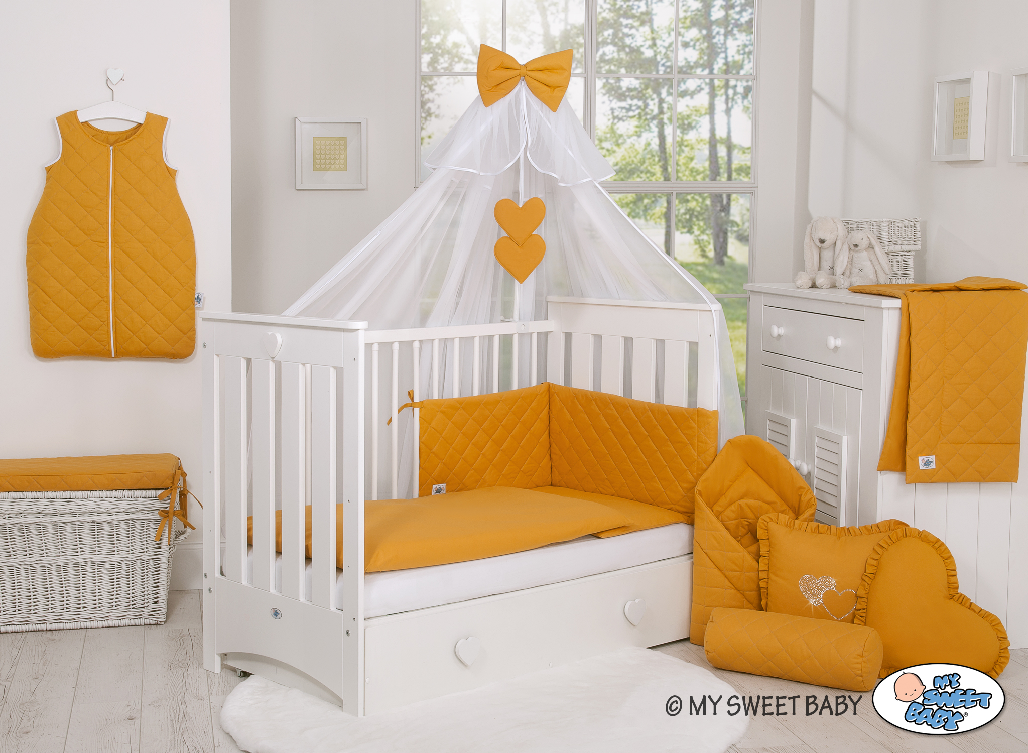 Stubenwagen » Bettwäsche für Babys » Babybett Bettwäsche PIK » Bettwäsche Set 5-tlg mit Moskitonetz » Babybettwäsche Set 5-tlg mit Moskitonetz- honiggelb