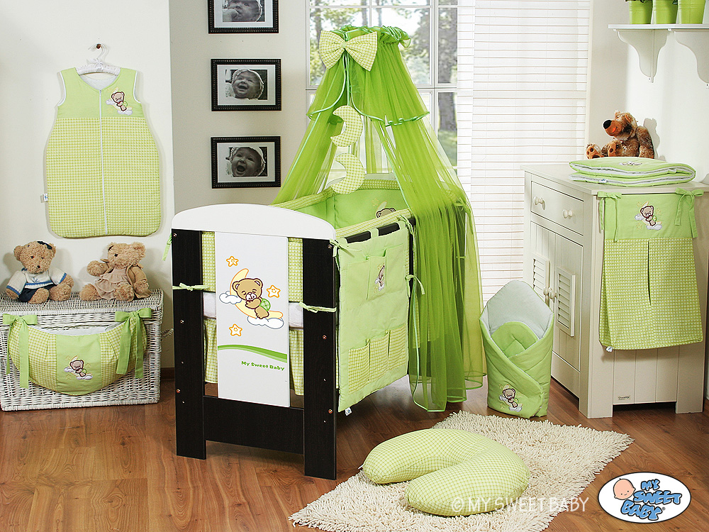 Stubenwagen » Bettwäsche für Babys » Bettwäsche für Babybett GUTE NACHT » Bettwäsche Sets für Babybett 120cm » Bettwäsche Set 5-tlg mit Moskitonetz (L) » Babybettwäsche Set 5-tlg mit Moskitonetz (L60) - Gute Nacht grün