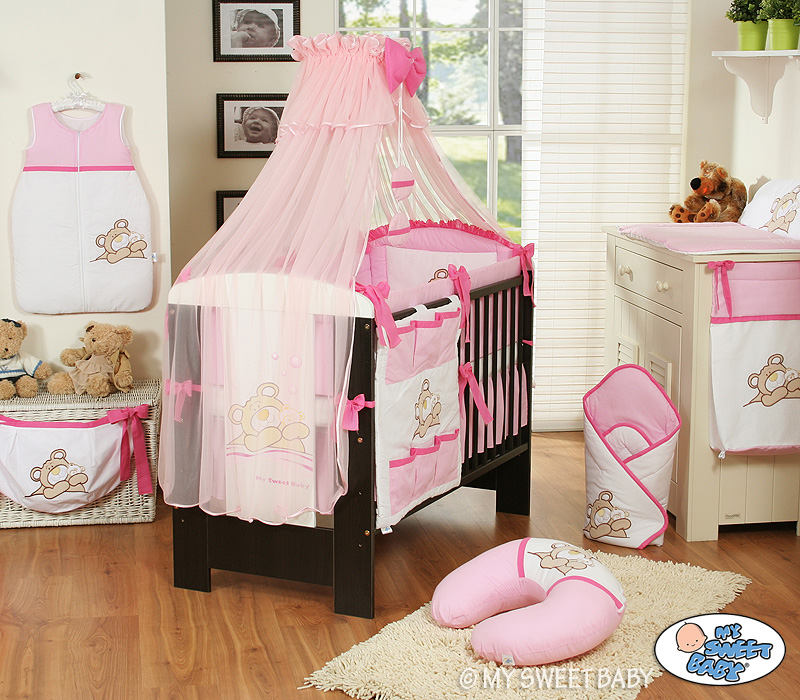 Stubenwagen » Bettwäsche für Babys » Bettwäsche für Babybett TEDDY BÄR BARNABA » Bettwäsche Sets für Babybett 120cm » Bettwäsche Set 5-tlg mit Moskitonetz (L) » Babybettwäsche Set 5-tlg mit Moskitonetz (L60) - Teddy Bär Barnaba rosa