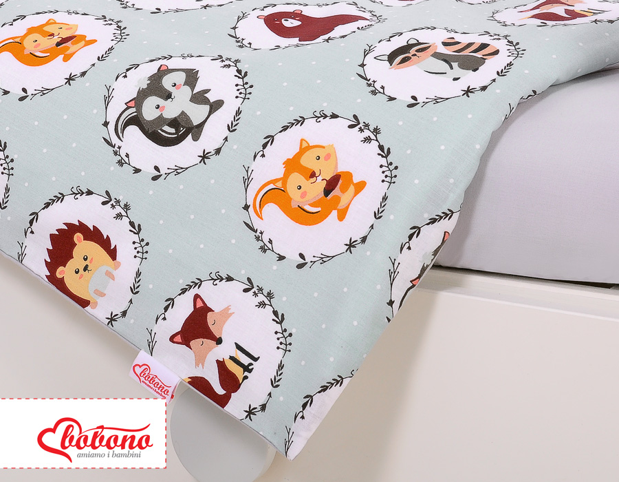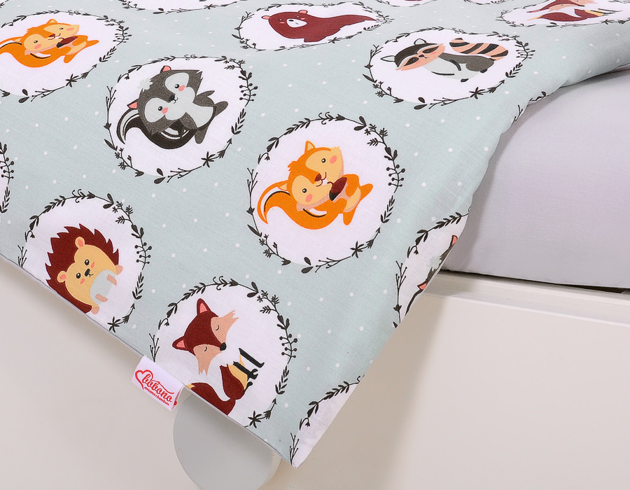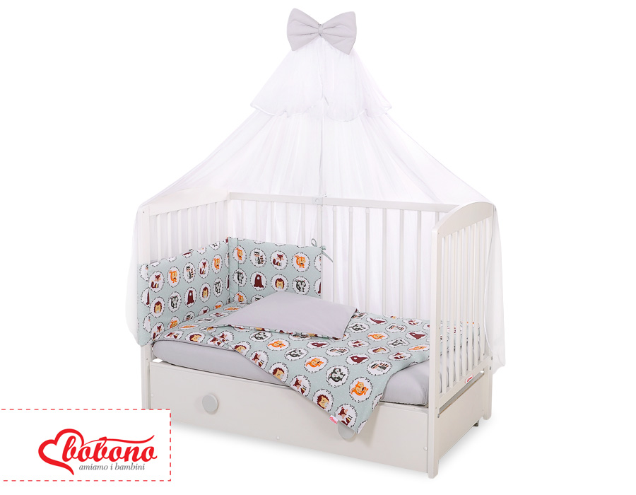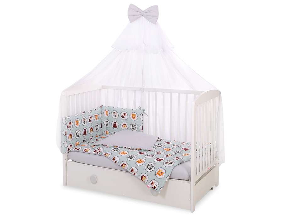 Stubenwagen » Bettwäsche für Babys » Bettwäsche für Babybett FUN & JOY » Bettwäsche Sets für Babybett 120cm » Bettwäsche Set 5-tlg mit Moskitonetz » Babybettwäsche Set 5-tlg mit Moskitonetz - Minze Tierchen