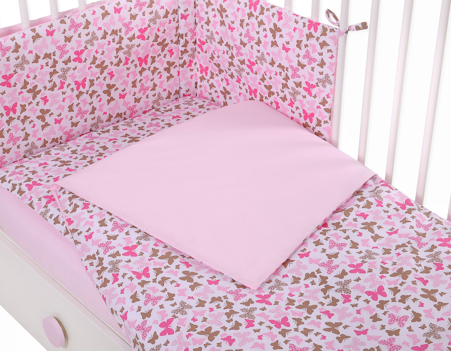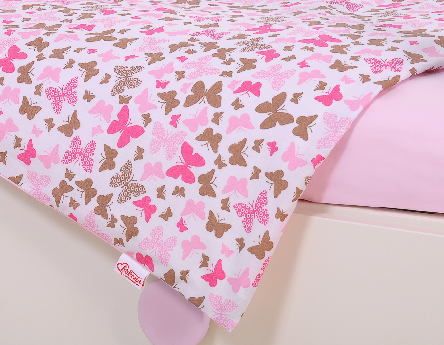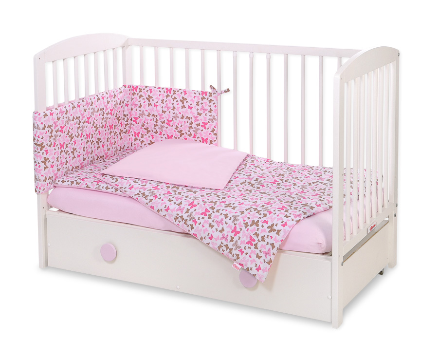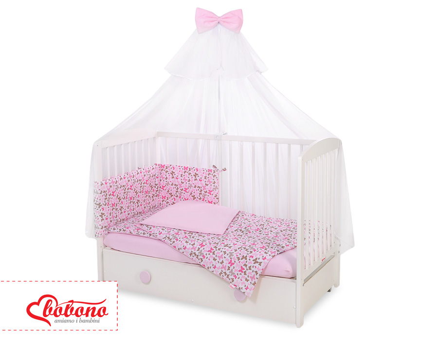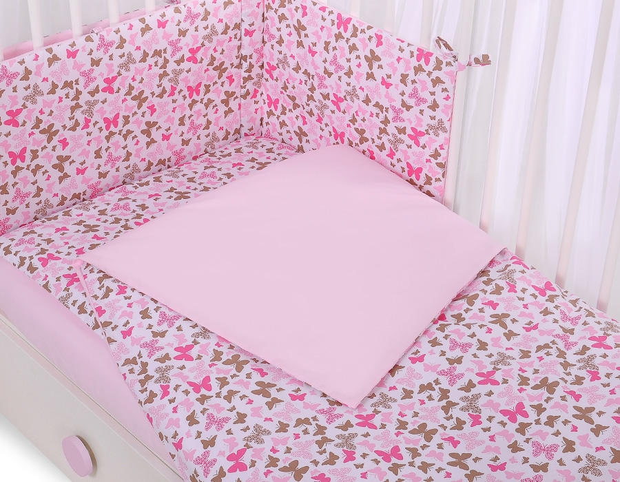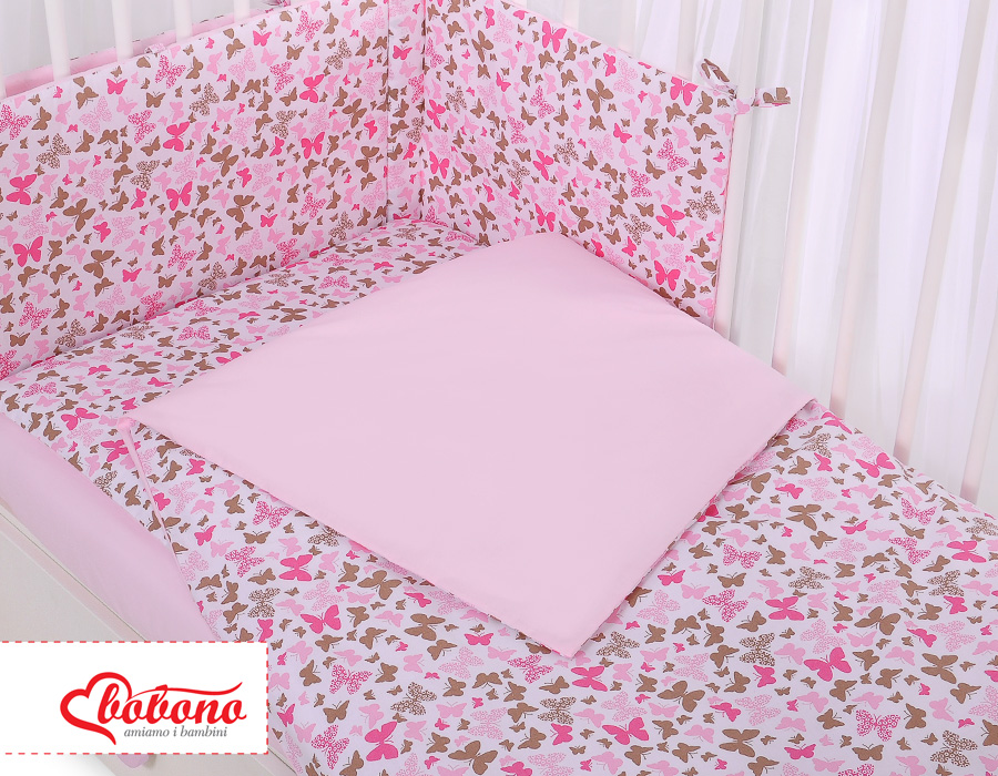 Stubenwagen » Bettwäsche für Babys » Bettwäsche für Babybett FUN & JOY » Bettwäsche Sets für Babybett 120cm » Bettwäsche Set 5-tlg mit Moskitonetz » Babybettwäsche Set 5-tlg mit Moskitonetz - rosa Schmetterlinge