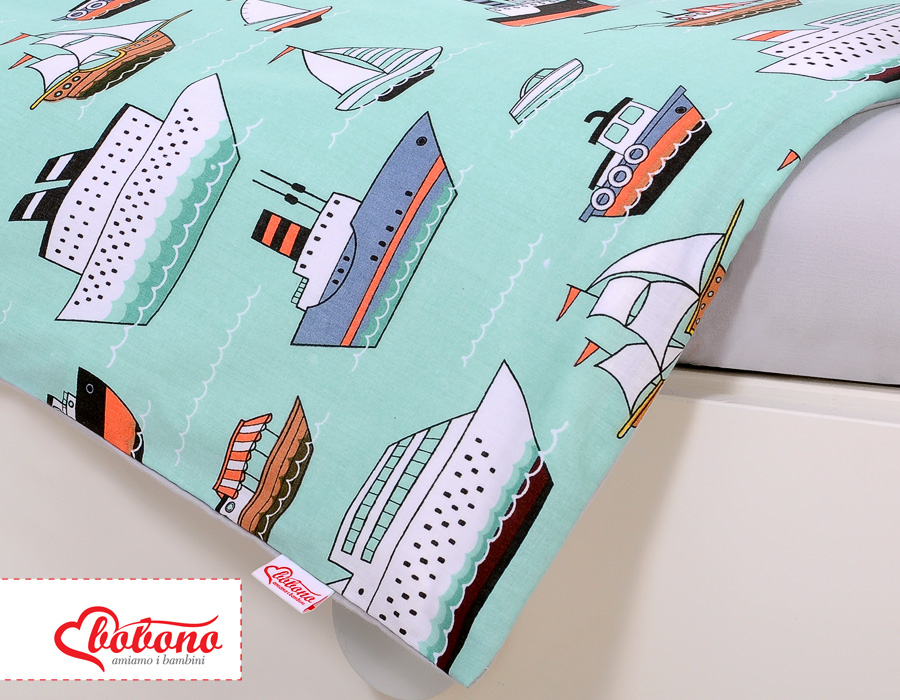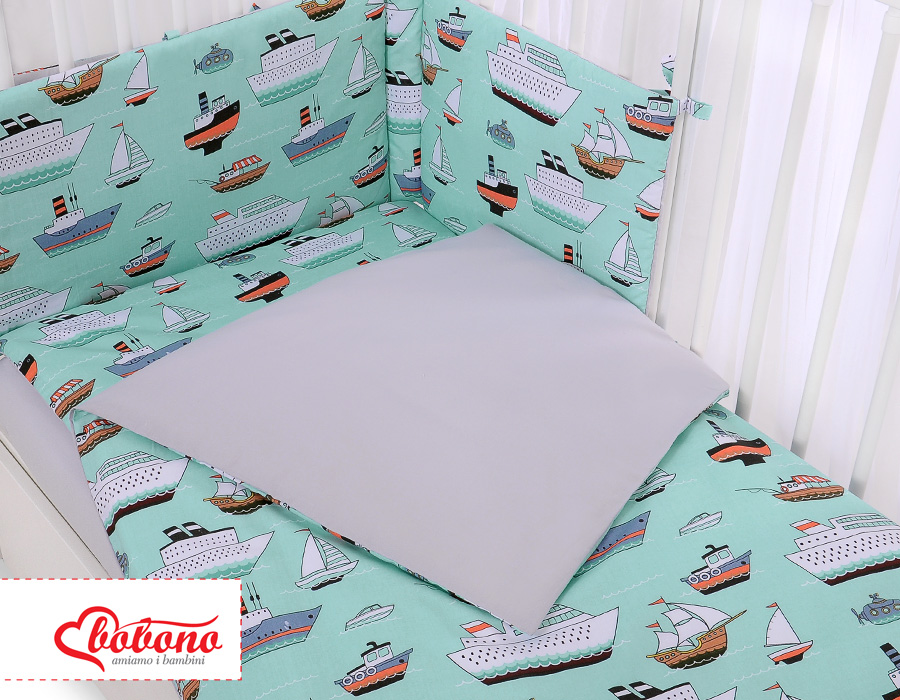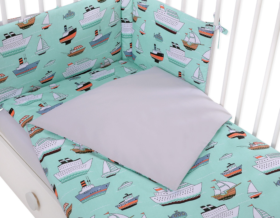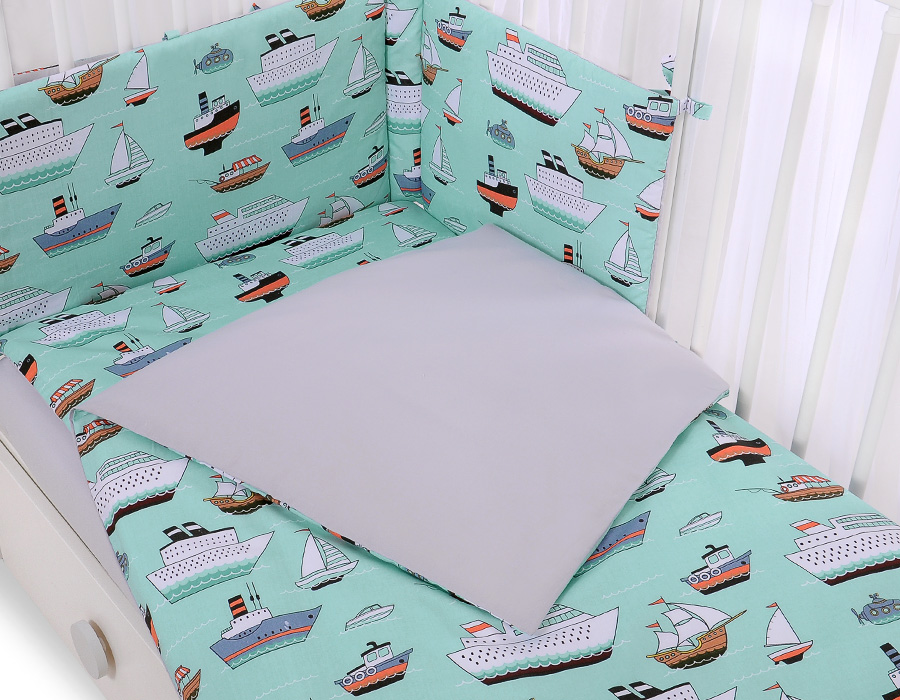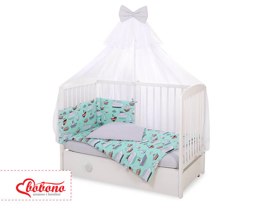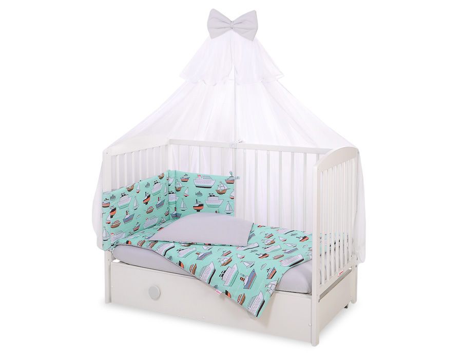 Stubenwagen » Bettwäsche für Babys » Bettwäsche für Babybett FUN & JOY » Bettwäsche Sets für Babybett 120cm » Bettwäsche Set 5-tlg mit Moskitonetz » Babybettwäsche Set 5-tlg mit Moskitonetz - Schiffe minze
