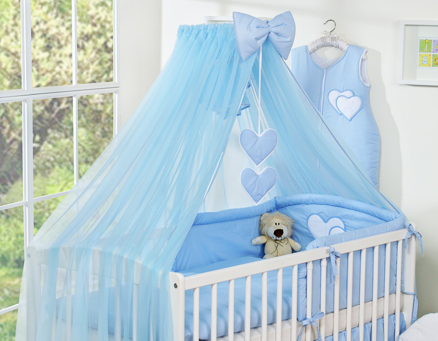 Blau Herzen Hängende Moskitonetz Babybettwäsche-Set