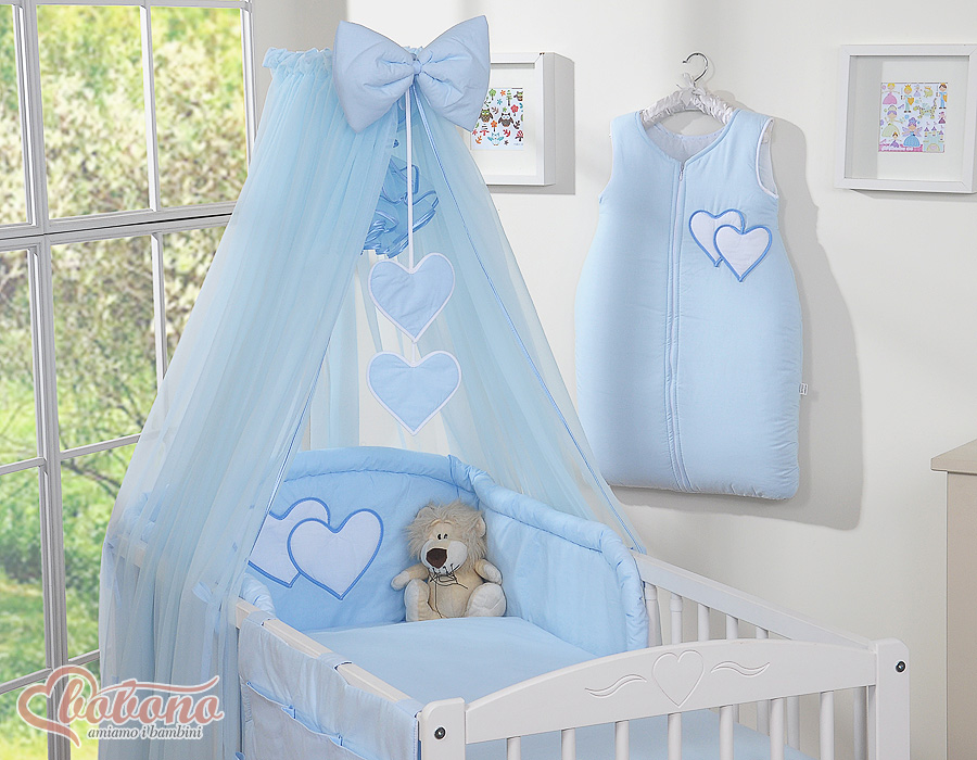 Babybettwäsche-Set 5-tlg mit Moskitonetz - Hängende Herzen blau