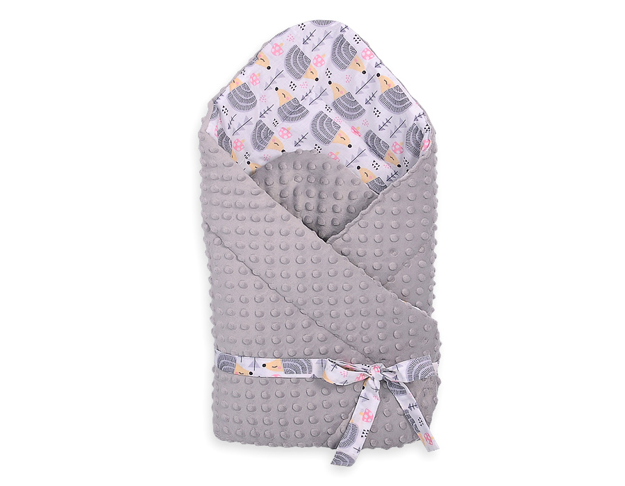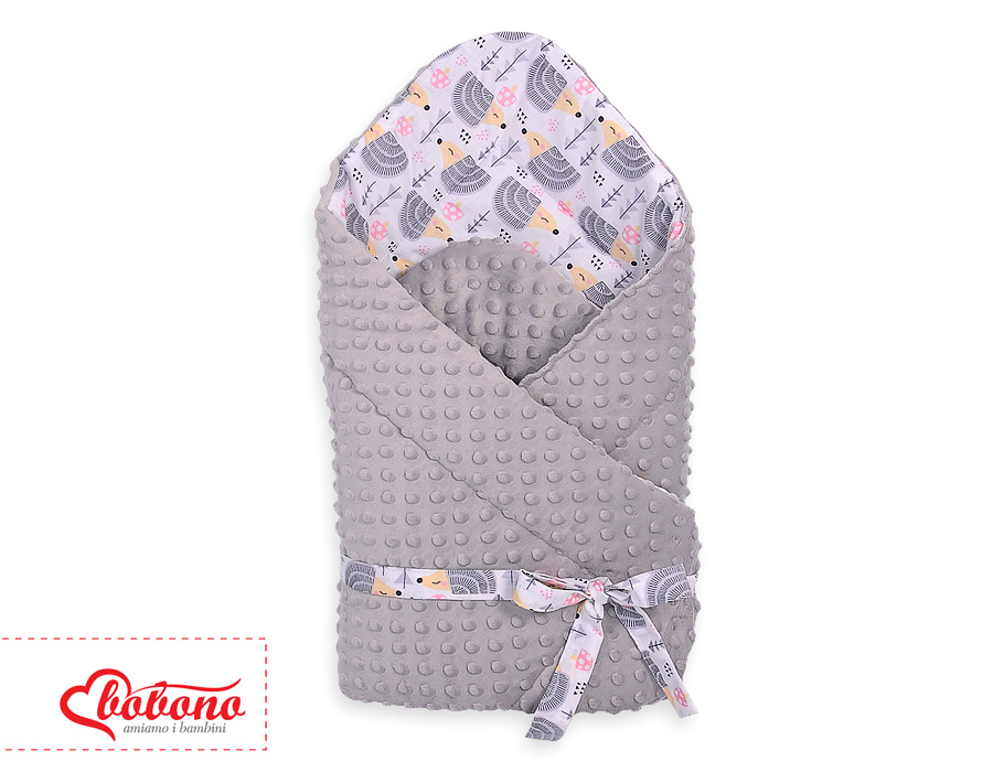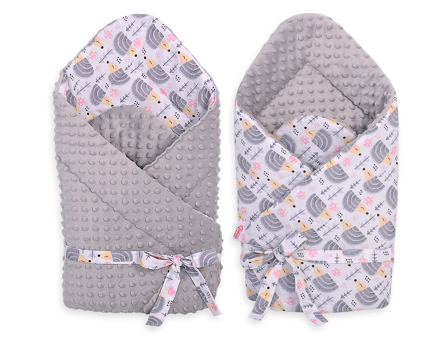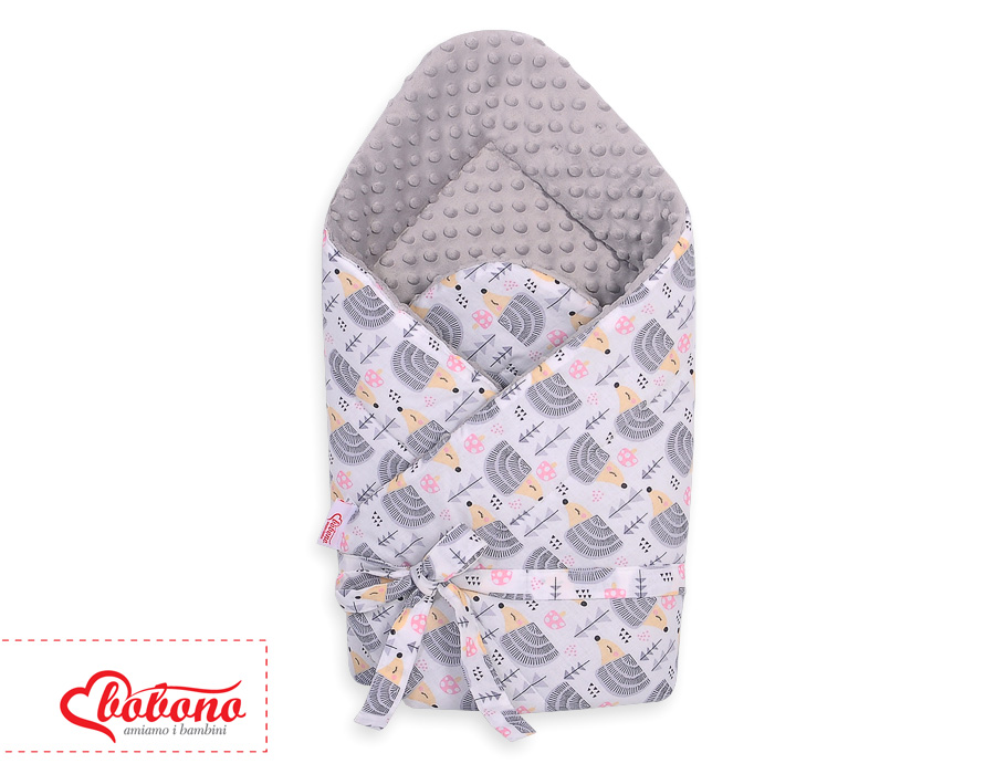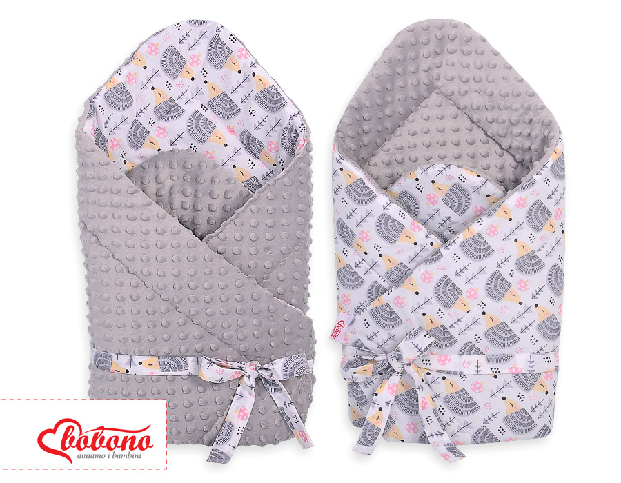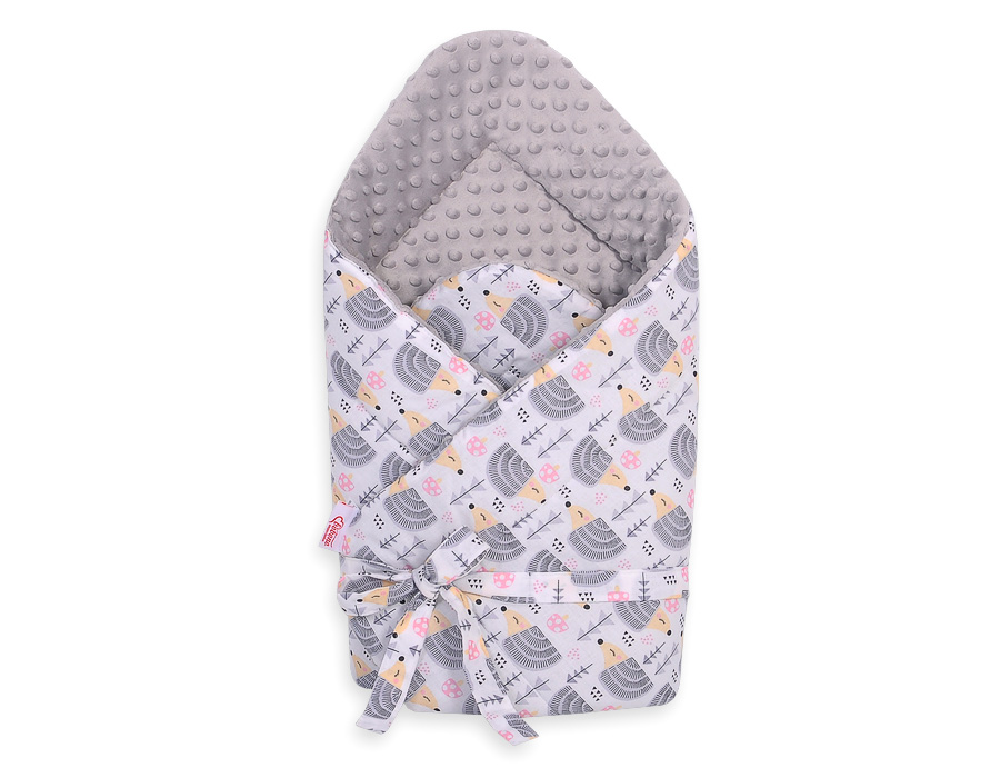 Stubenwagen » Bettwäsche für Babys » Bettwäsche für Babybett FUN & JOY » Babyhörnchen minky mit Schleife » Babyhörnchen aus Minky Stoff mit Schleife - Igel grau