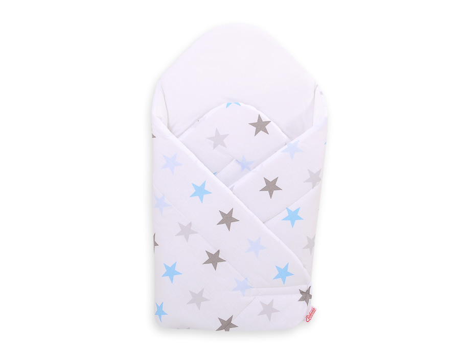 * mit Klettverschluss. Der Klettverschluss erlaubt das Neugeborene fest einzuwickeln, was in den ersten Lebenstagen sehr wichtig ist.