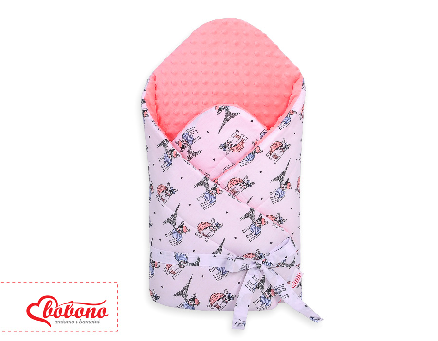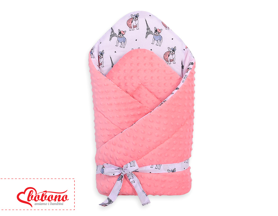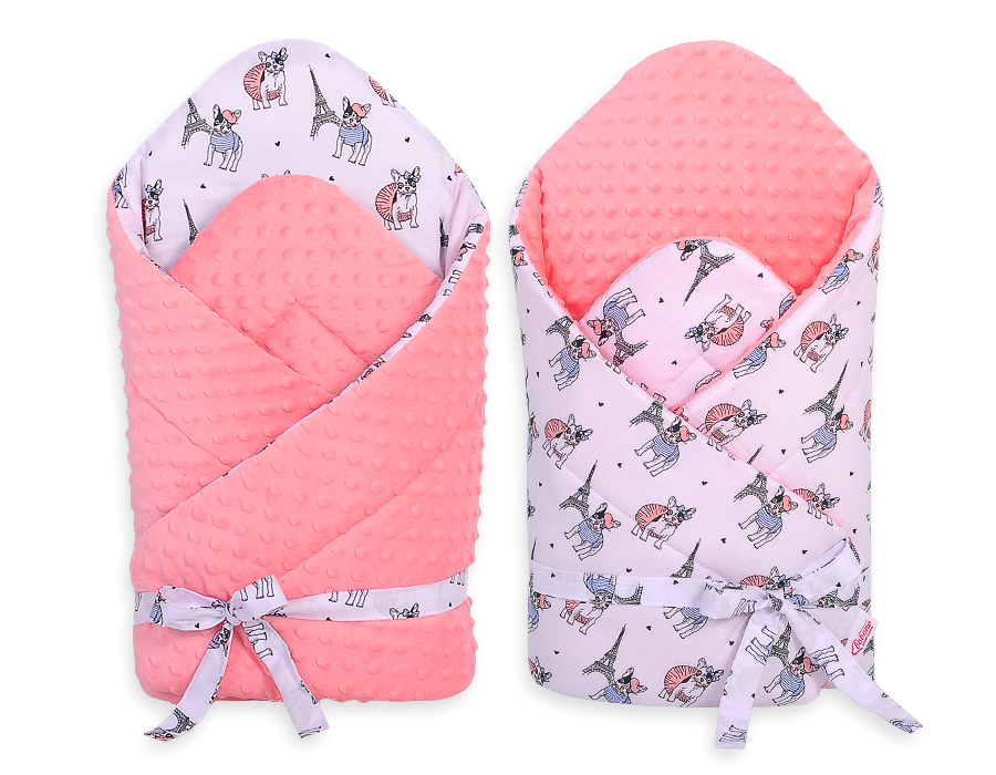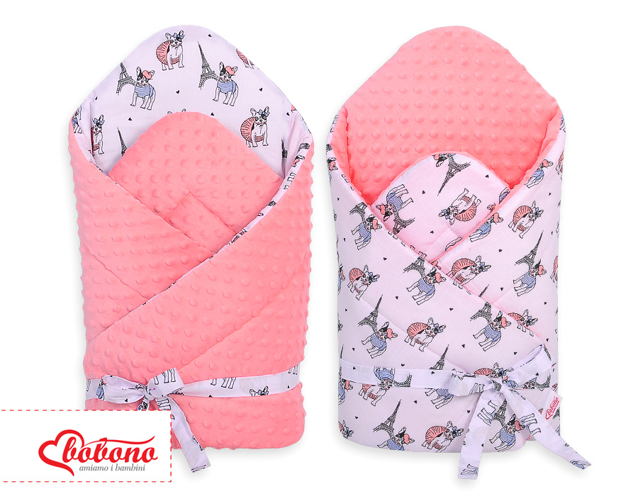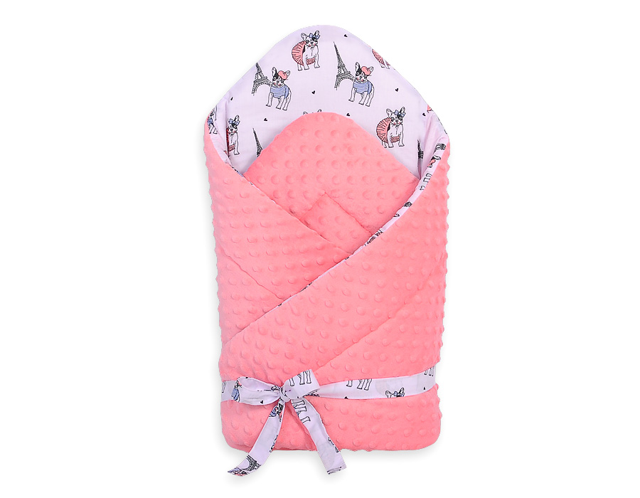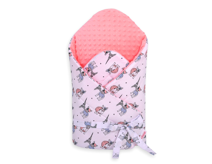 Stubenwagen » Bettwäsche für Babys » Bettwäsche für Babybett FUN & JOY » Babyhörnchen mit Steifen Einlage minky mit Schleife » Babyhörnchen Einschlagdecke minky mit Steifen Einlage mit Schleife - little doggies