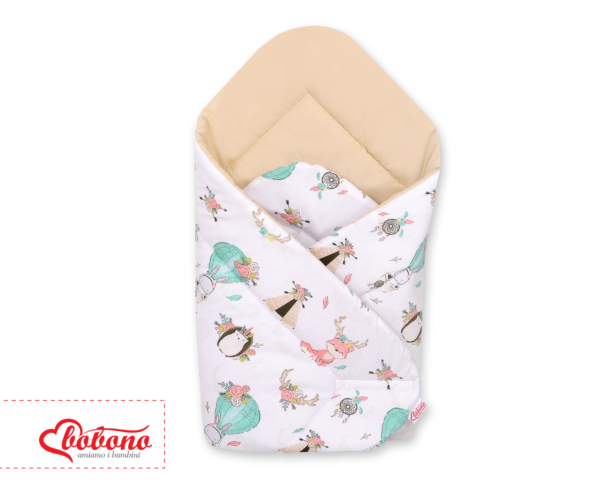 * Bezug bestehend aus 3 atmungsaktiven Lagen. Die Außenseite ist bunte 100% Baumwolle. Die innere Schicht besteht aus einfarbiger Baumwolle. Zwischen den Lagen ist eine Schicht aus weichem Silikongewebe. Die Silikongewebeschicht hat einen Ökotex Atest, verursacht keine Allergien und ist für Neugeborene sicher. Das Gewebe wurde so ausgewählt, dass es eine genügende Würme bietet, aber kein Überhitzen verursacht.