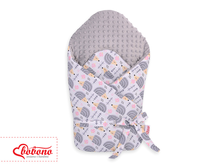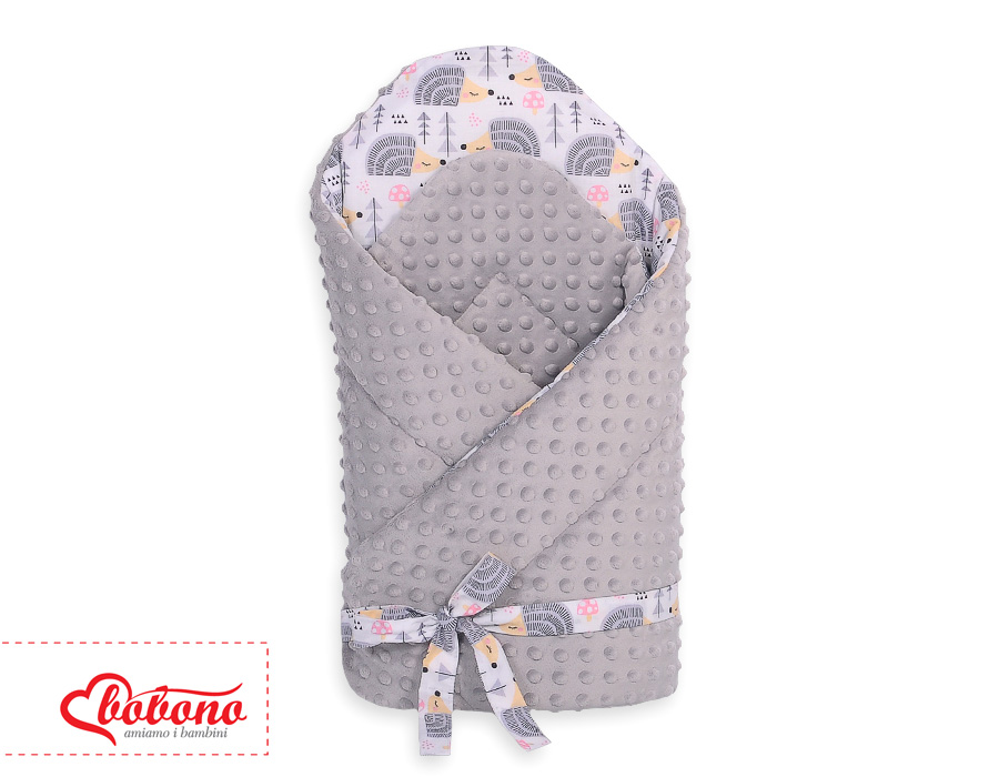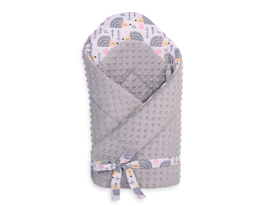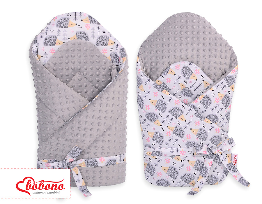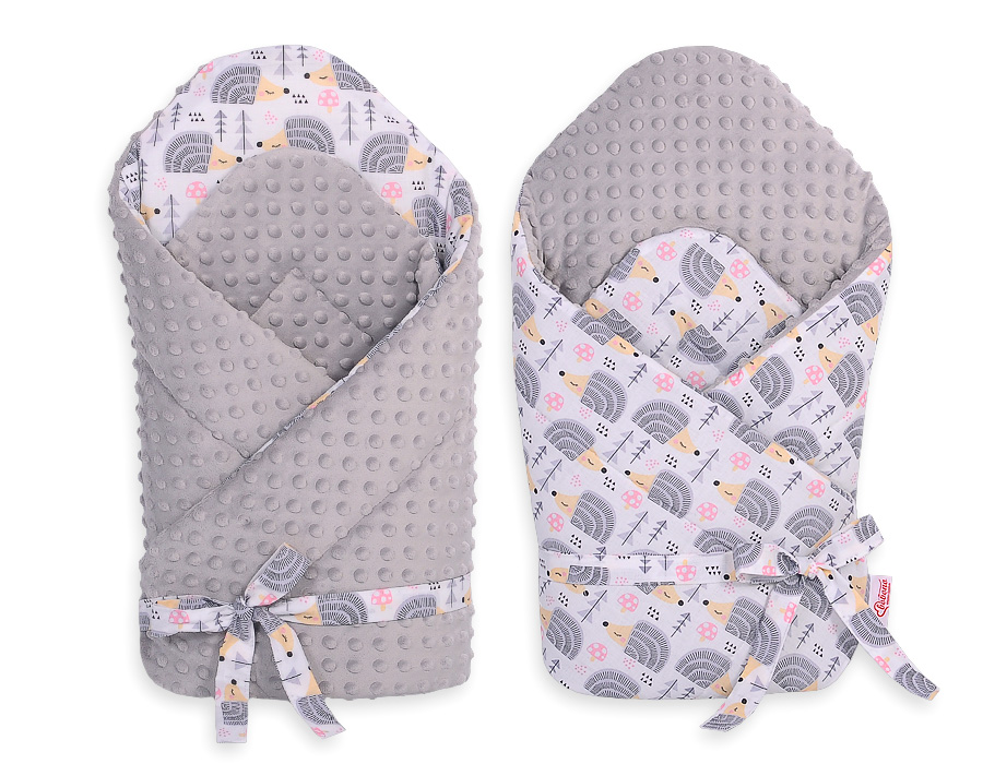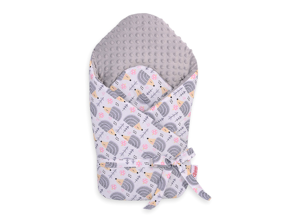 Stubenwagen » Bettwäsche für Babys » Bettwäsche für Babybett FUN & JOY » Babyhörnchen mit Steifen Einlage minky mit Schleife » Babyhörnchen für Babys minky mit Steifen Einlage mit Schleife - Igel grau