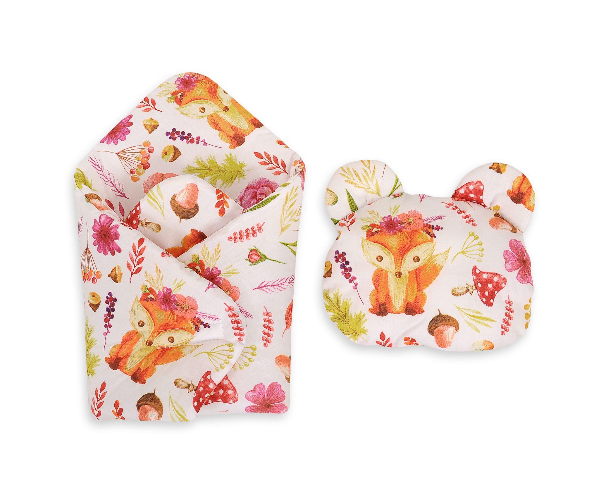 Stubenwagen » Spielzeug Kuscheltiere » Puppenwagen und Spielzeug » Puppen-Wickeltüte » Babyhörnchen für Puppen mit Kissen - Fuchs im Kranz