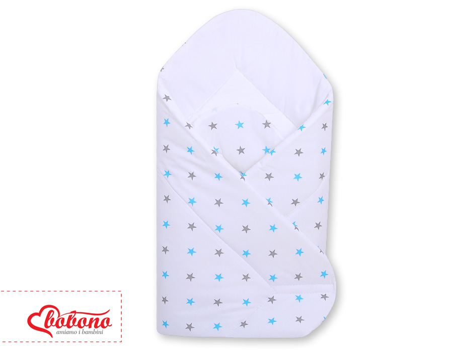 Stubenwagen » Bettwäsche für Babys » Bettwäsche für Babybett COLOR MIX » Babynestchen mit Einlage » Babyhörnchen mit steife Einlage - Weis mit grau-blauen Sternchen