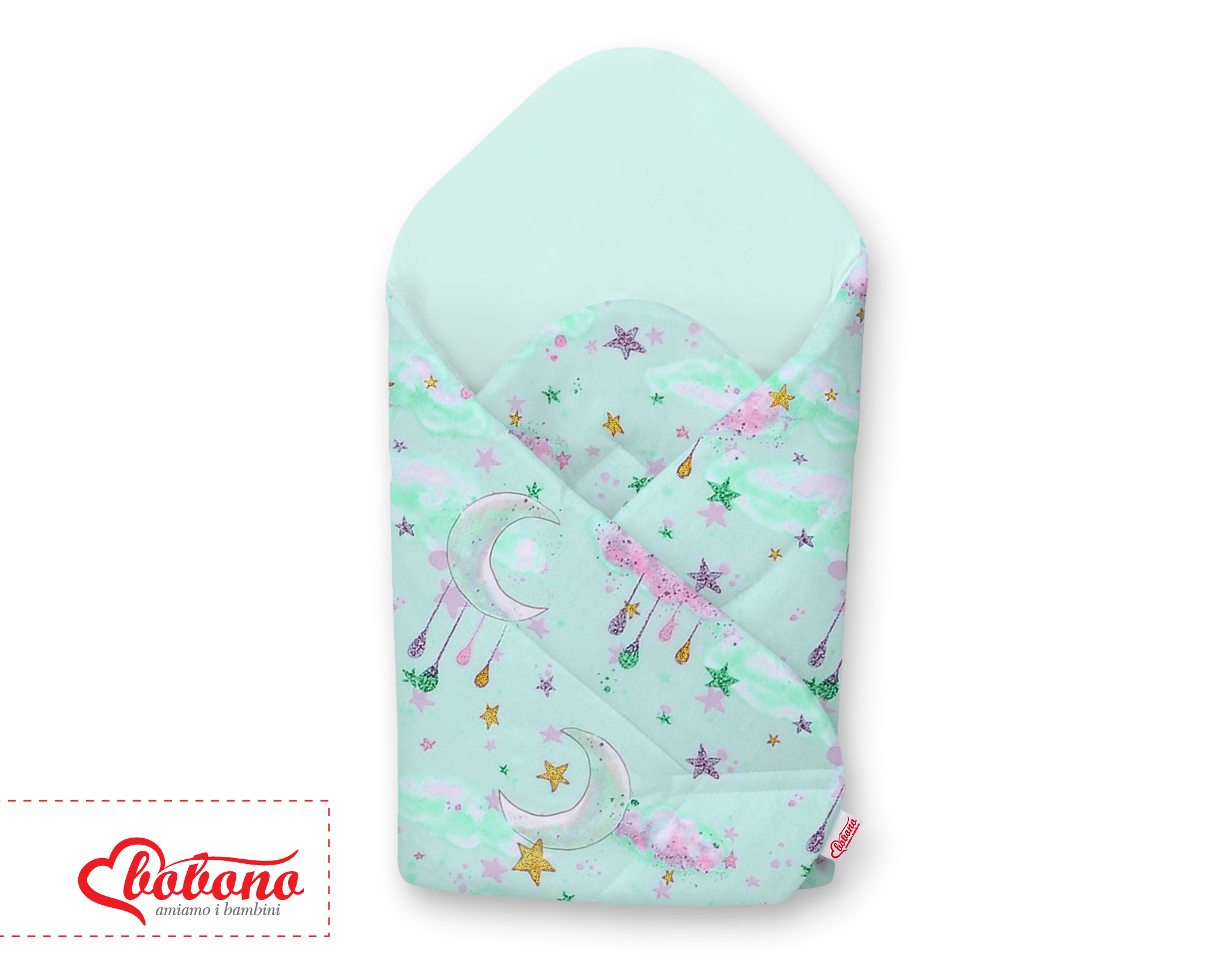 * Bezug bestehend aus 3 atmungsaktiven Lagen. Die Außenseite ist bunte 100% Baumwolle. Die innere Schicht besteht aus einfarbiger Baumwolle. Zwischen den Lagen ist eine Schicht aus weichem Silikongewebe. Die Silikongewebeschicht hat einen Ökotex Atest, verursacht keine Allergien und ist für Neugeborene sicher. Das Gewebe wurde so ausgewählt, dass es eine genügende Würme bietet, aber kein Überhitzen verursacht.