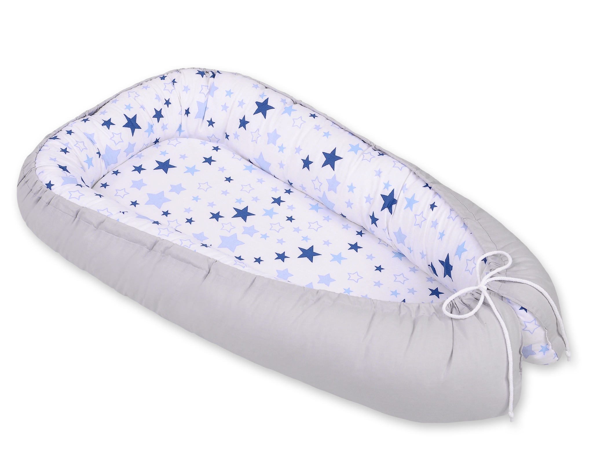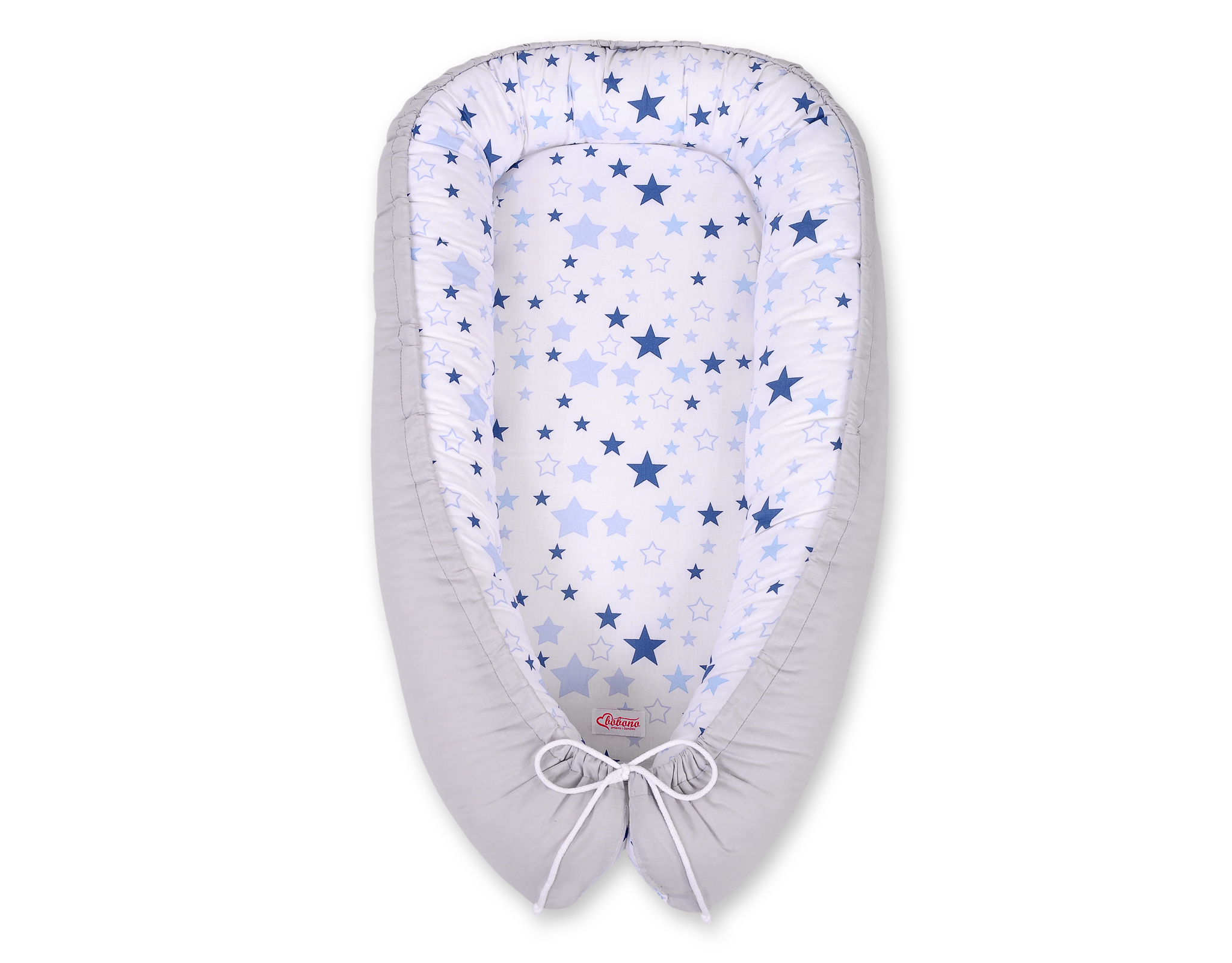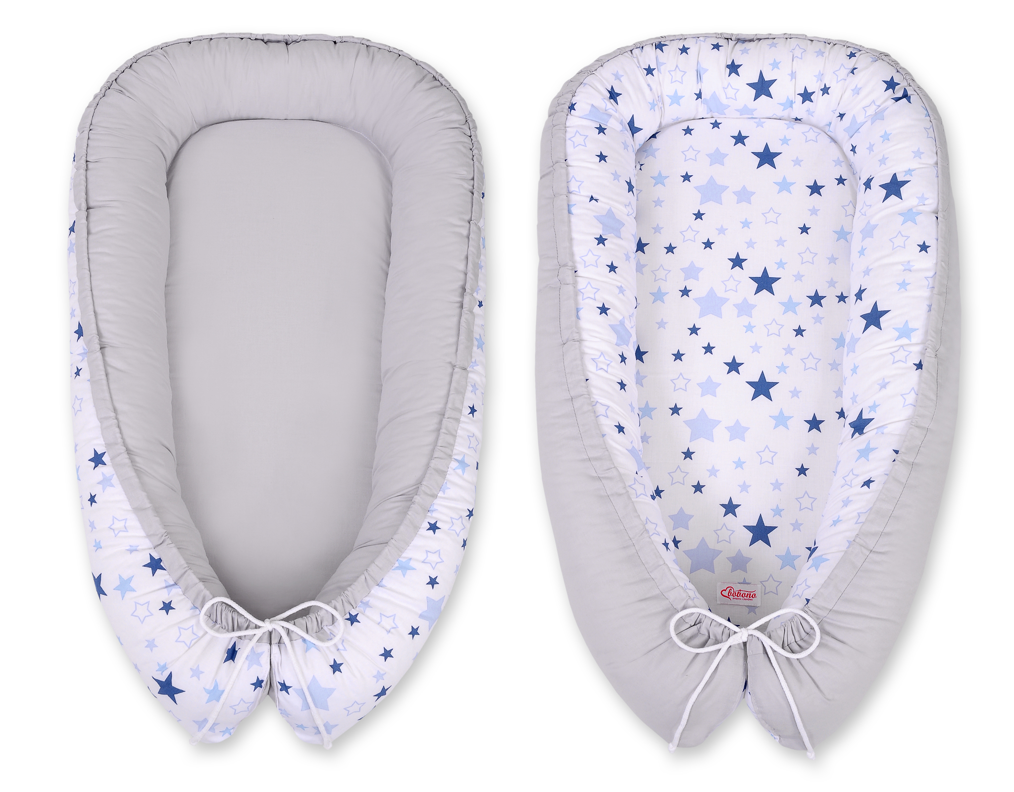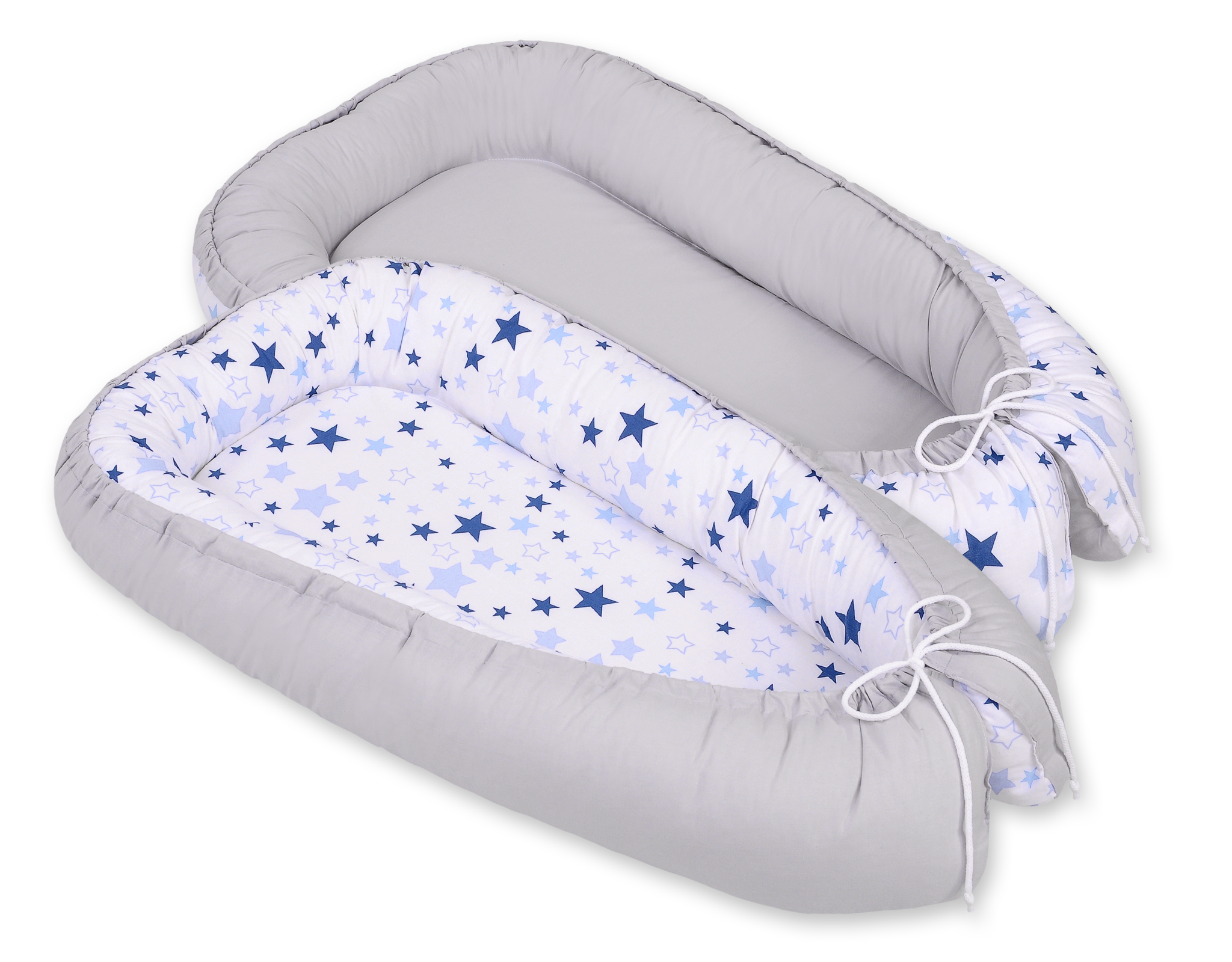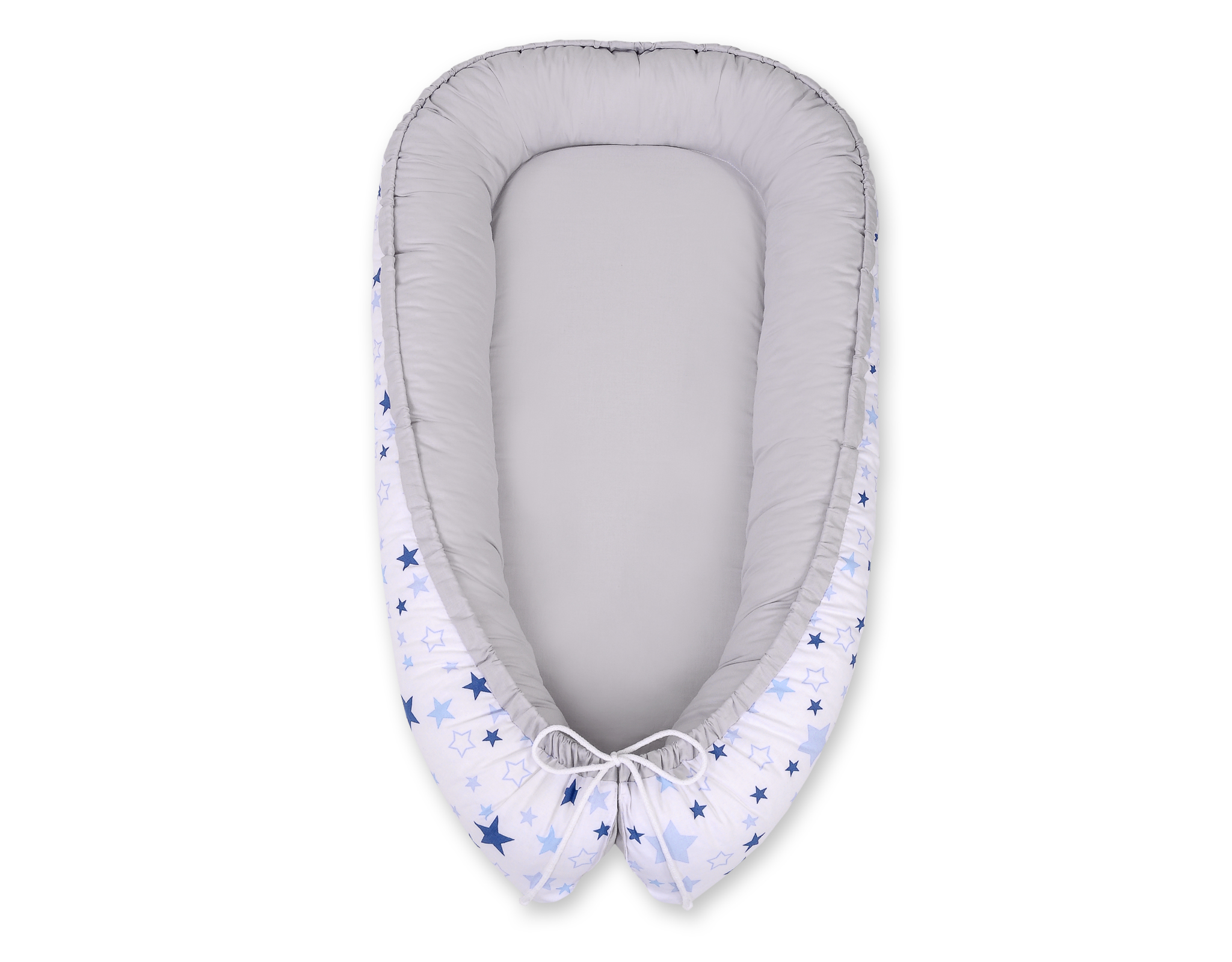 Stubenwagen » Bettwäsche für Babys » Bettwäsche für Babybett FUN & JOY » Babynestchen » Babykokon - blaue Sternen/grau