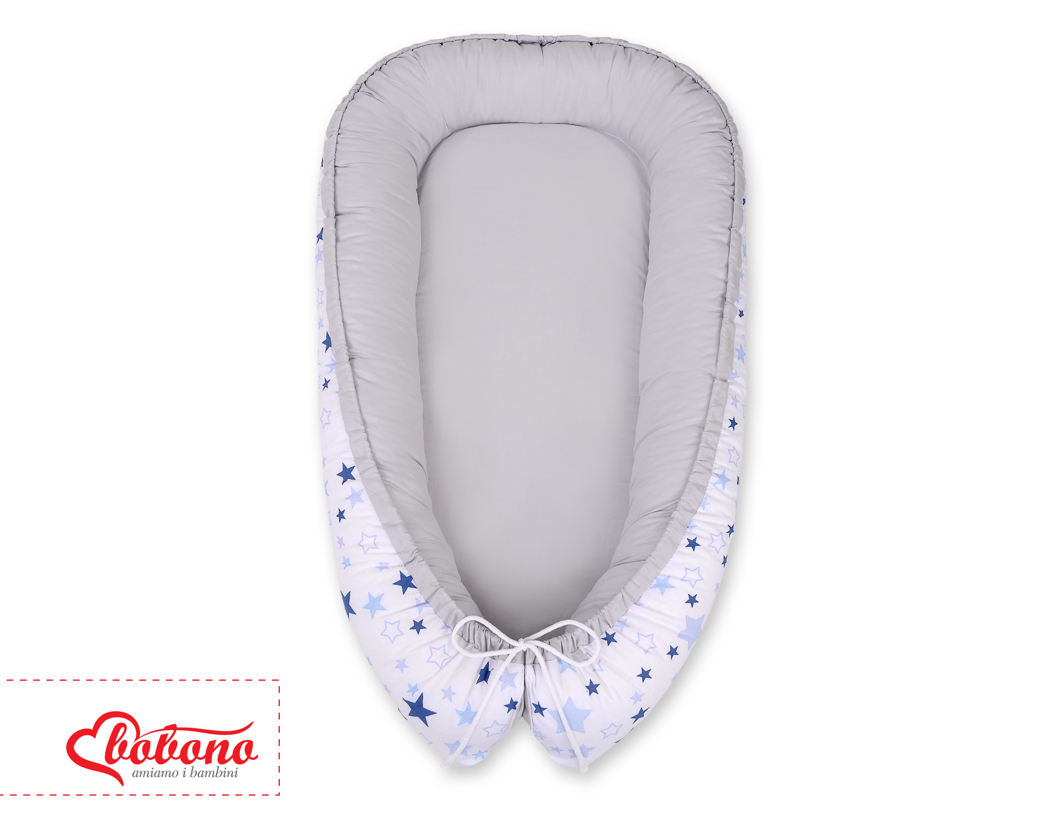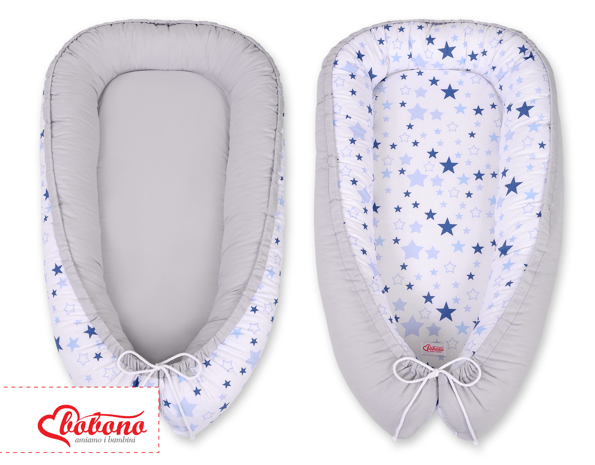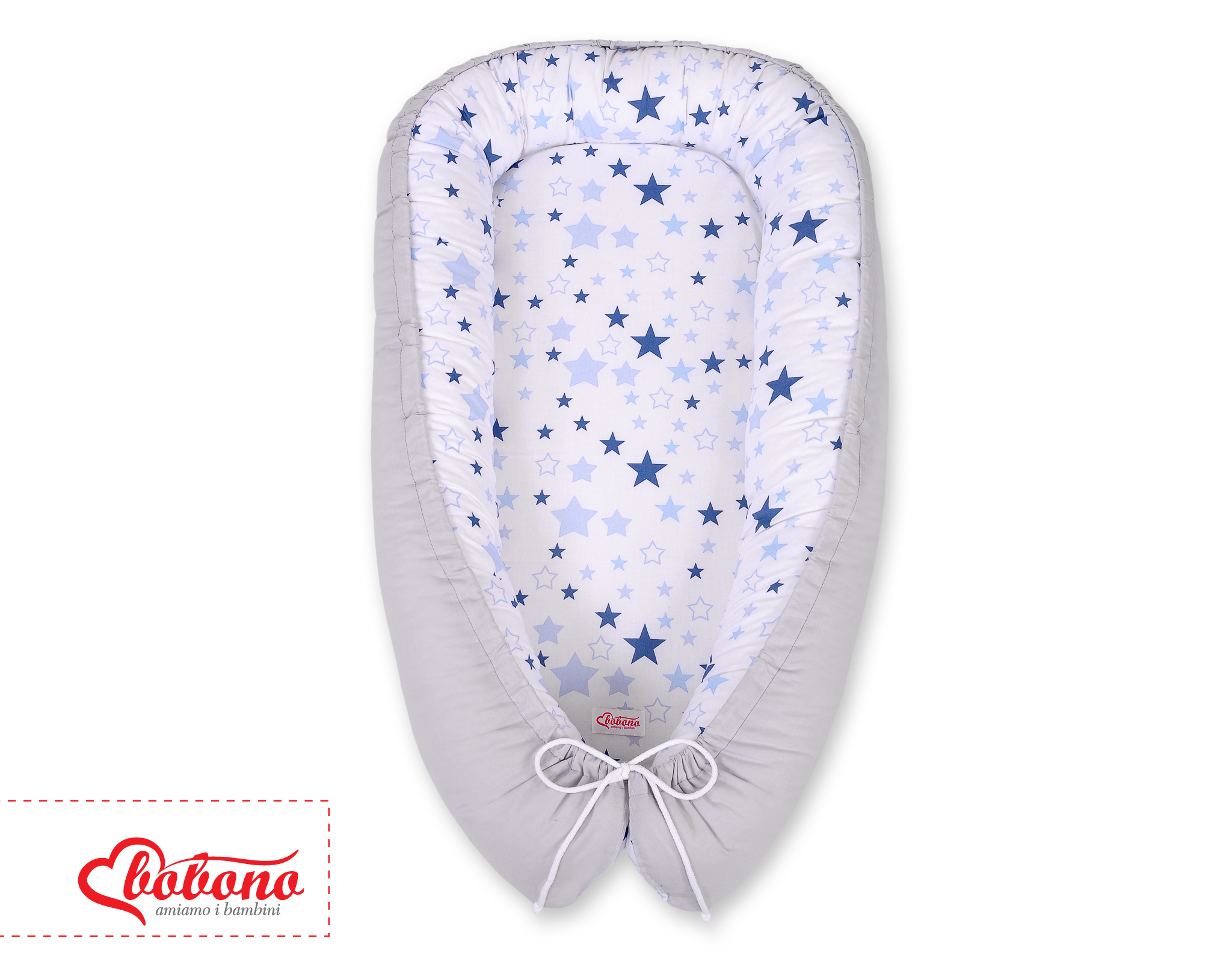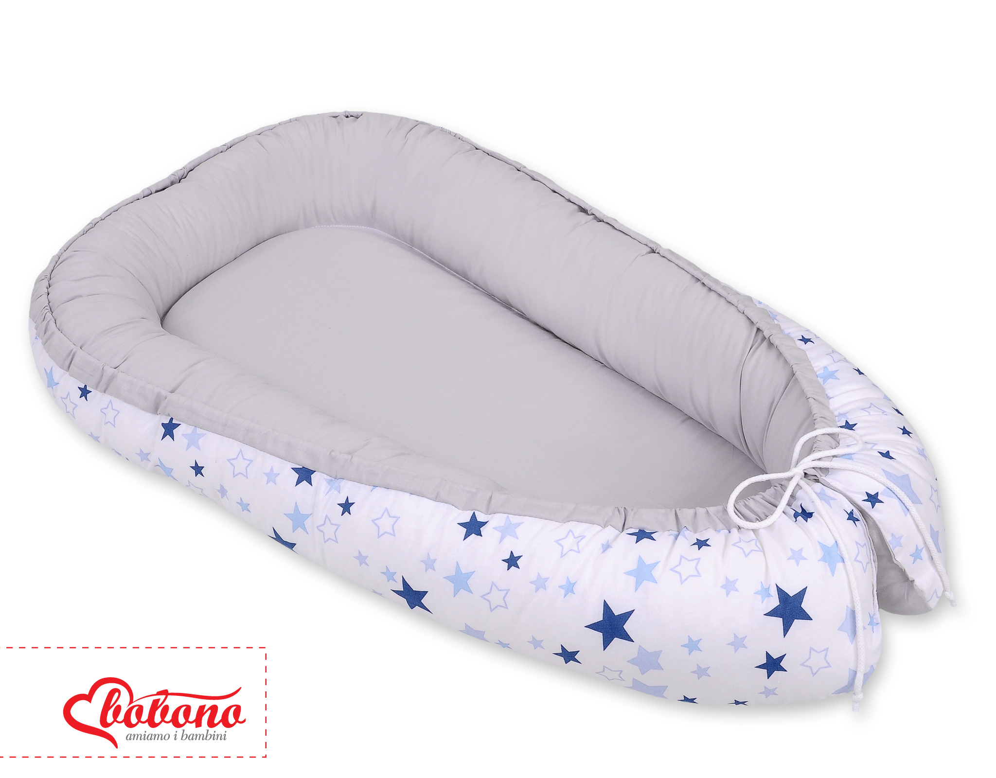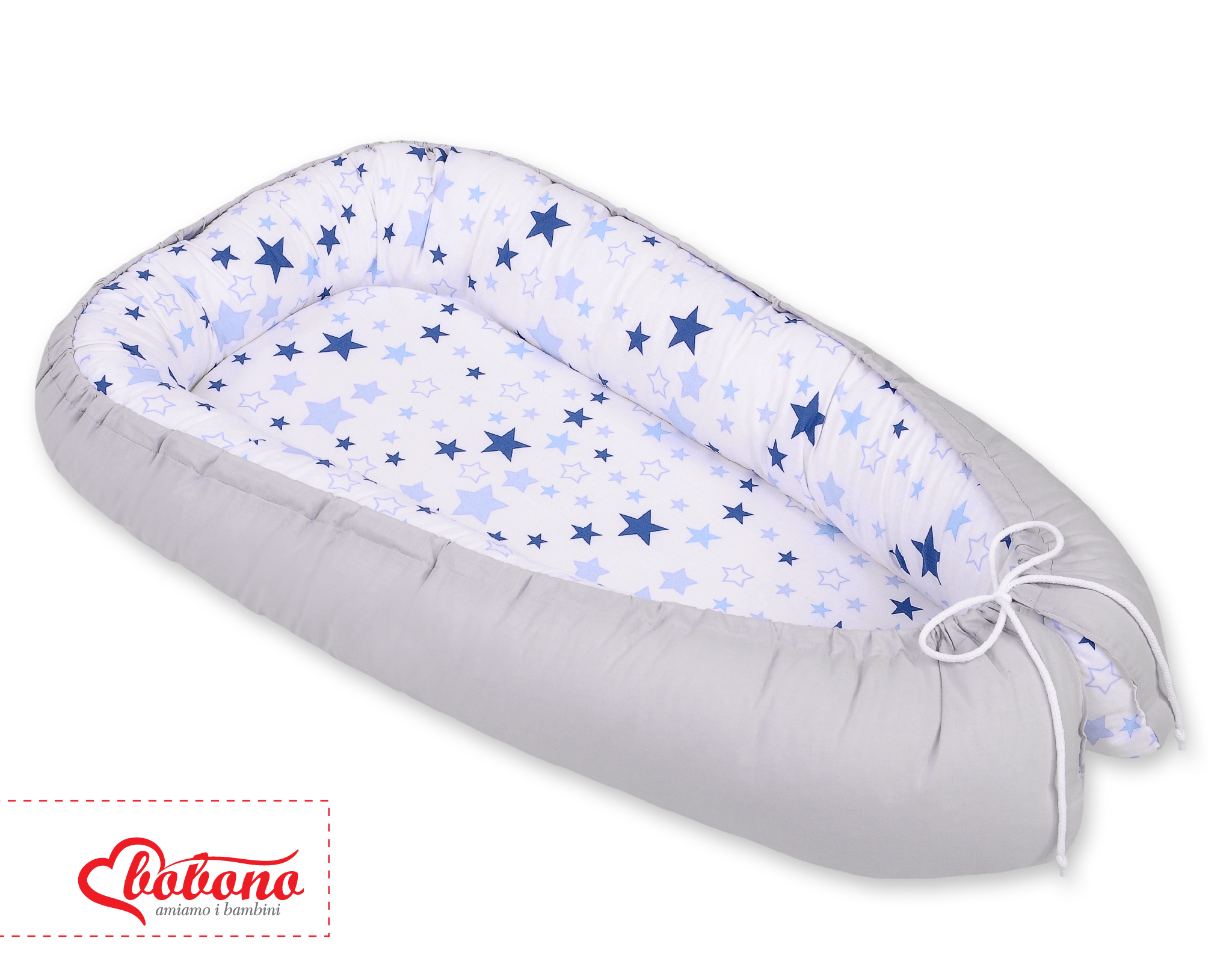 Stubenwagen » Bettwäsche für Babys » Bettwäsche für Babybett FUN & JOY » Babynestchen » Babykokon - blaue Sternen/grau