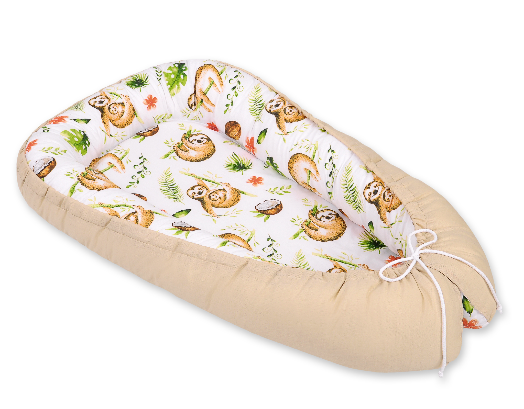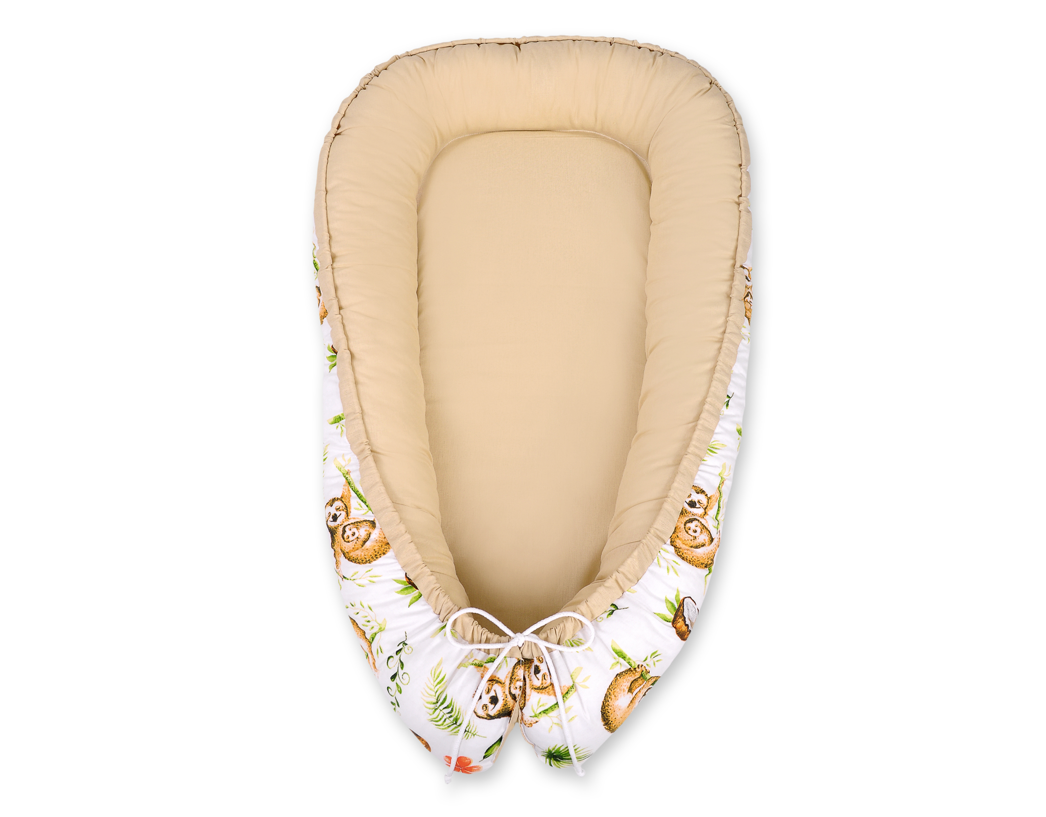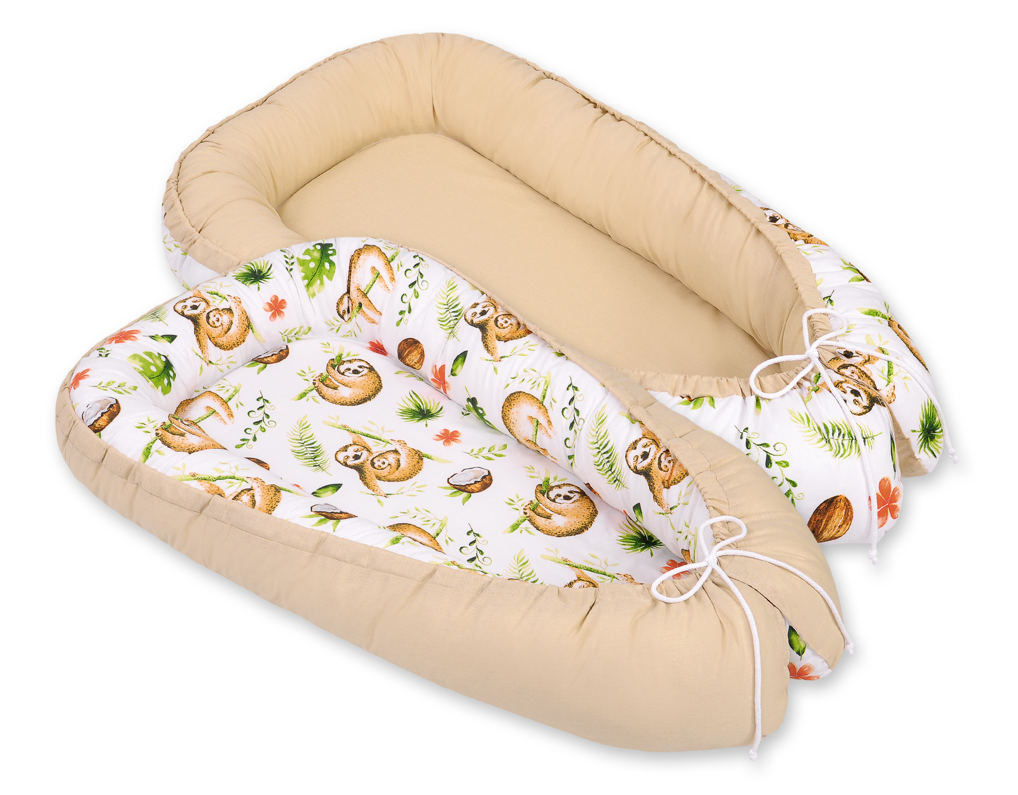 Stubenwagen » Bettwäsche für Babys » Bettwäsche für Babybett FUN & JOY » Babynestchen » Babykokon - Faultiere beige/beige