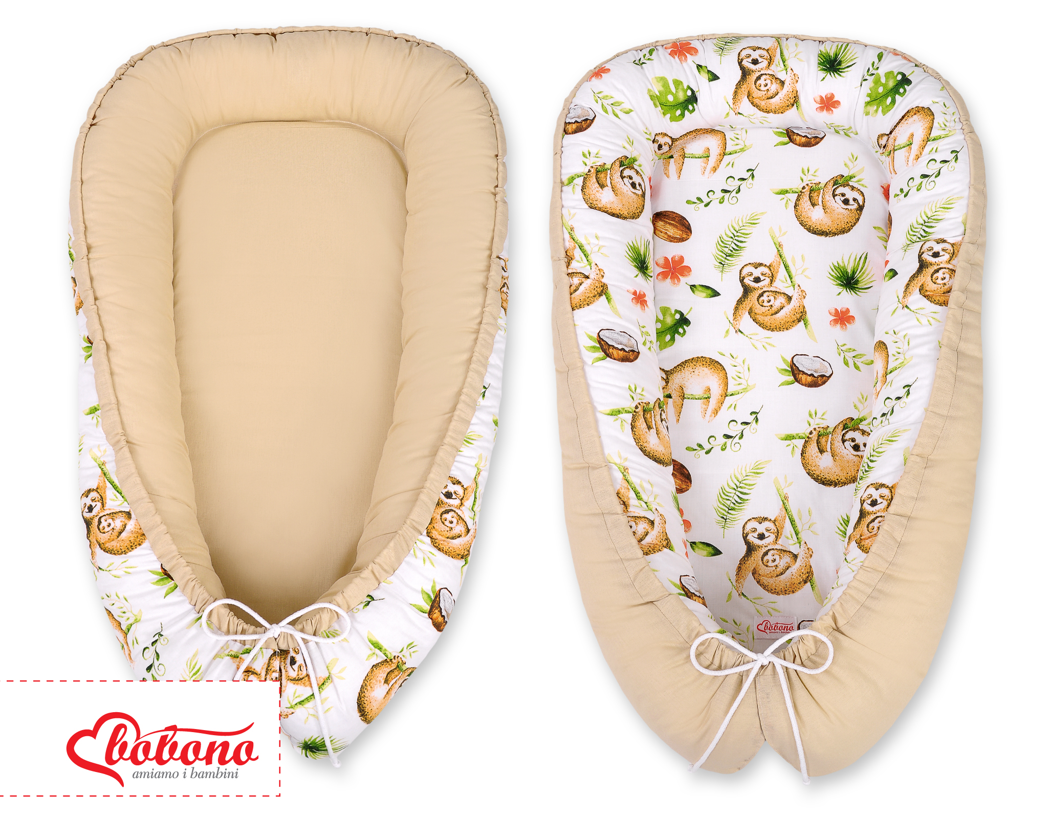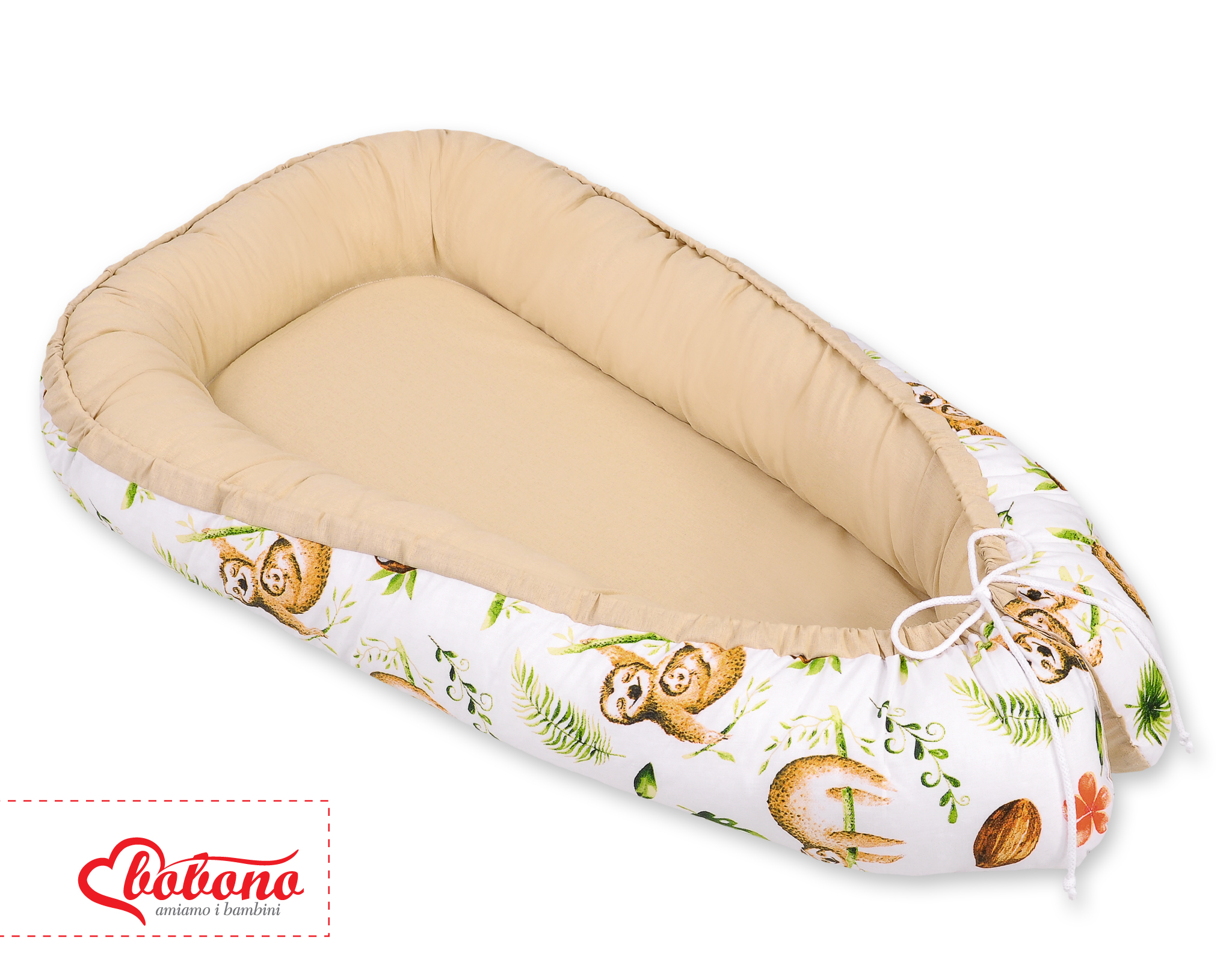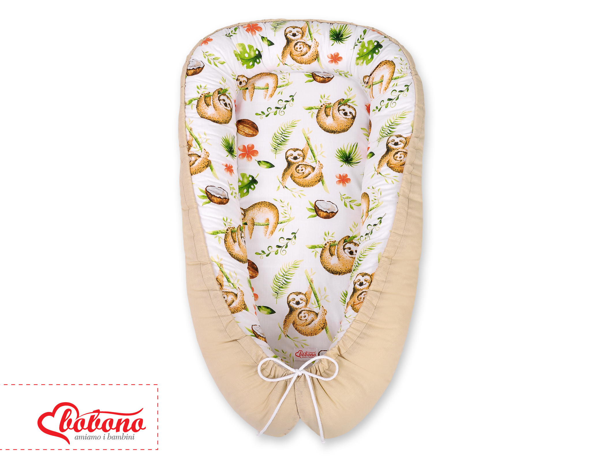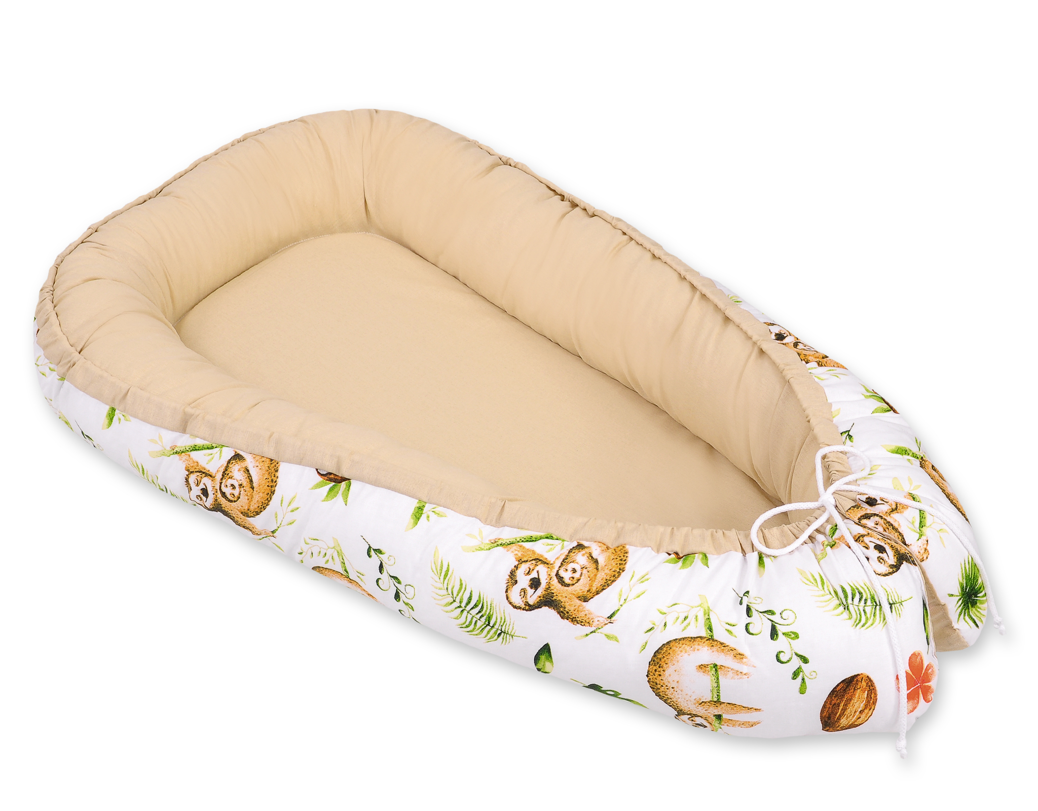 Stubenwagen » Bettwäsche für Babys » Bettwäsche für Babybett FUN & JOY » Babynestchen » Babykokon - Faultiere beige/beige