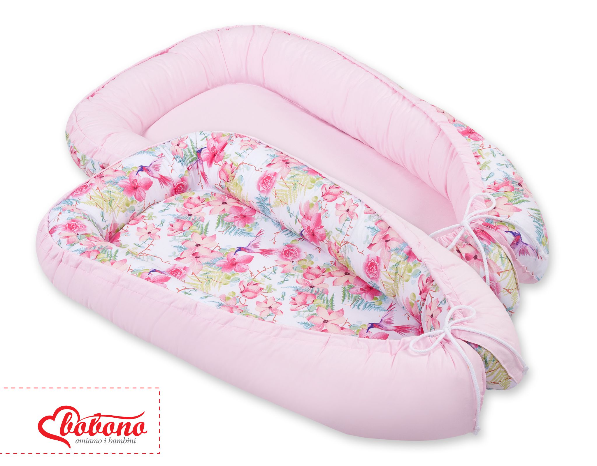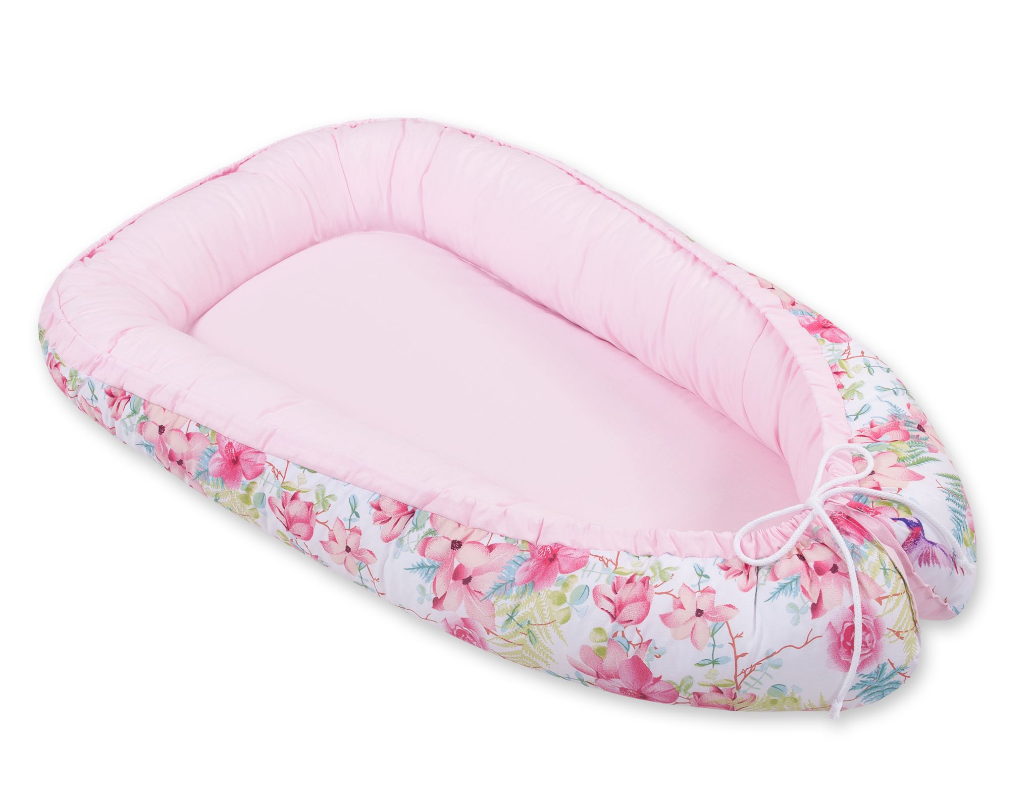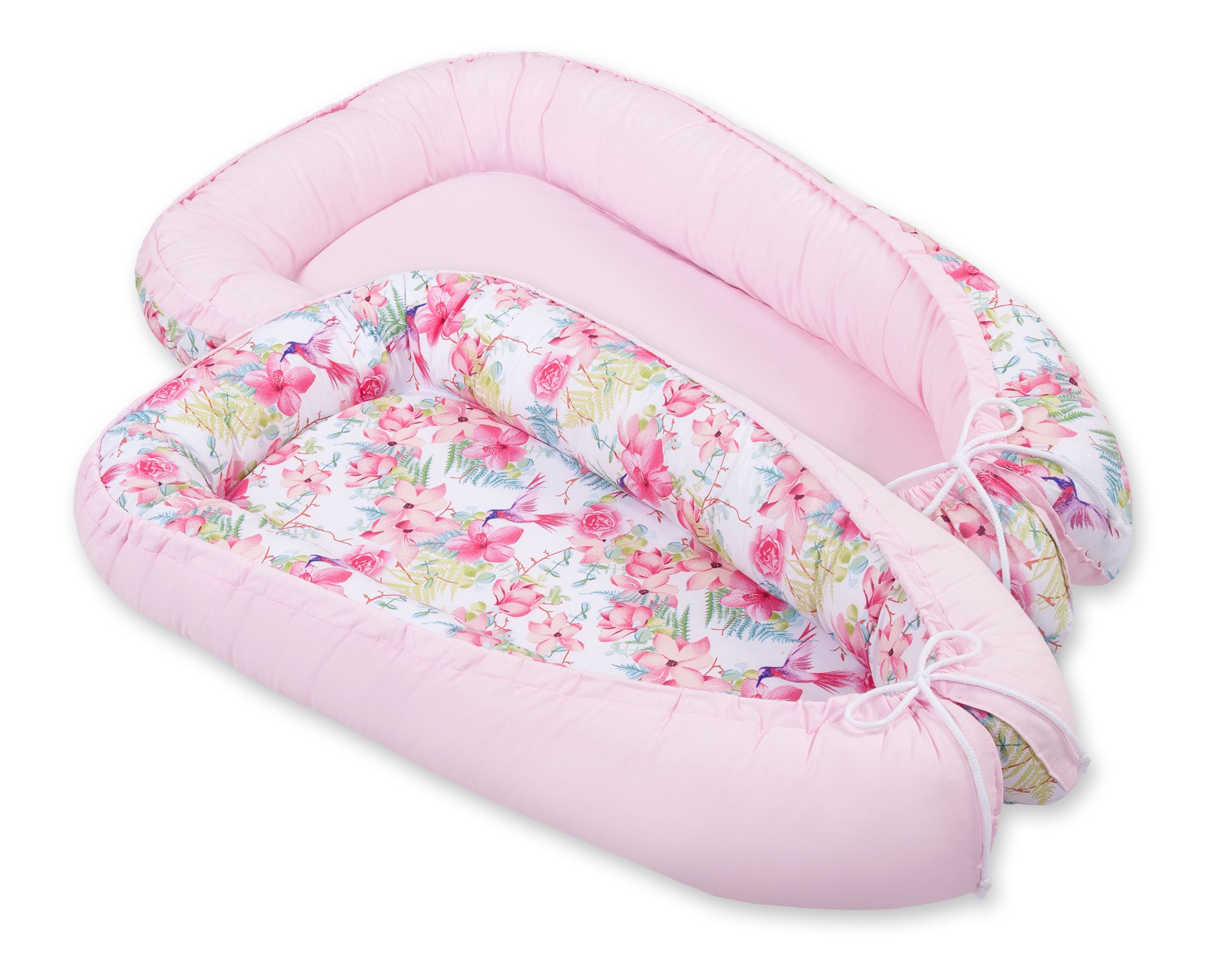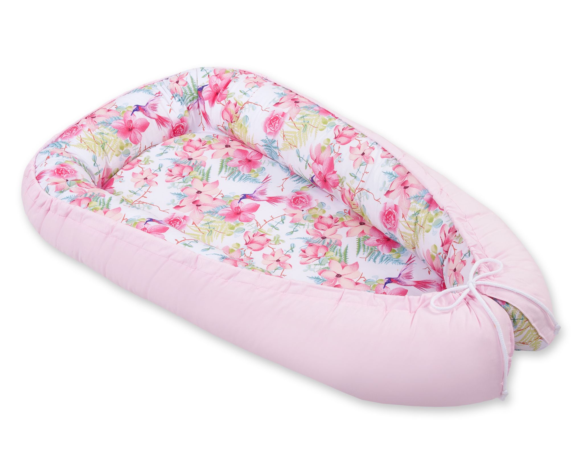 Stubenwagen » Bettwäsche für Babys » Bettwäsche für Babybett FUN & JOY » Babynestchen » Babykokon - Kolibri in Blumen/rosa