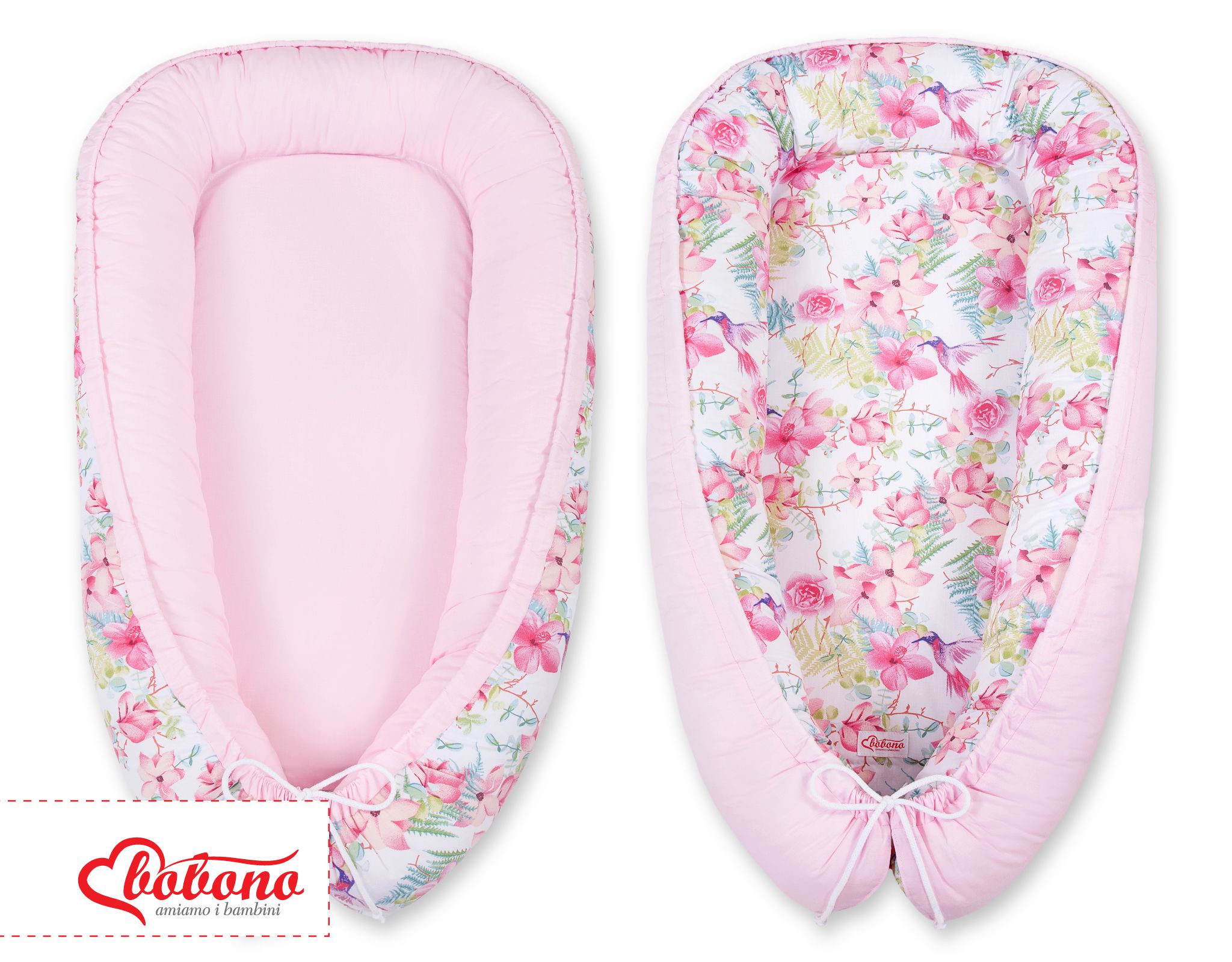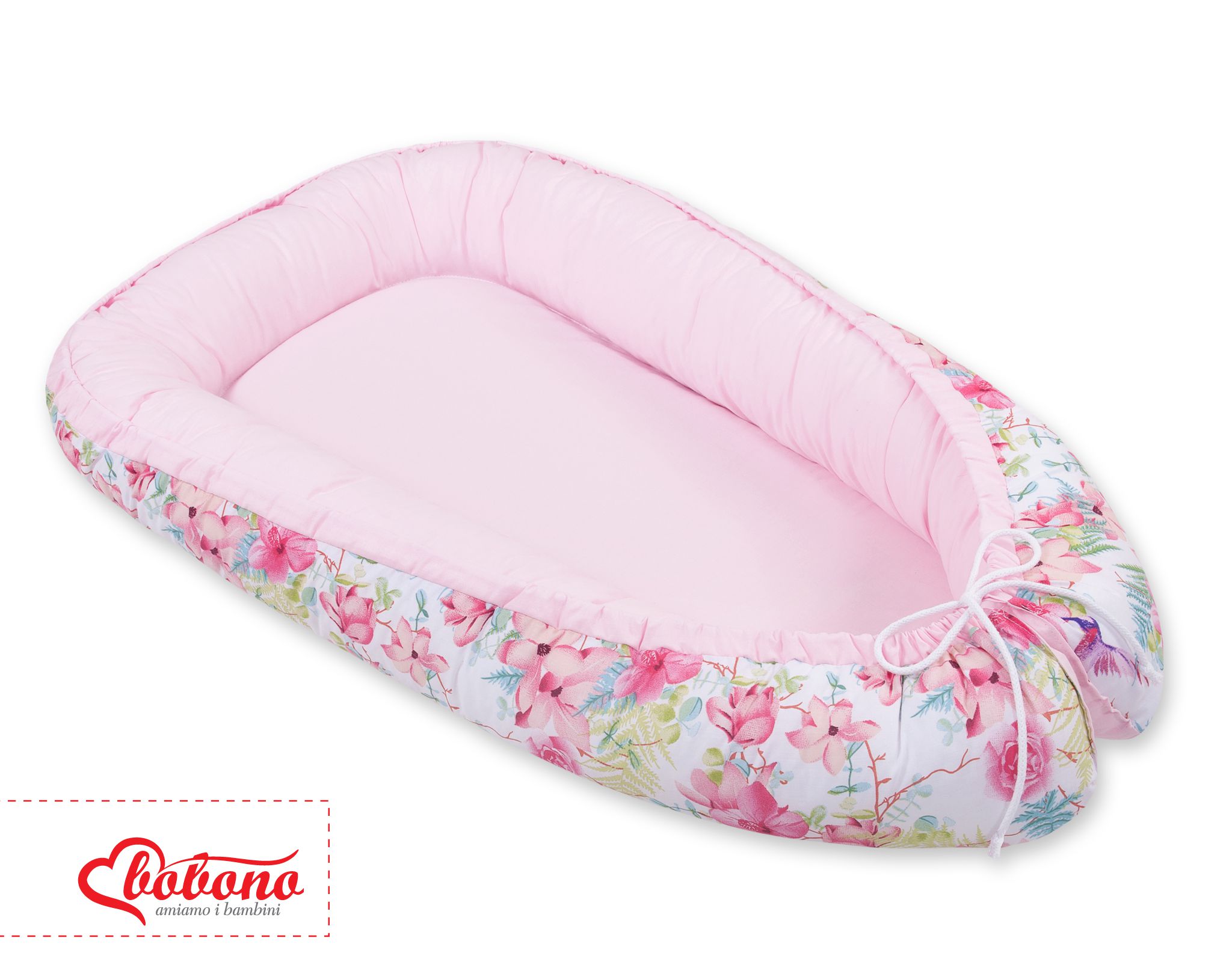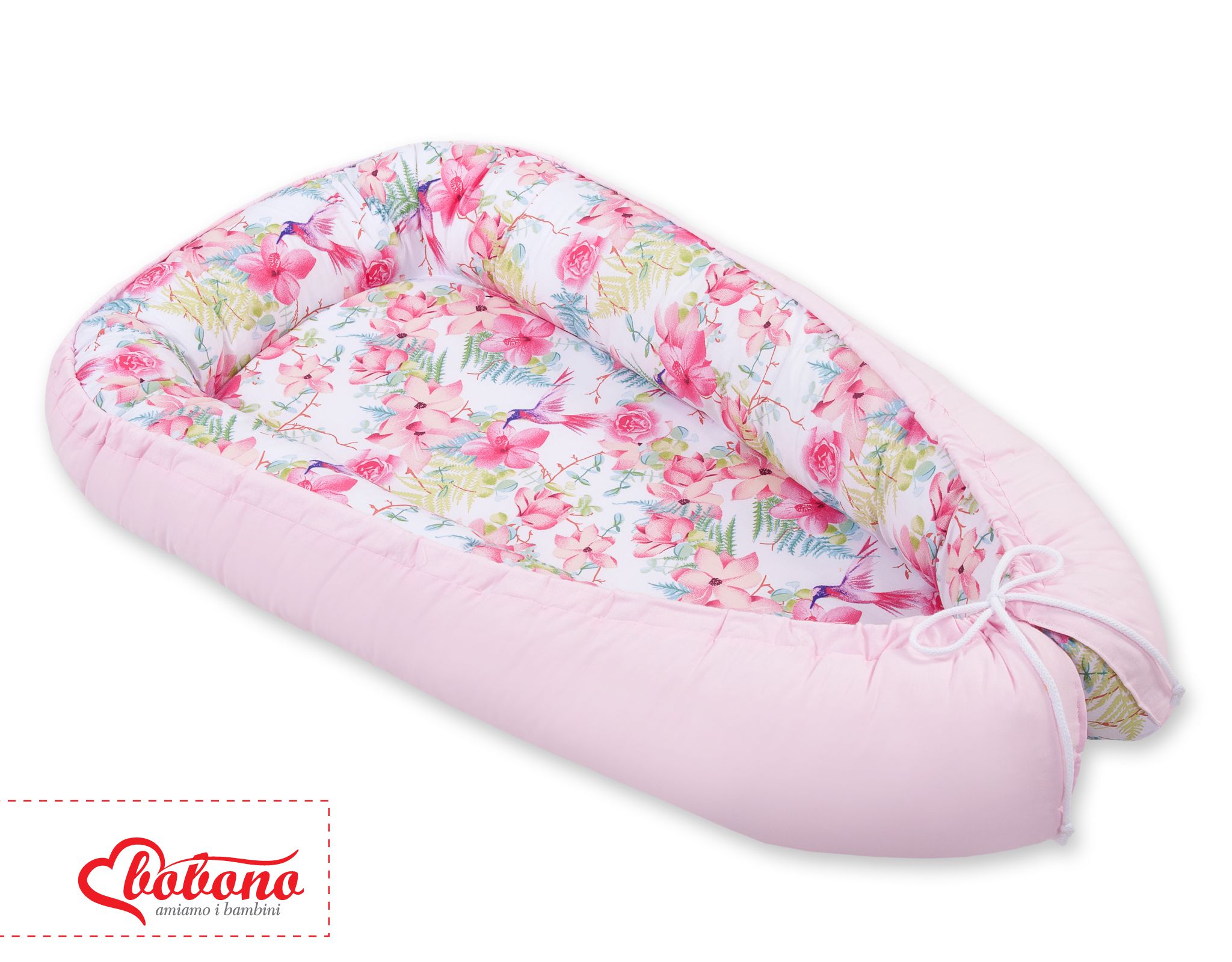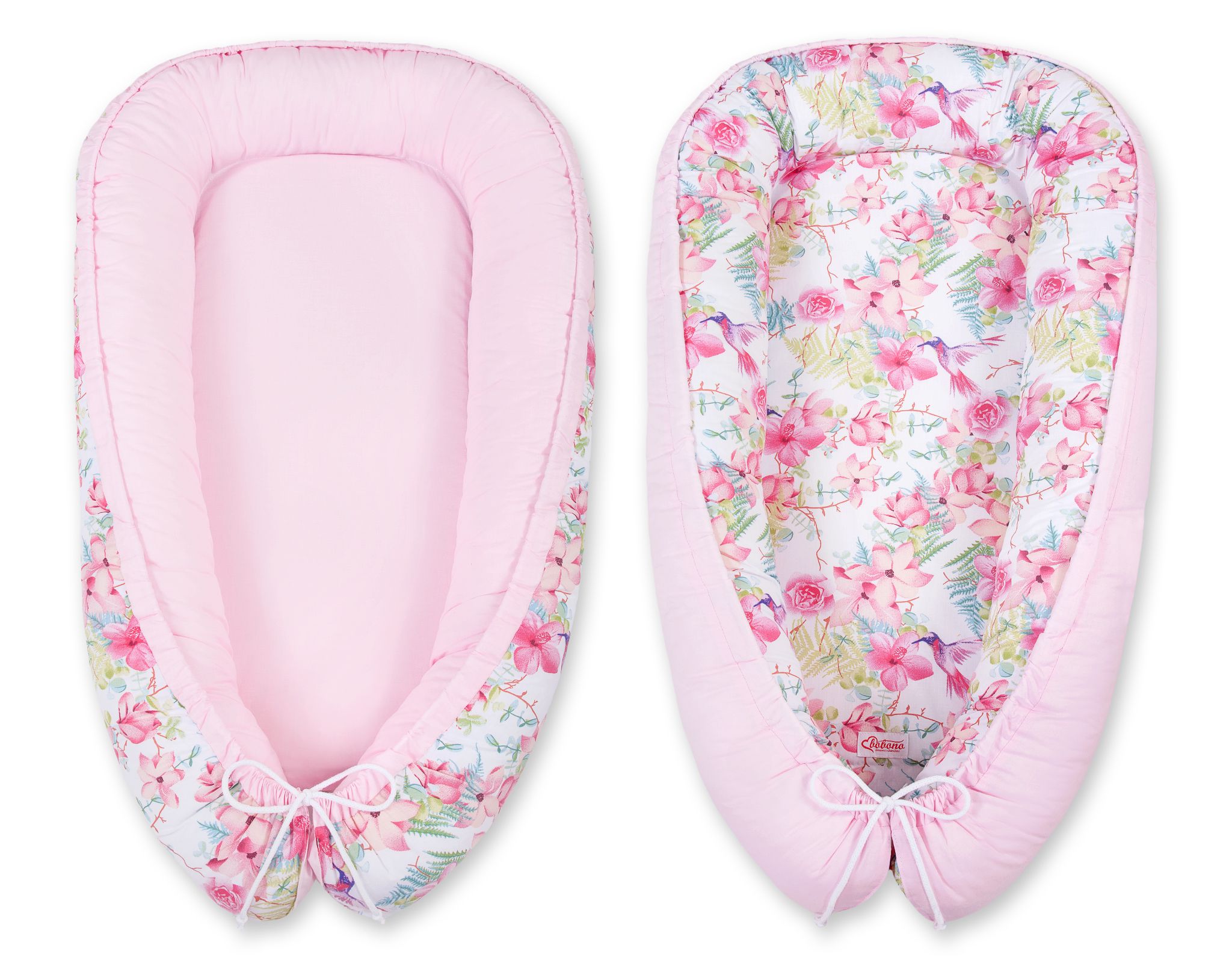 Stubenwagen » Bettwäsche für Babys » Bettwäsche für Babybett FUN & JOY » Babynestchen » Babykokon - Kolibri in Blumen/rosa