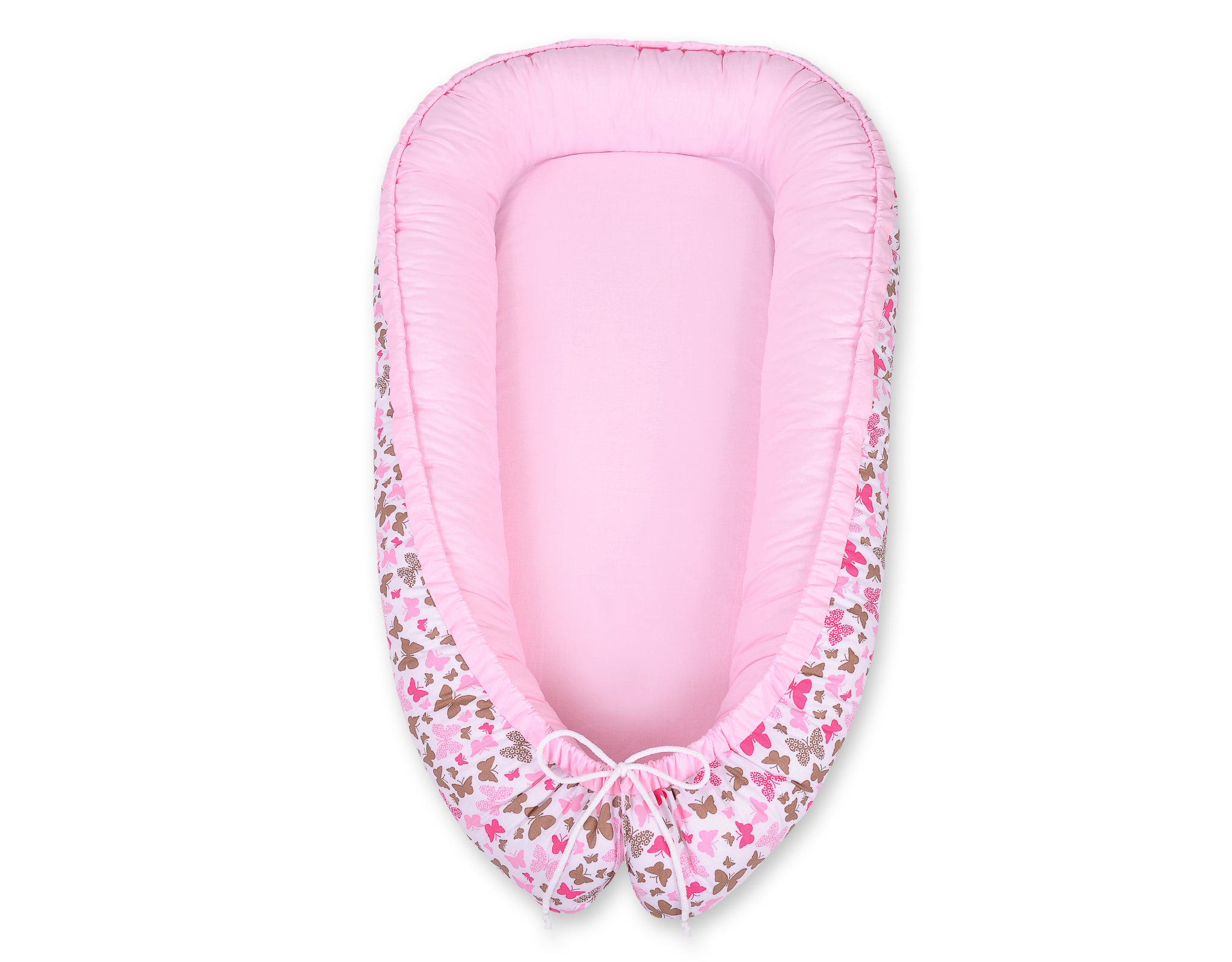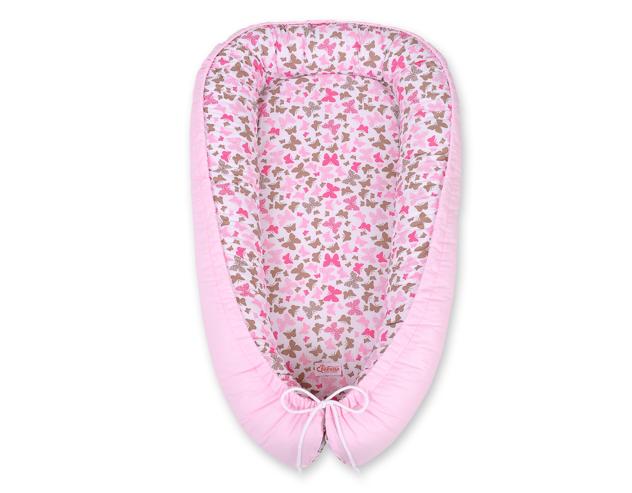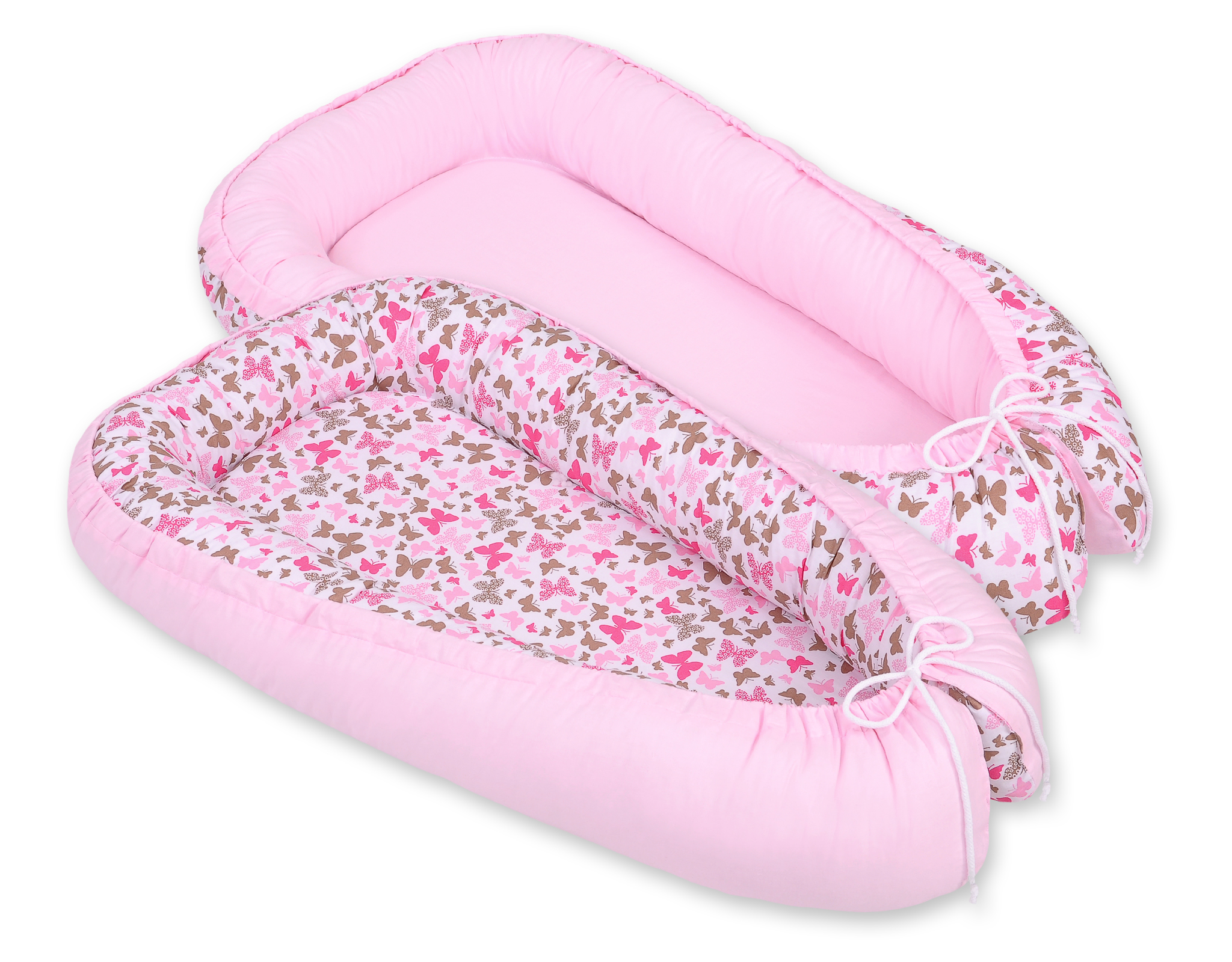Stubenwagen » Bettwäsche für Babys » Bettwäsche für Babybett FUN & JOY » Babynestchen » Babykokon - rosa Schmetterlinge/rosa