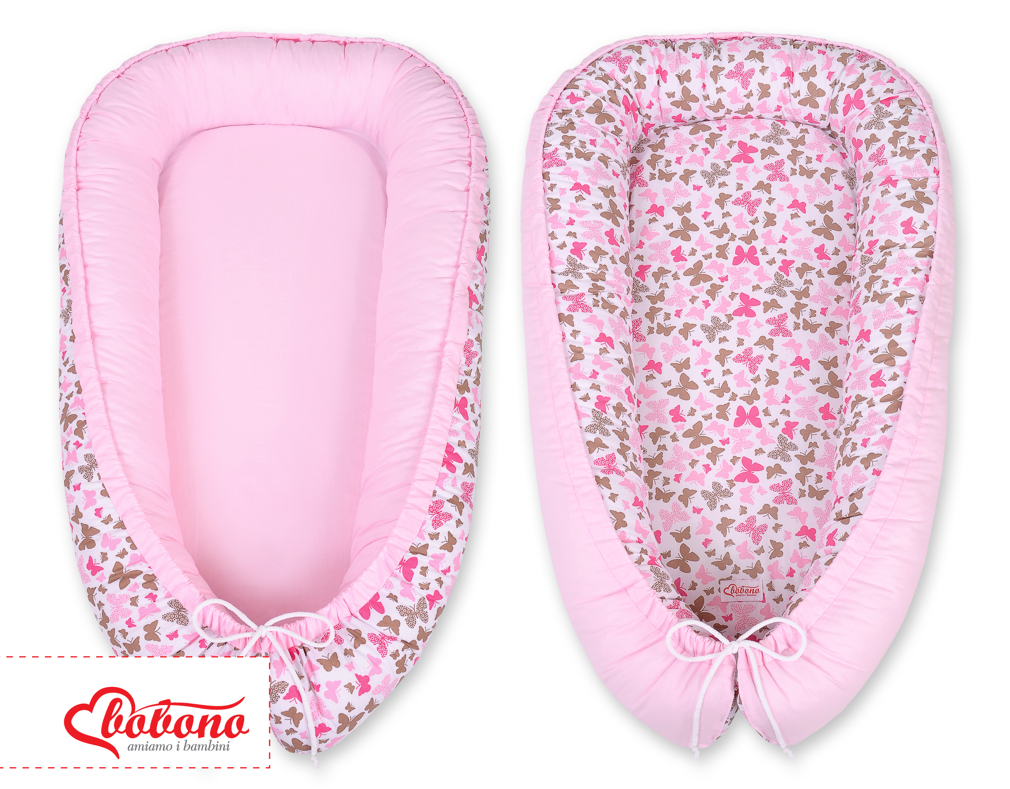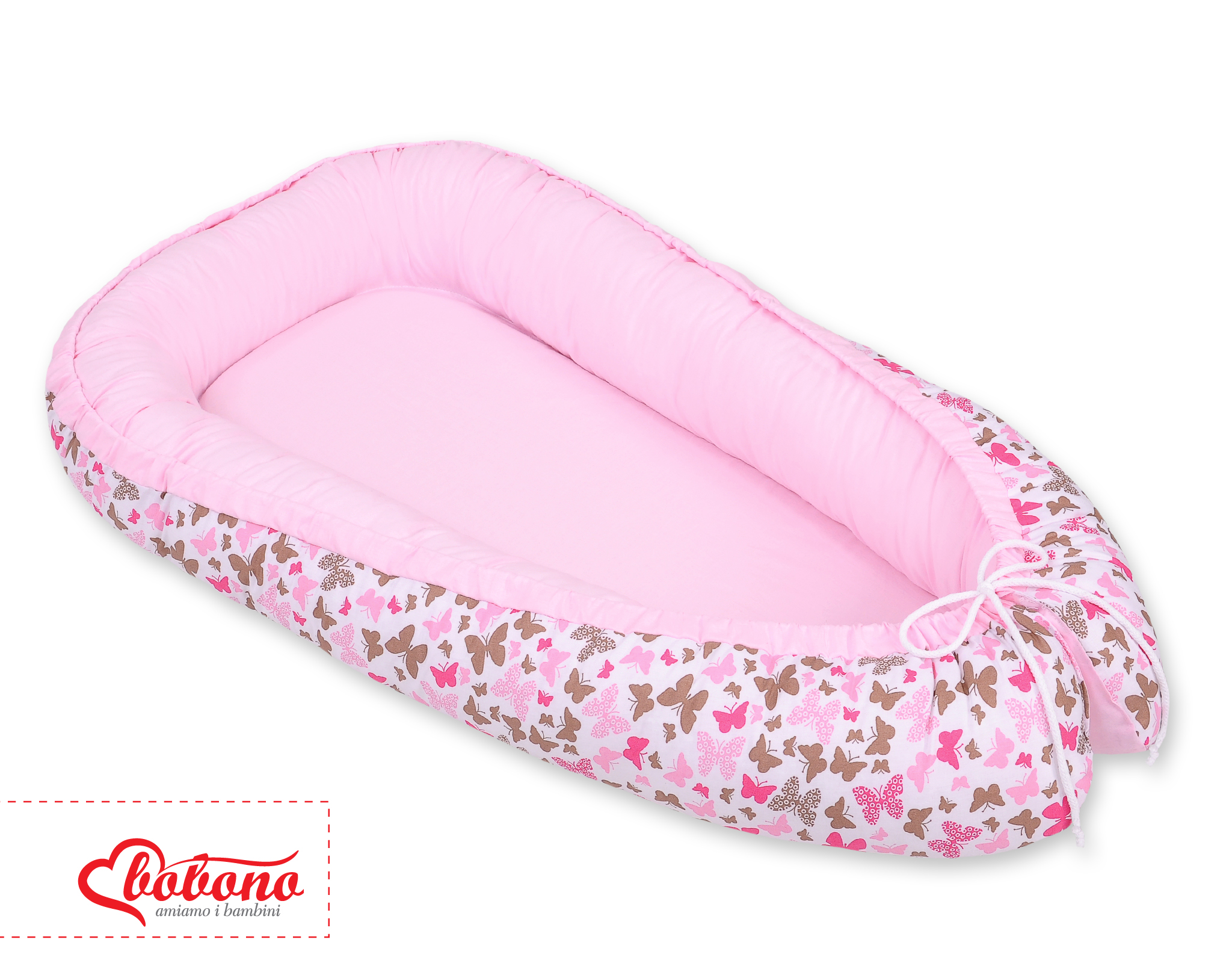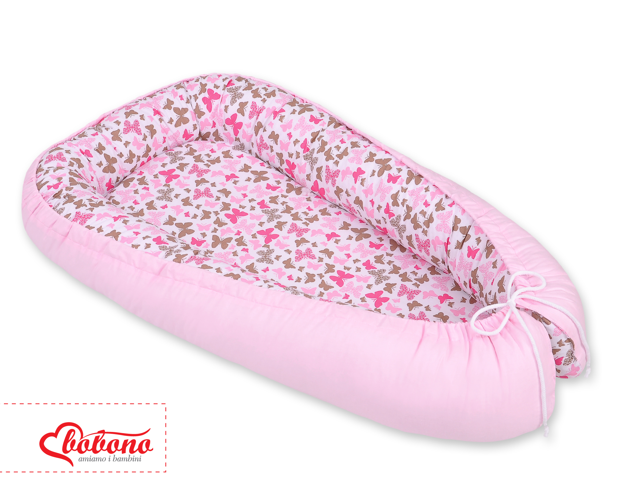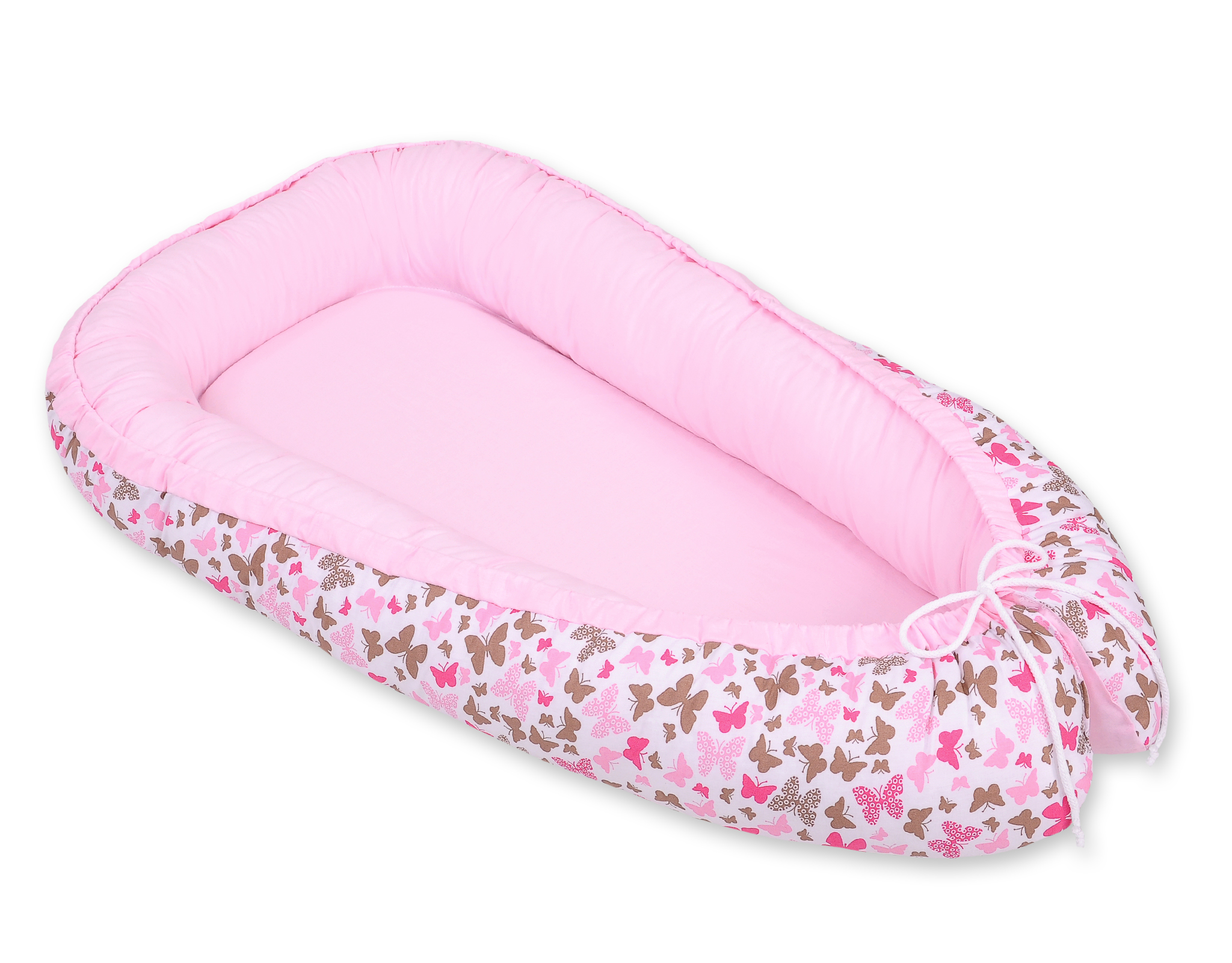 Stubenwagen » Bettwäsche für Babys » Bettwäsche für Babybett FUN & JOY » Babynestchen » Babykokon - rosa Schmetterlinge/rosa