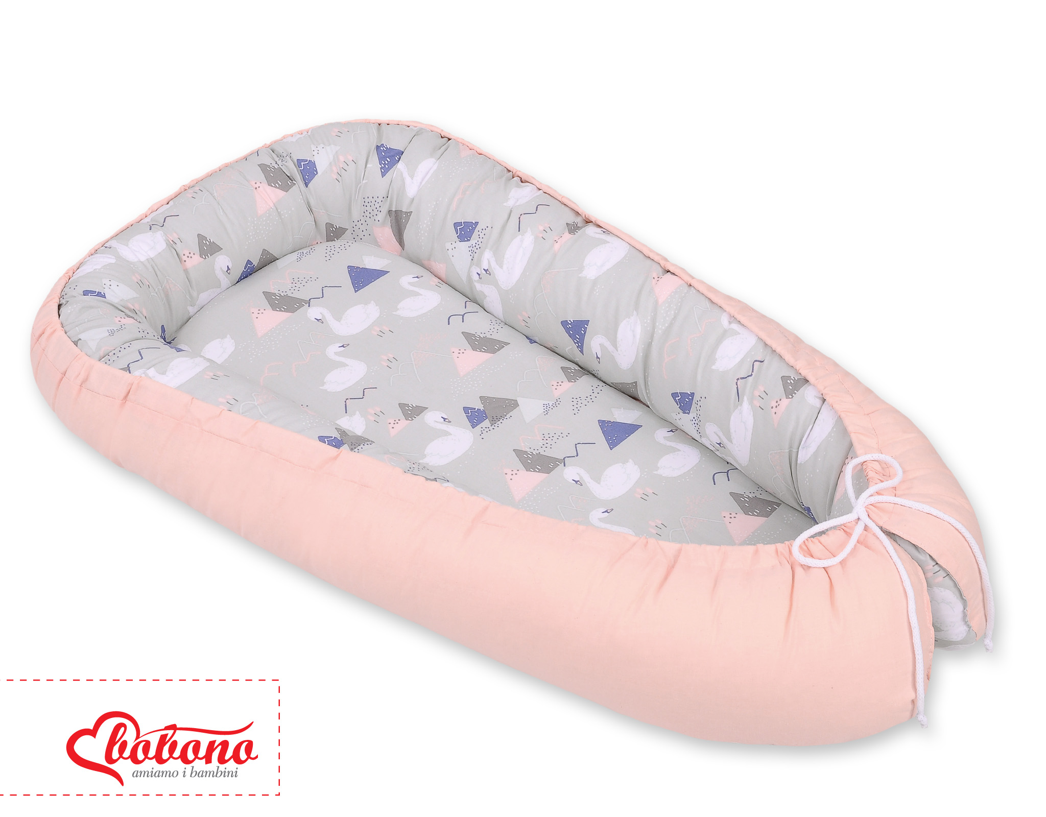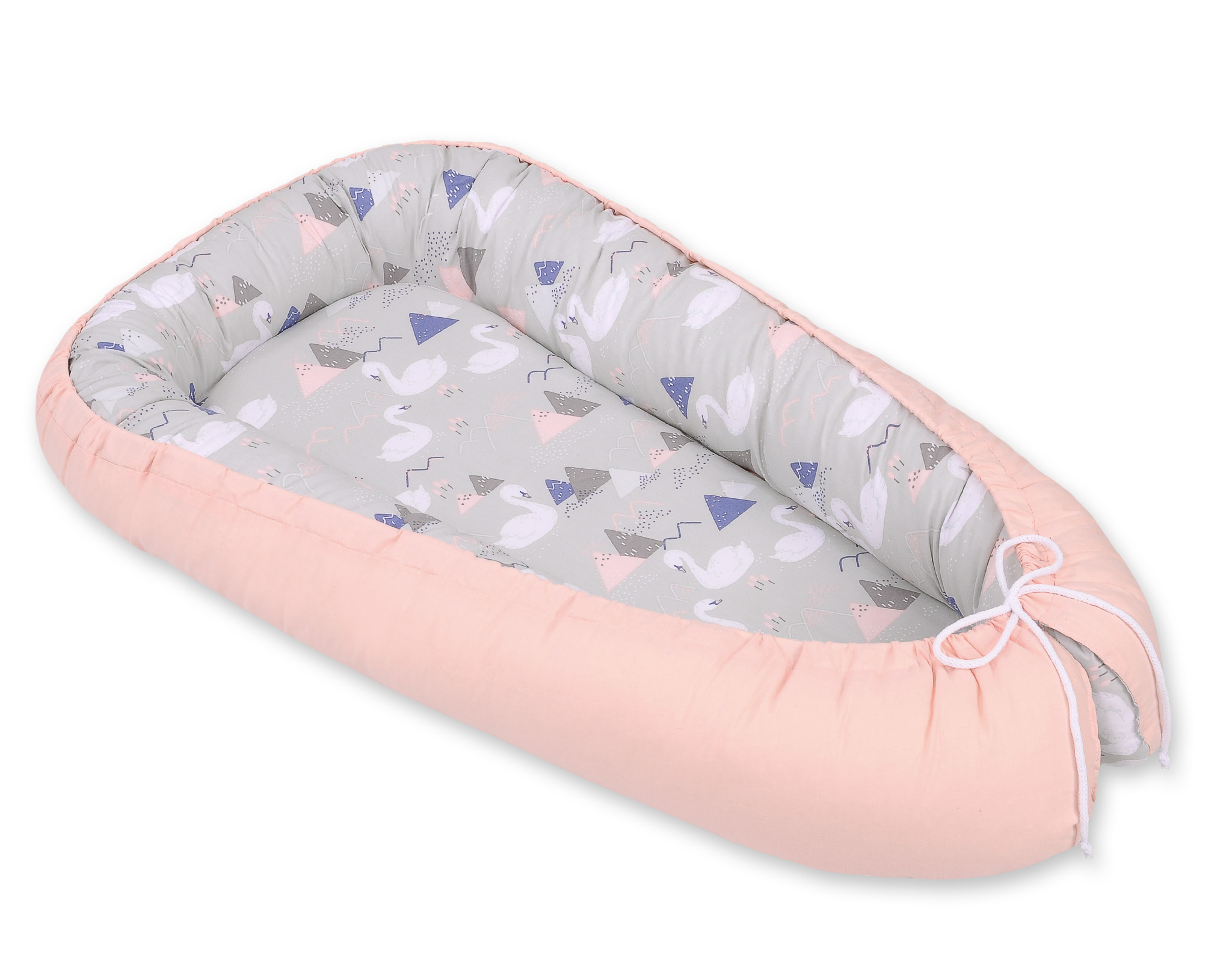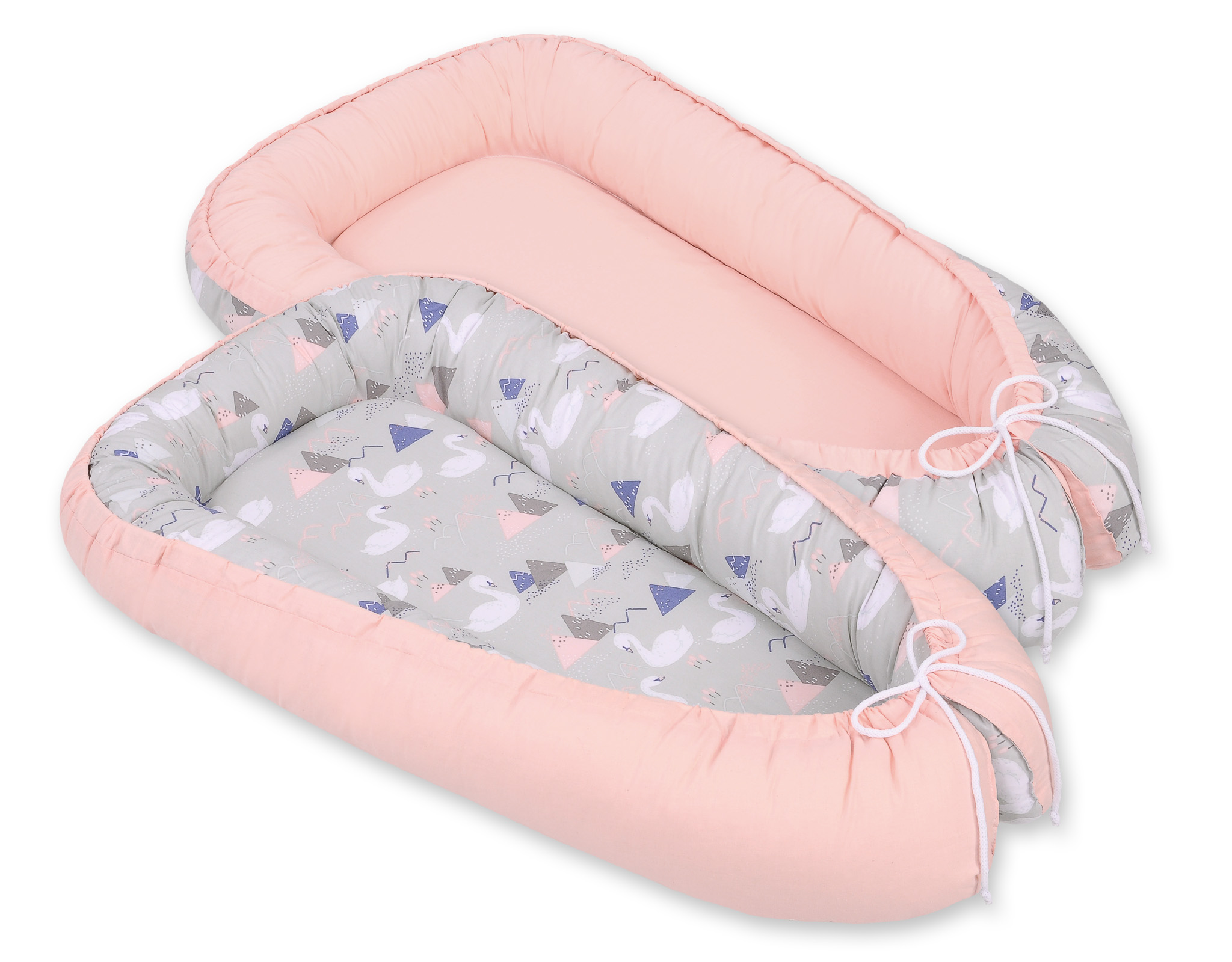 Es ist eine gute Lösung für die ersten Lebensmonate. Die Nestchen werden schon in vielen Europaländer benutzt und geschätzt. Ein solches Netschen ist vor allem ein sehr gutes Schlafplatz für ein Neugeborenes. Es ist kleiner und kuscheliger als ein Bettchen, das Kind füllt sich dadrin geborgen wie im Mutterbauch. Das Neschen hat zum Ziel den Platz zu verringern, so dass das Kind Stufenweise aus der Embrioposition in die gestreckte Position übergehen kann. Wenn das Neugeborene gleich in einem Bettchen schläft, kann es sich wegen zu viel Platz unwohl fühlen. Durch die hohen, weichen Ränder bietet das Nestchen genügend Schutz, dämpft die Geräusche und bietet somit dem Baby einen gesunden Schlaf.