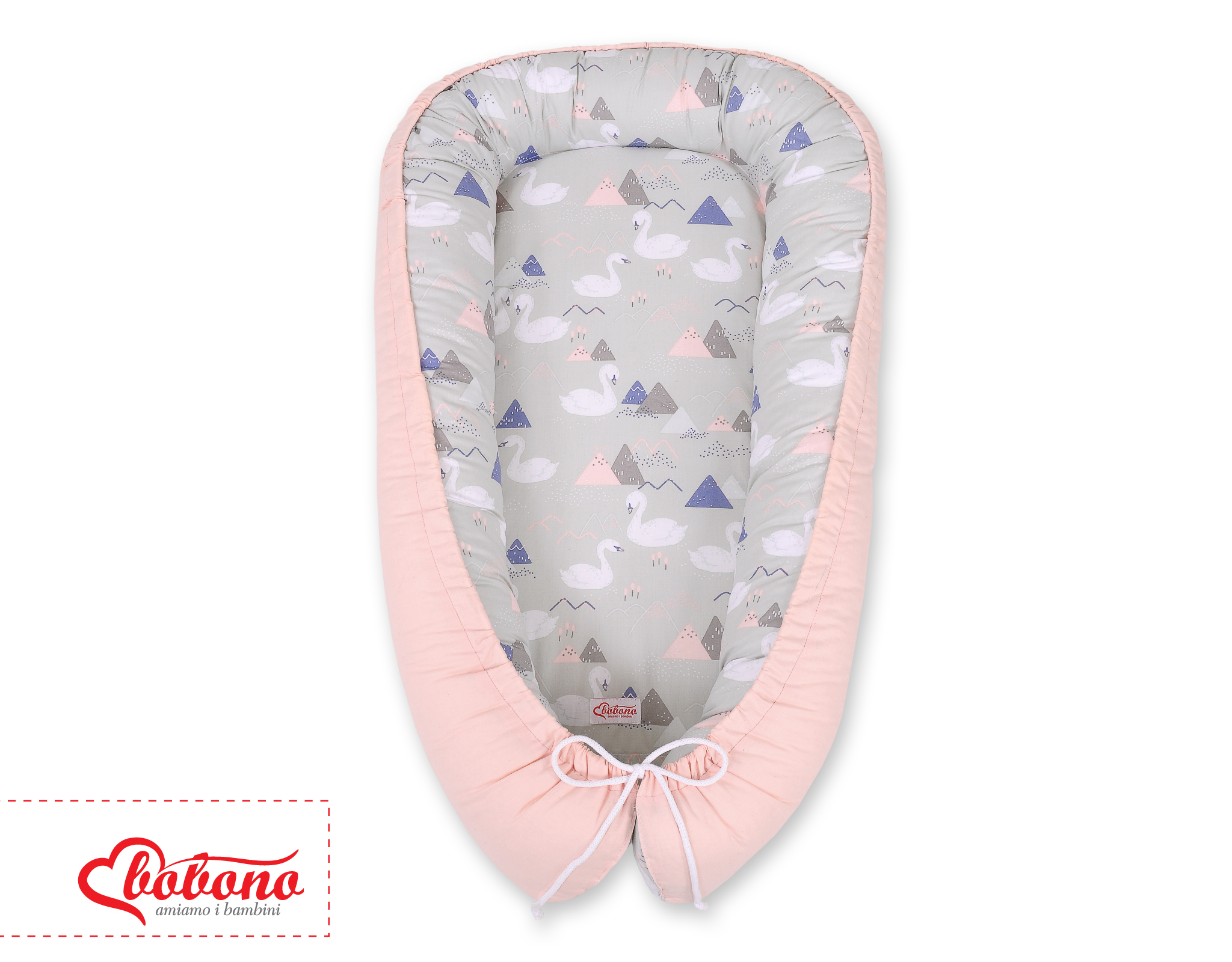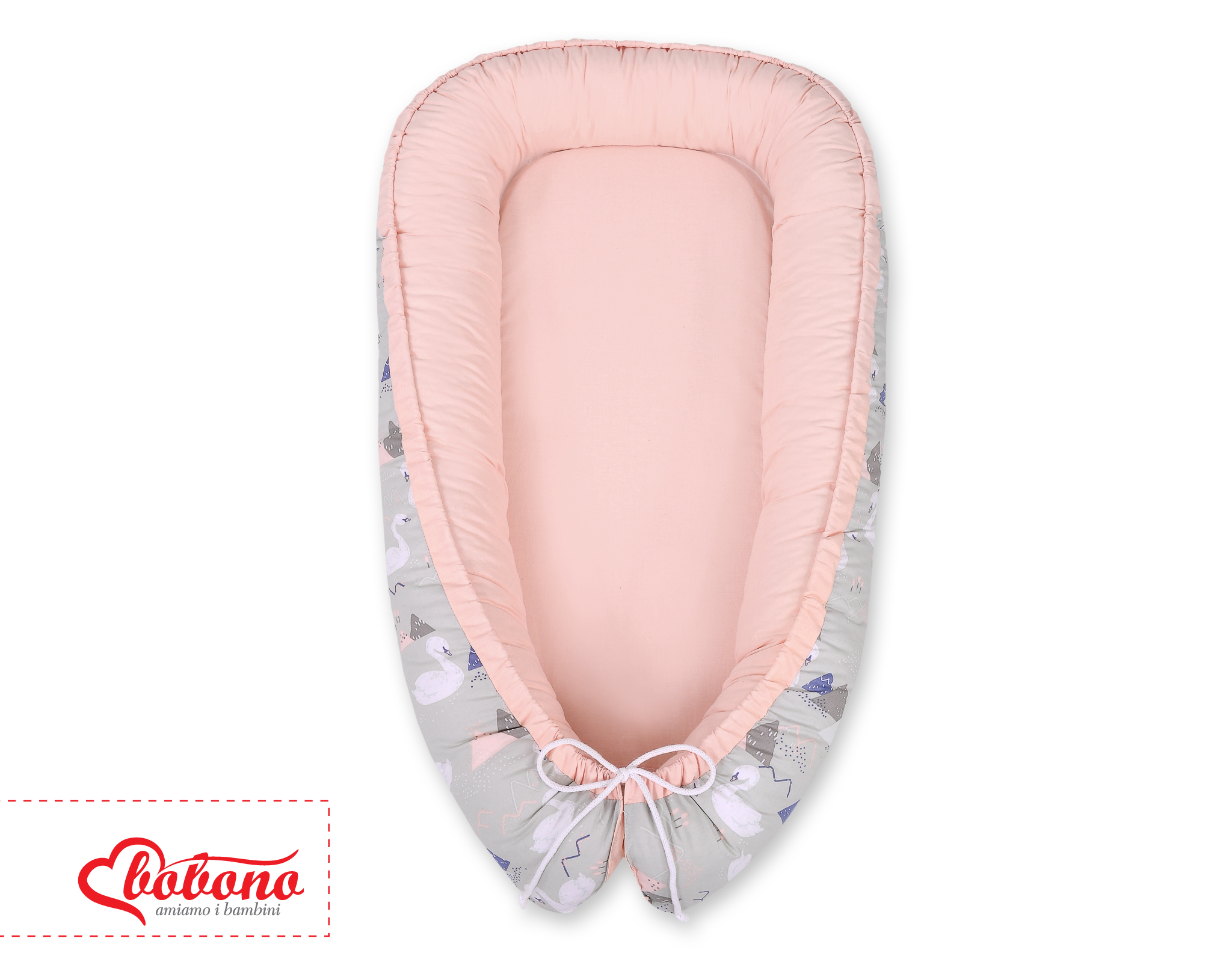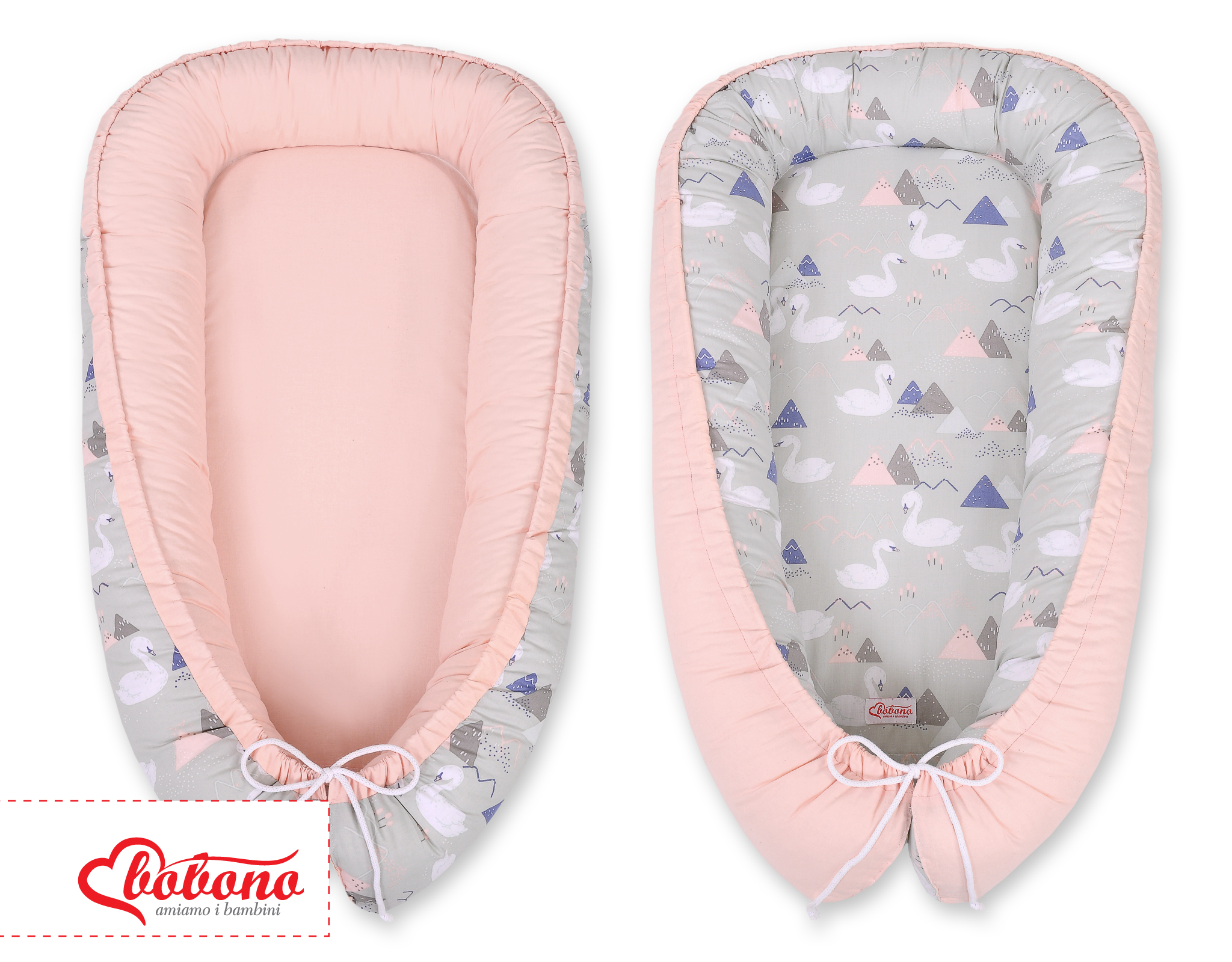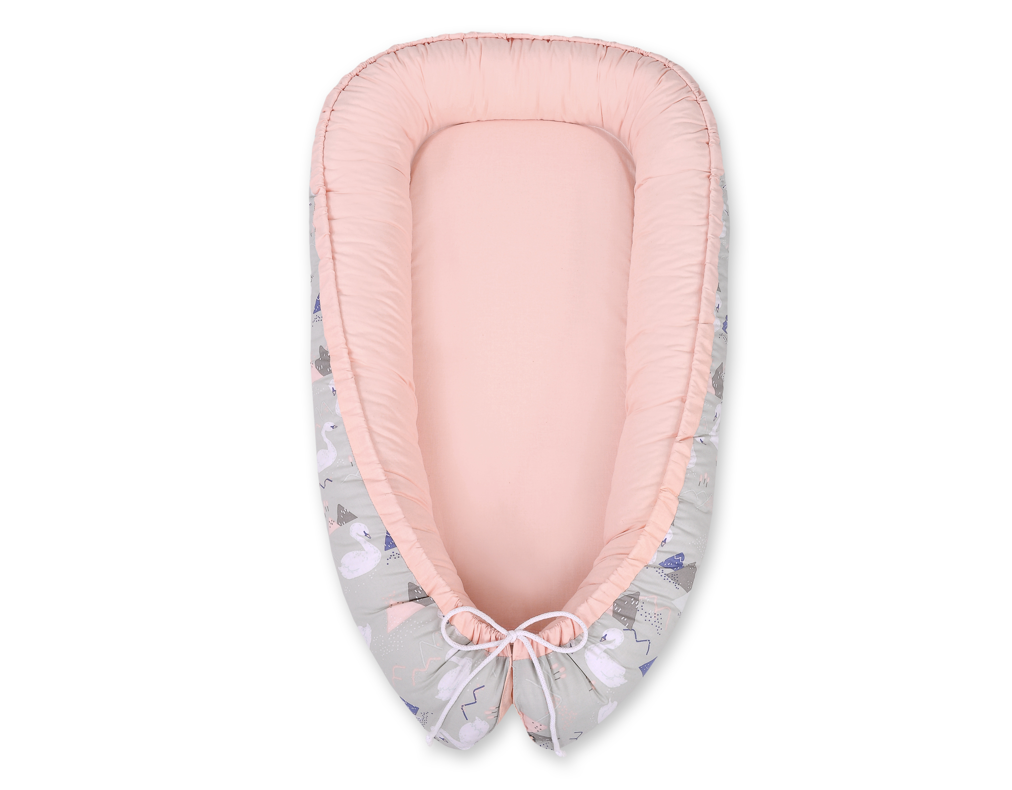 Es kann in das Kinderbett, Stubenwagen oder Wiege reingelegt werden. Somit hat das Baby seinen eigenen Raum, wo es sich sicher und geborgen füllt. Die hohen Ränder erleichtern den Eltern das Baby in der seitlichen Possition zu legen.