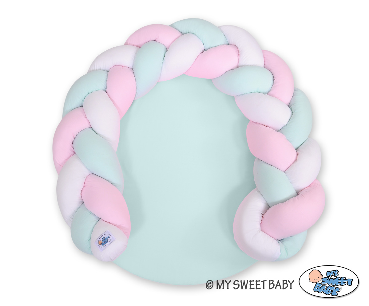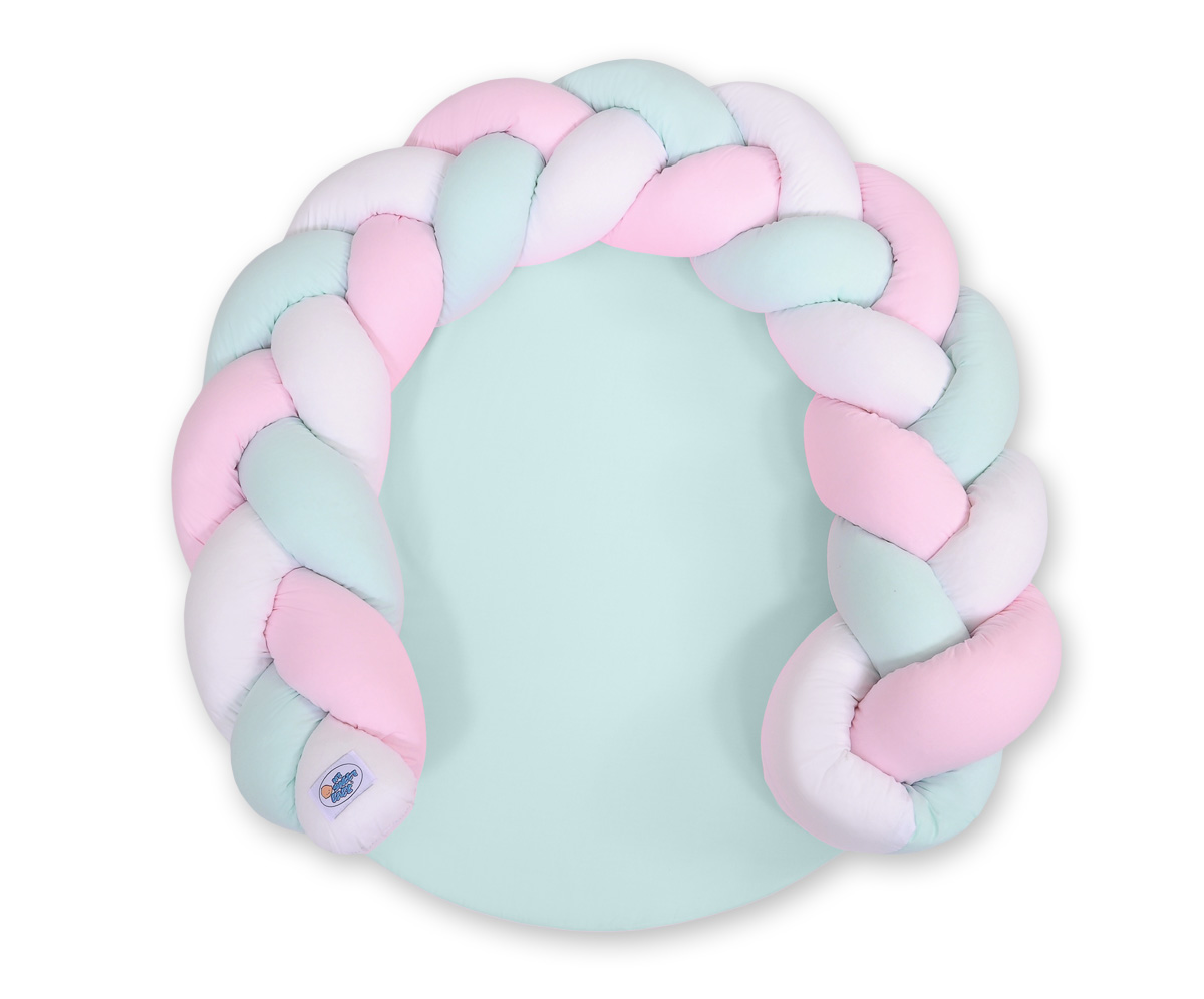 Stubenwagen » Geflochtene Kollektion » Babynestchen Spielmatte 2 in 1 » Babykokon / Spielmatte / Bettumrandung 2 in1 - weiß-rosa-minze