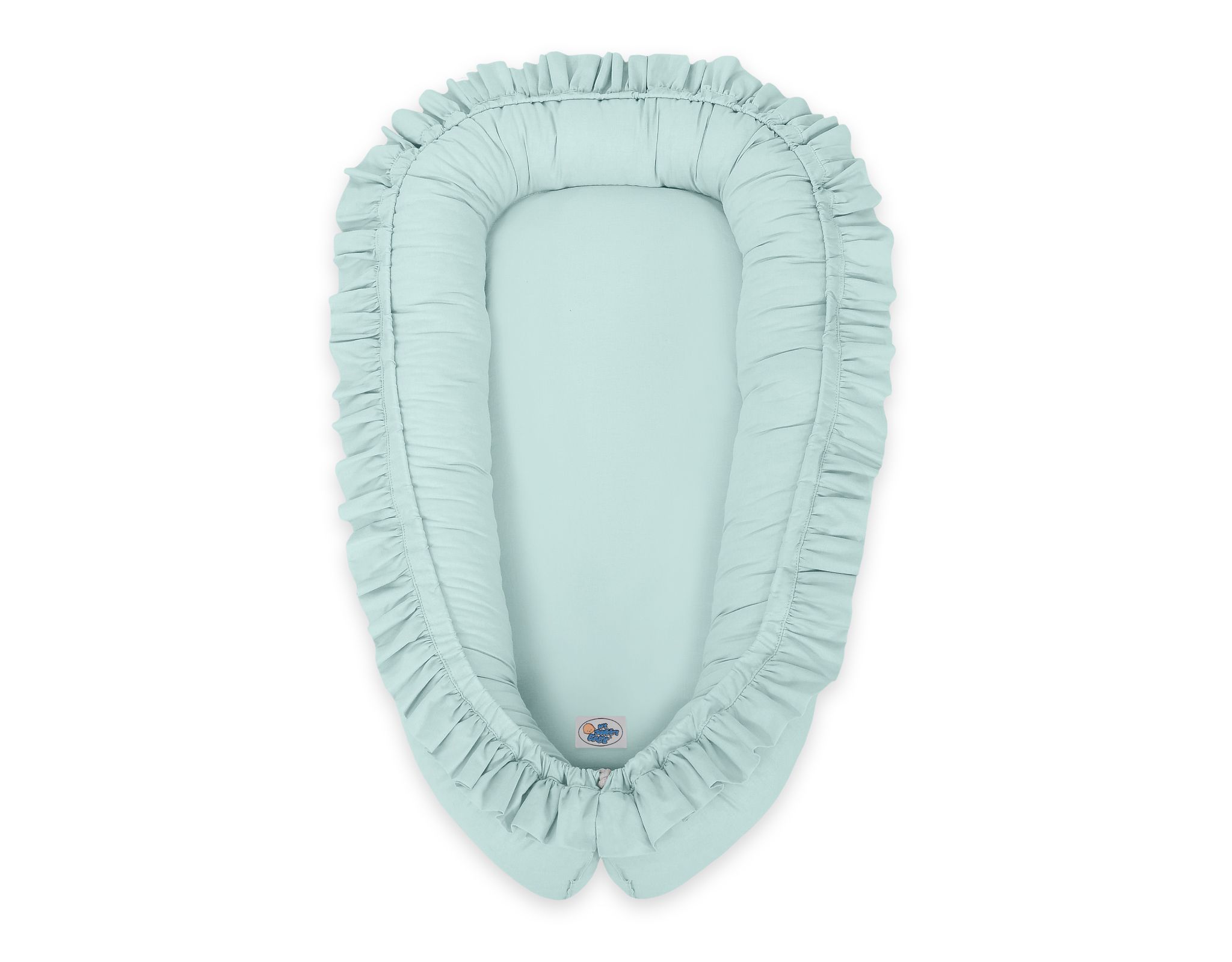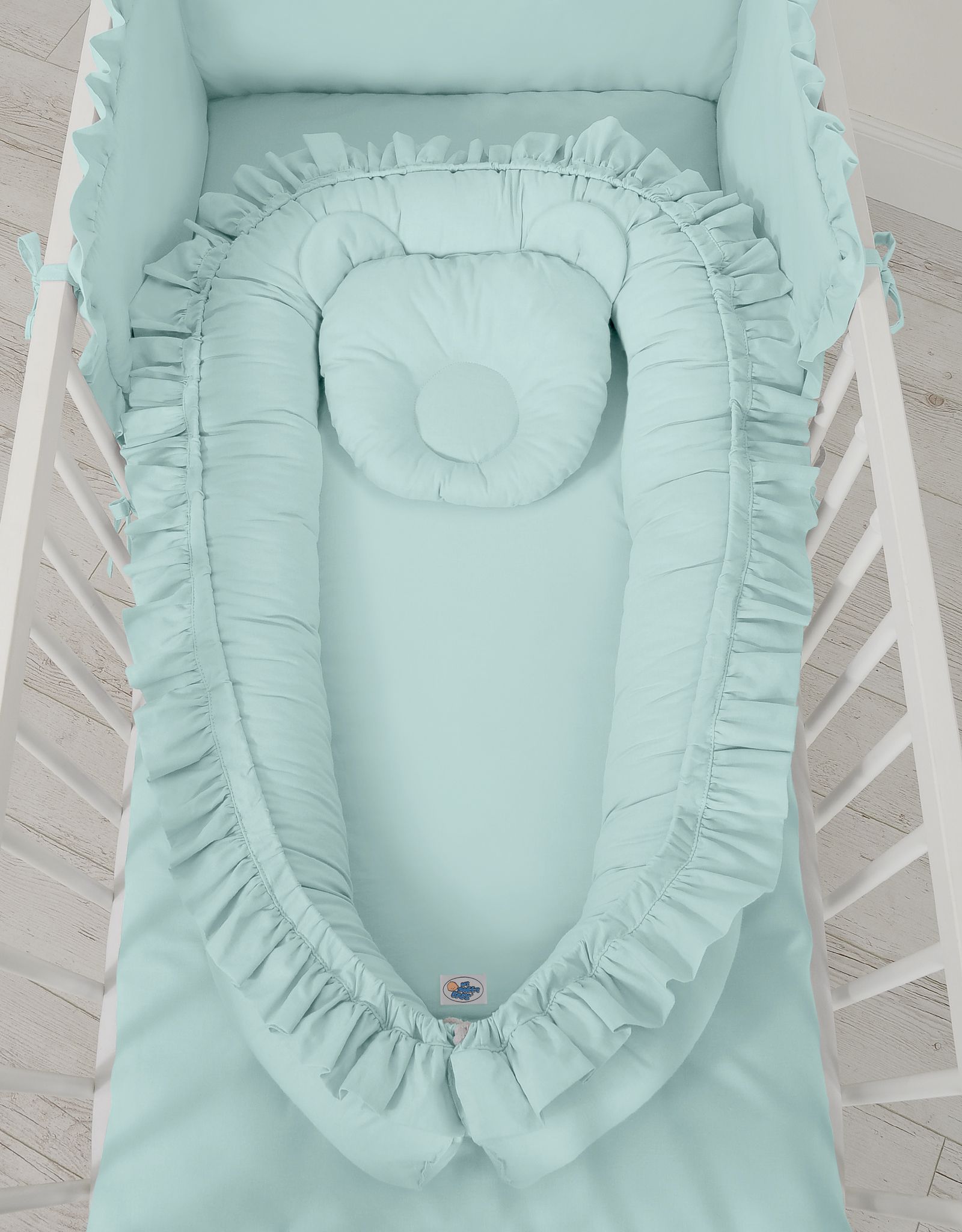 Es kann in das Kinderbett, Stubenwagen oder Wiege reingelegt werden. Somit hat das Baby seinen eigenen Raum, wo es sich sicher und geborgen füllt. Die hohen Ränder erleichtern den Eltern das Baby in der seitlichen Possition zu legen.